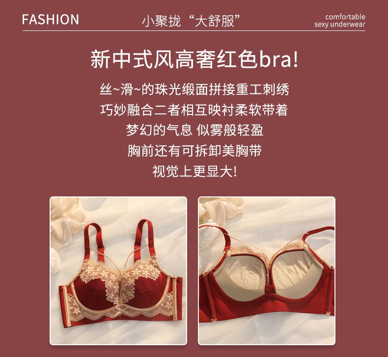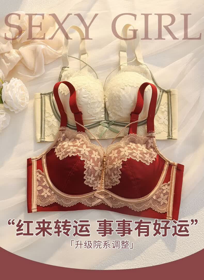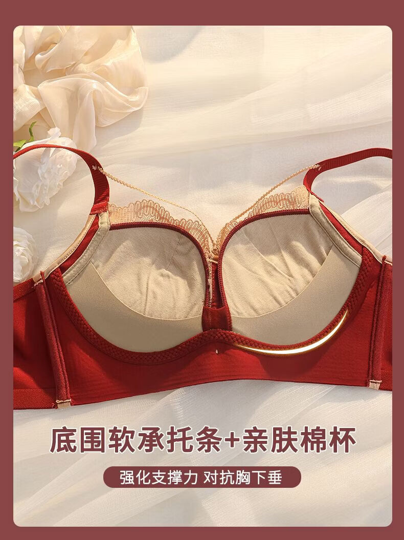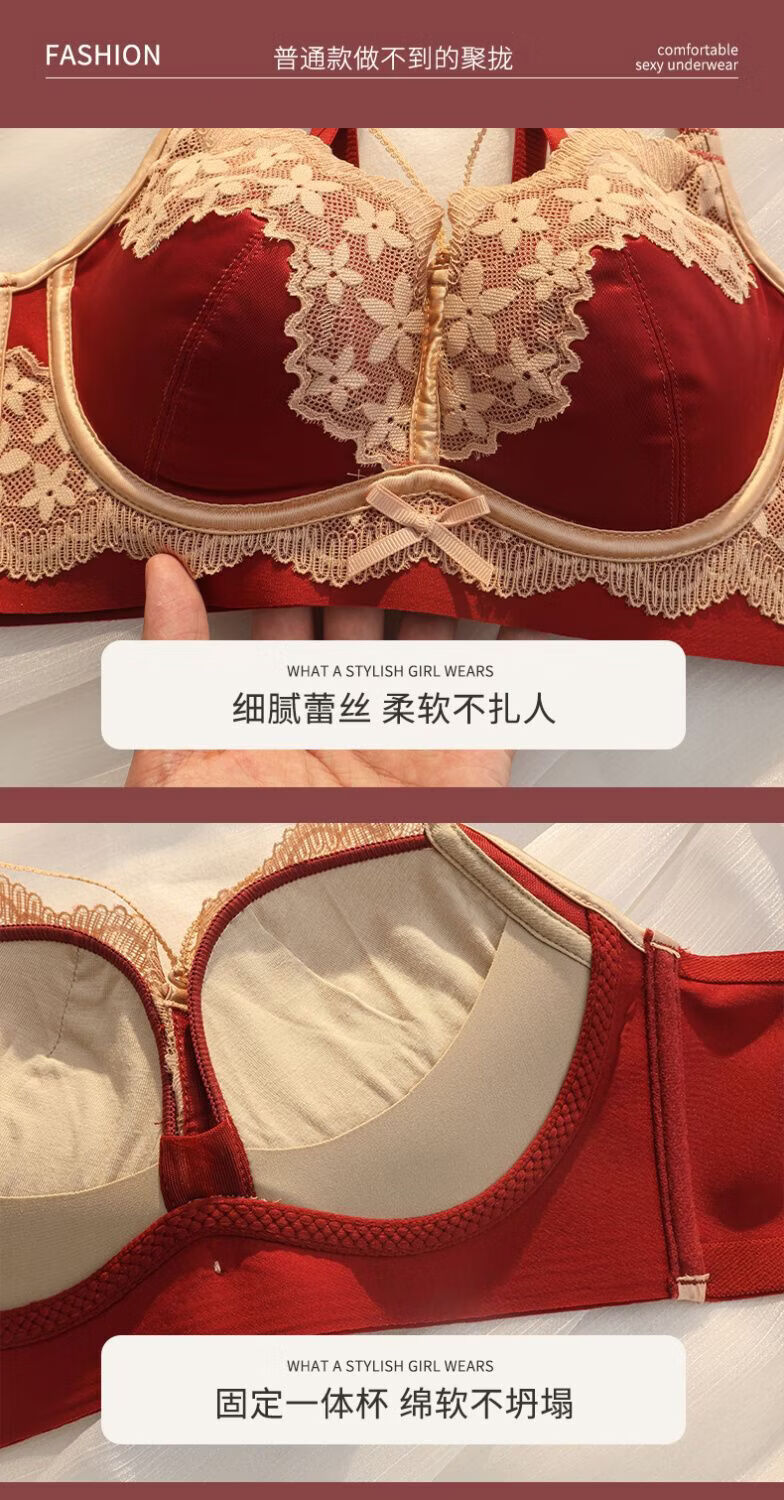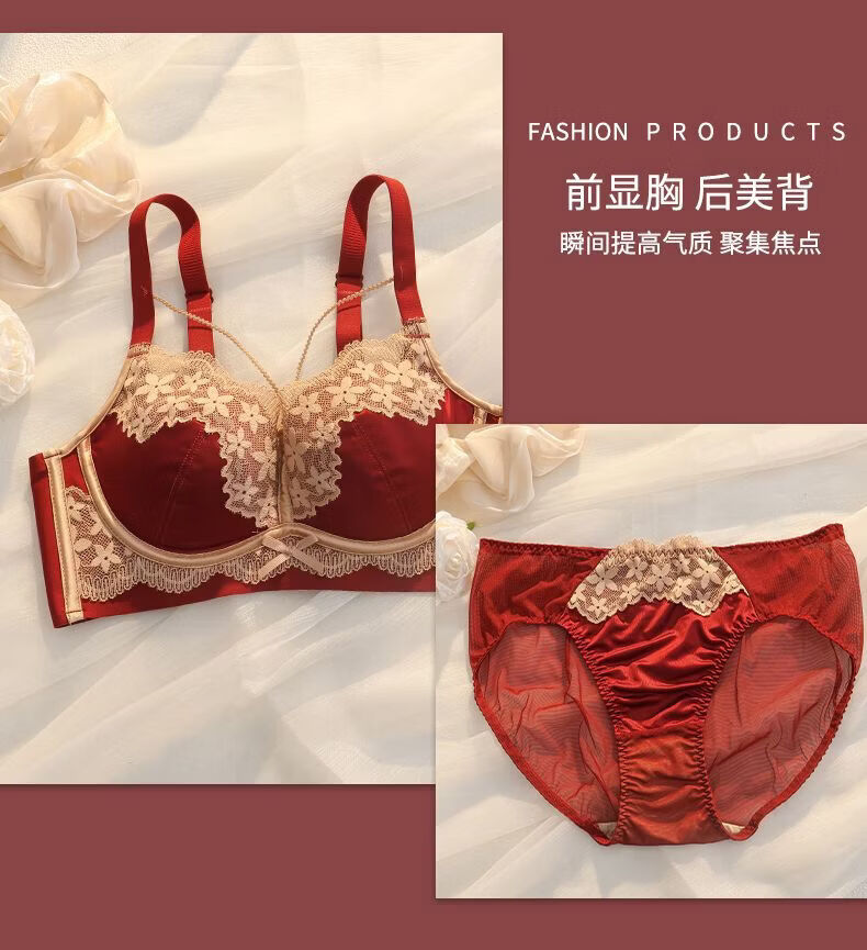 LangSha (LangSha) Sternzeichen-Jahre-Rot-Unterwäsche für Frauen mit kleinen Brüsten, Push-up, ohne Ränder, verstellbares Hochzeit-Braut-Spitzen-Sexy-BH-Set, Ancora-Rot-Set 80A 36B