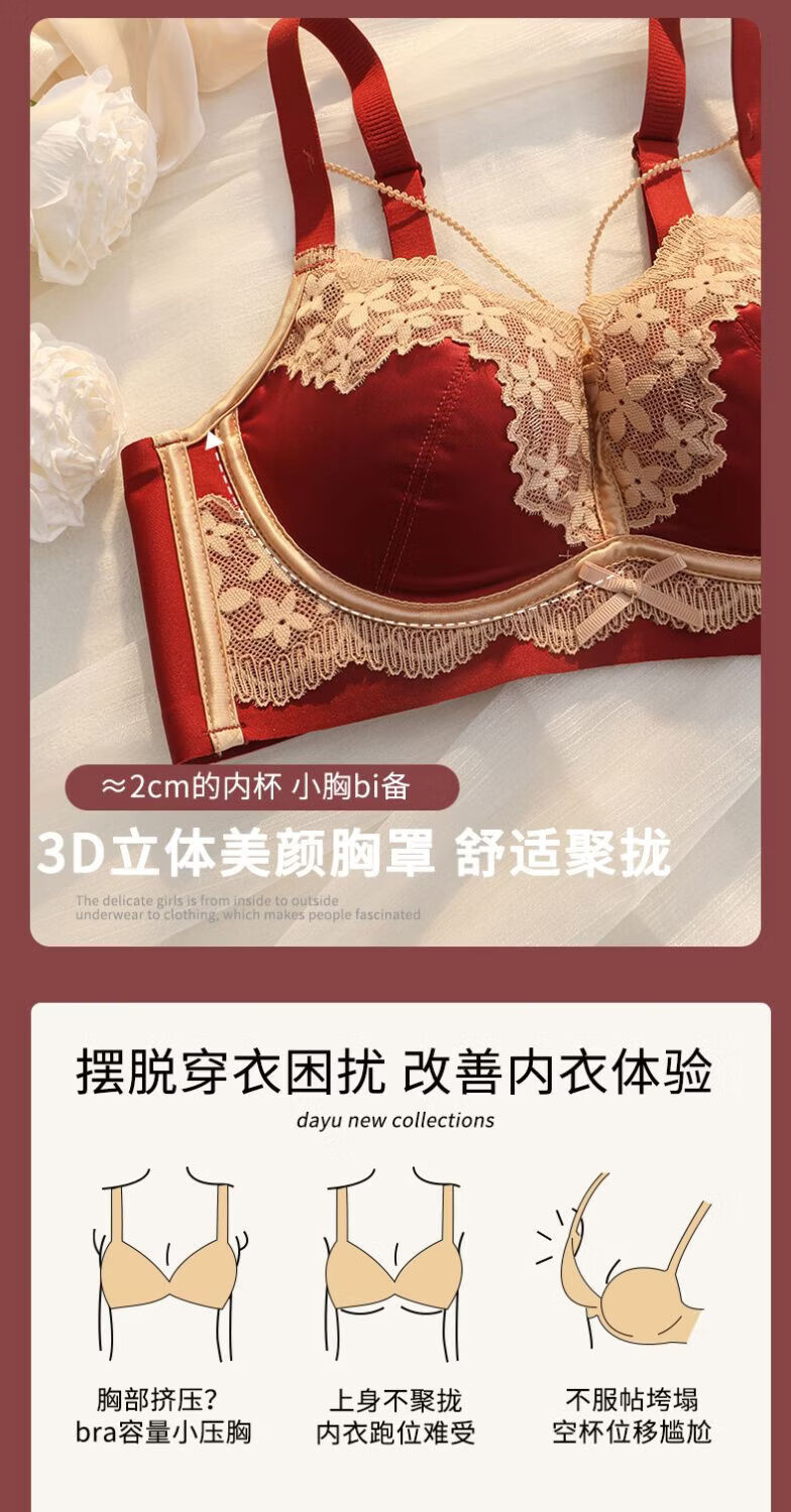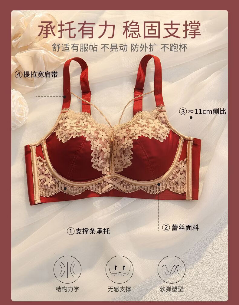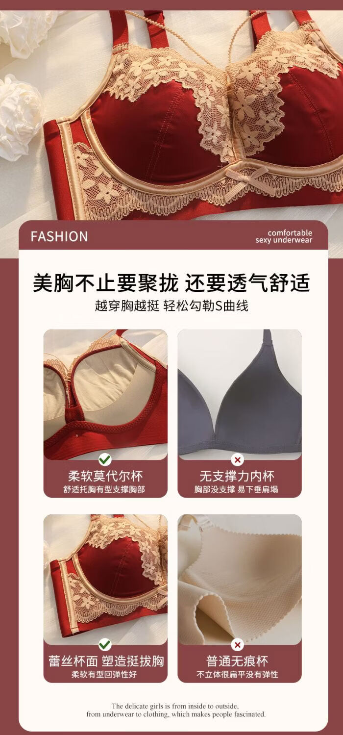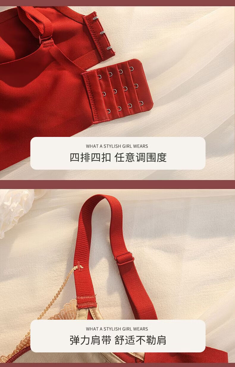 LangSha (LangSha) Sternzeichen-Jahre-Rot-Unterwäsche für Frauen mit kleinen Brüsten, Push-up, ohne Ränder, verstellbares Hochzeit-Braut-Spitzen-Sexy-BH-Set, Ancora-Rot-Set 80A 36B