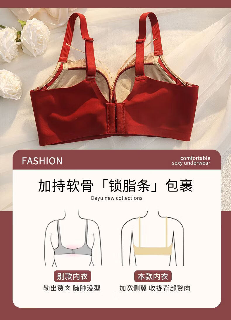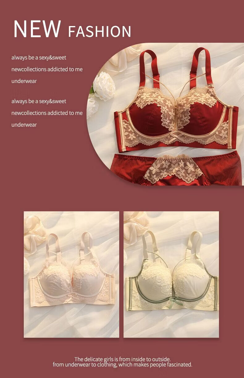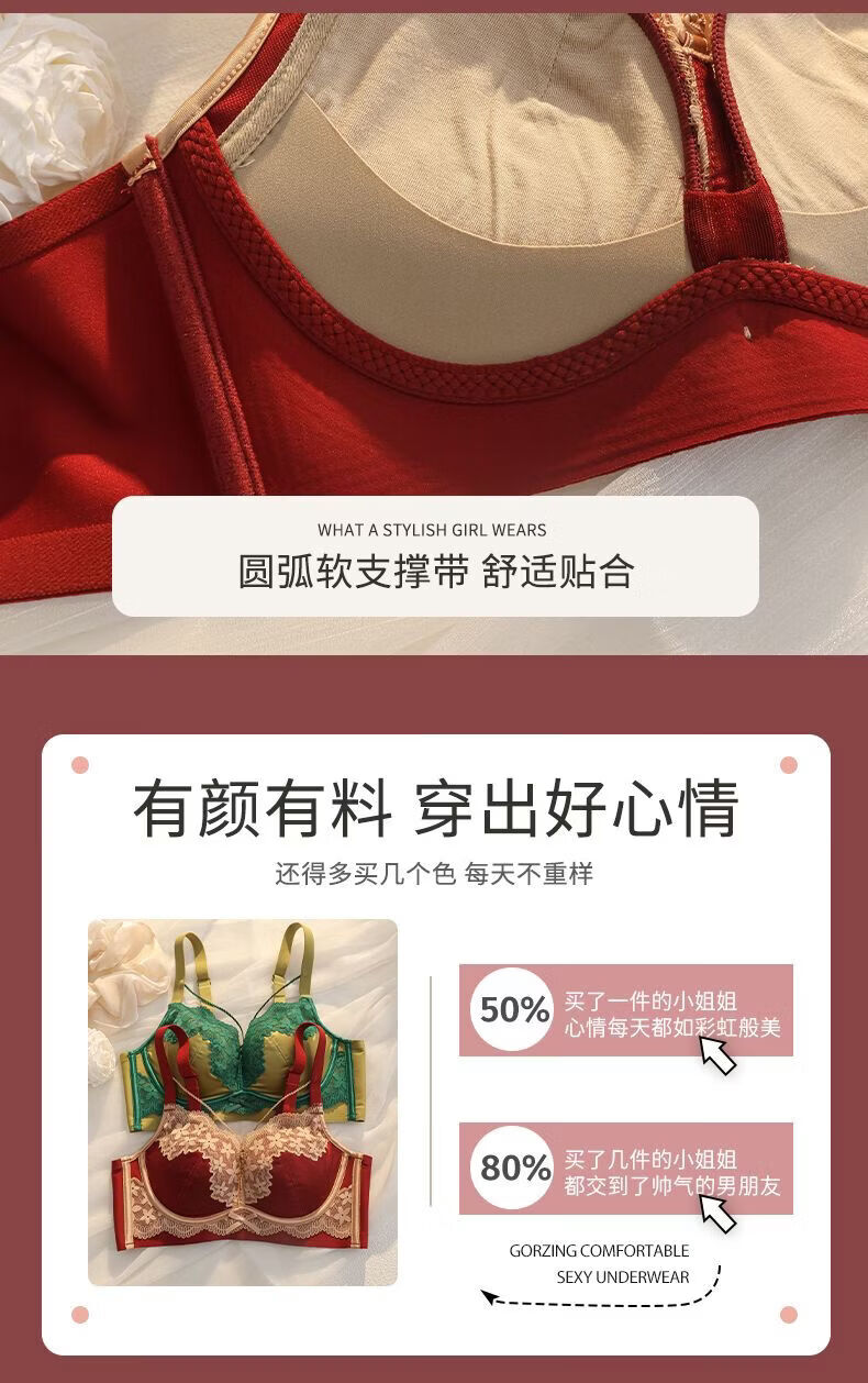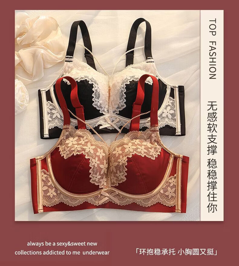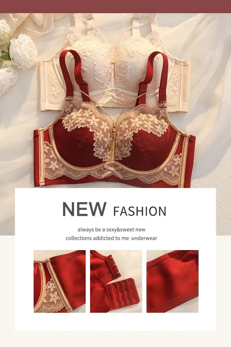 LangSha (LangSha) Sternzeichen-Jahre-Rot-Unterwäsche für Frauen mit kleinen Brüsten, Push-up, ohne Ränder, verstellbares Hochzeit-Braut-Spitzen-Sexy-BH-Set, Ancora-Rot-Set 80A 36B