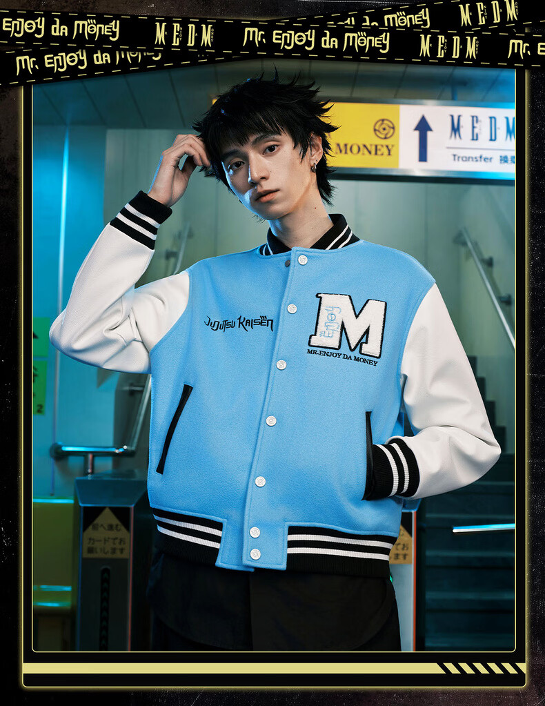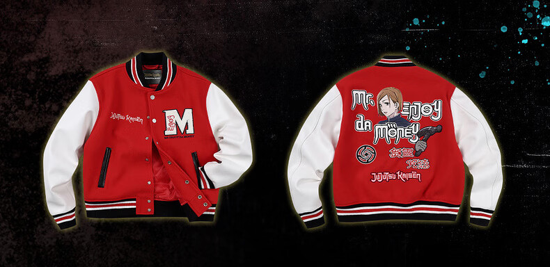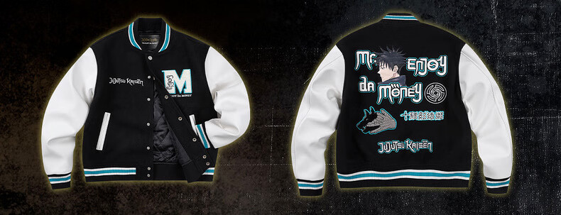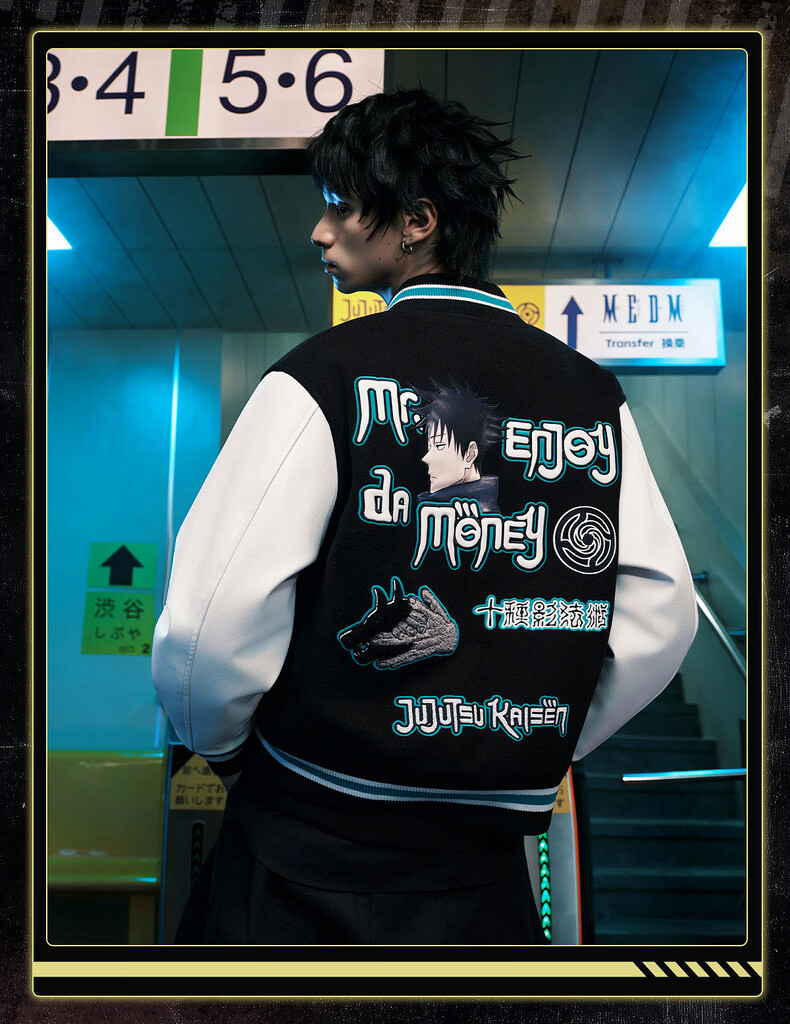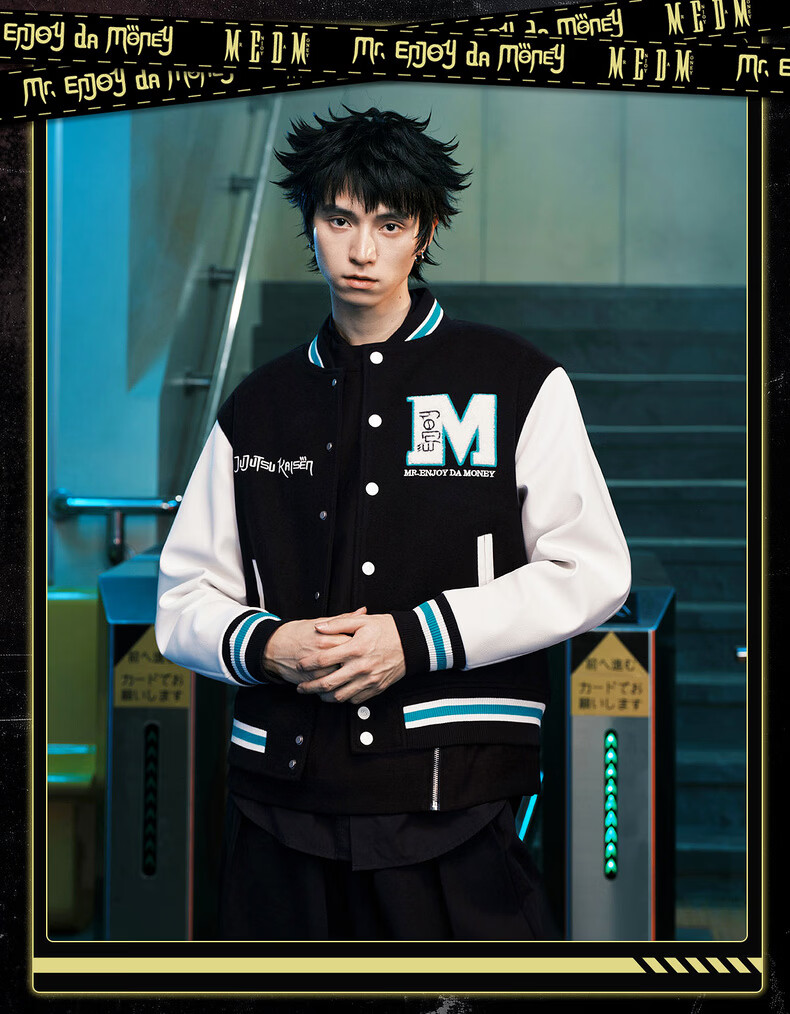 MEDM Spell Return Collaboration - Animation Character Printed Casual Baseball Wear Multicolor Men's and Women's Baseball Collar Jacket Black XL