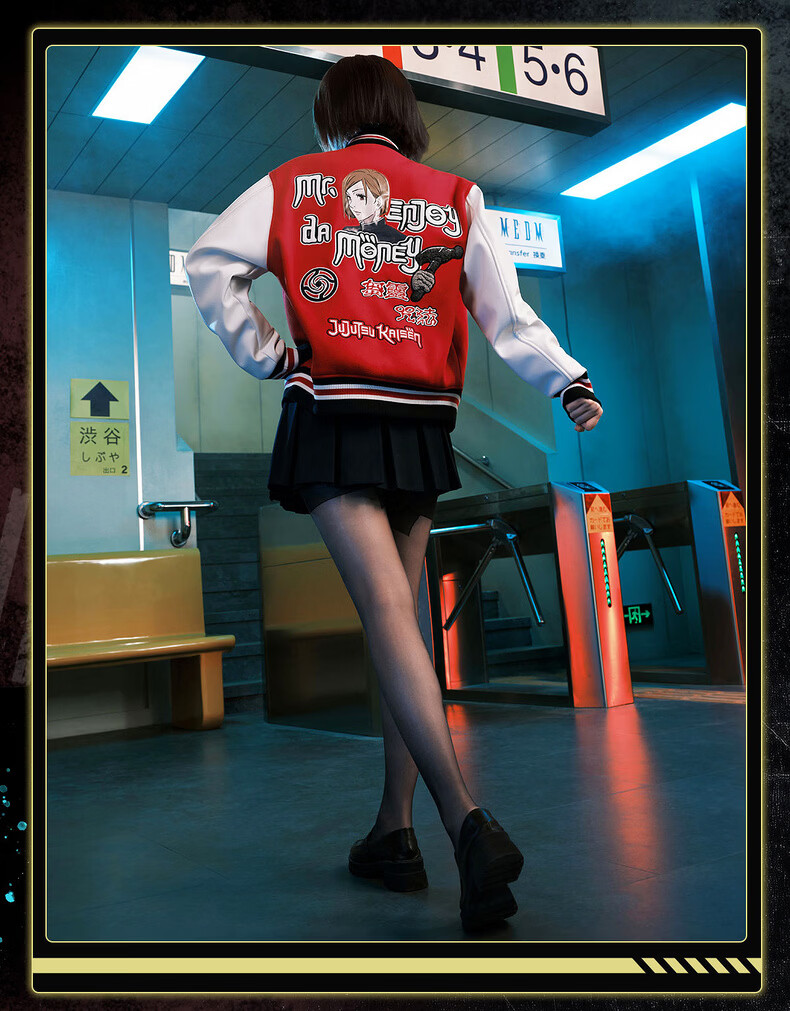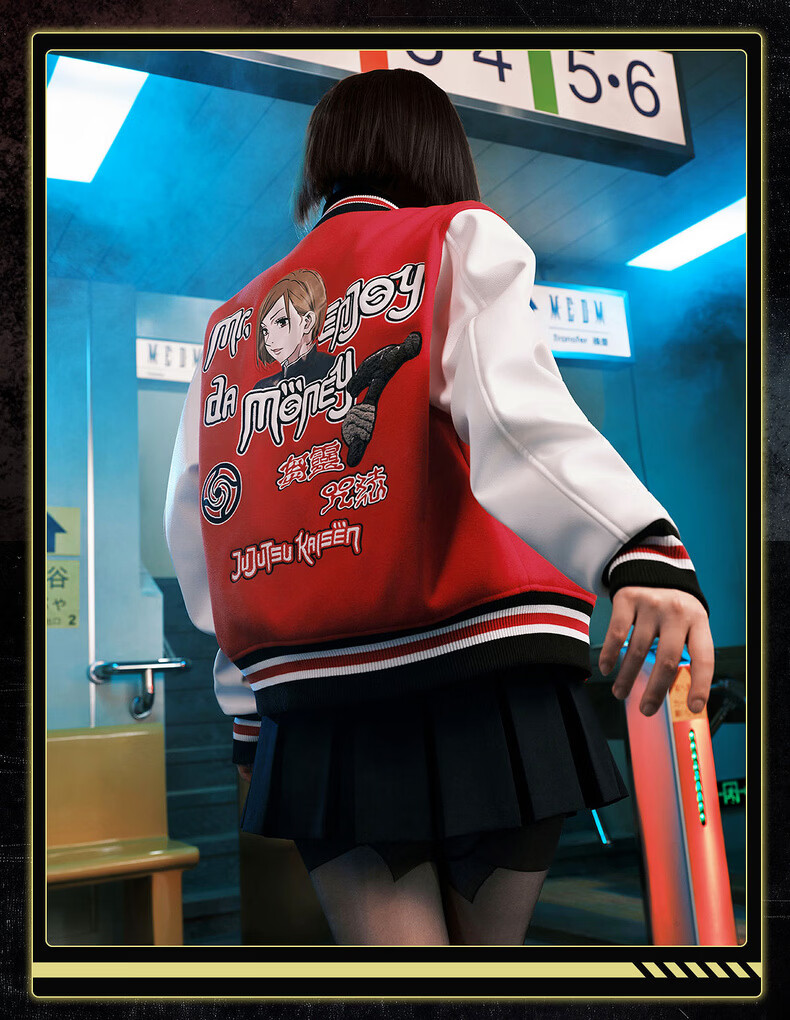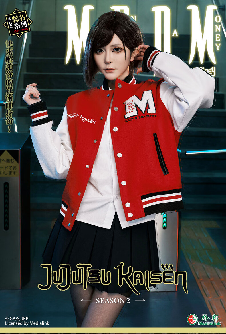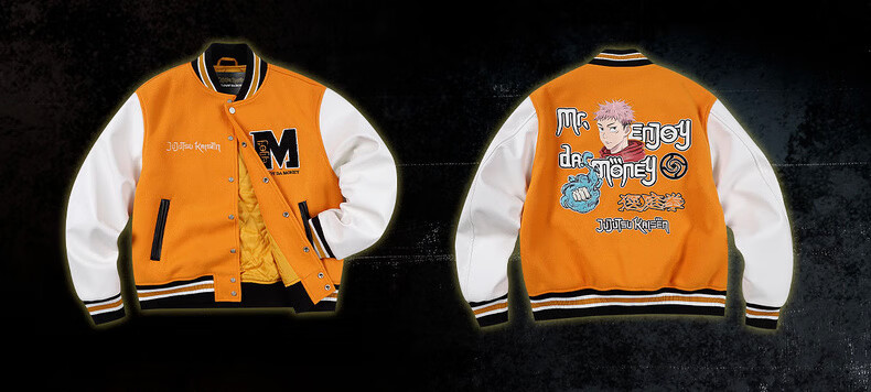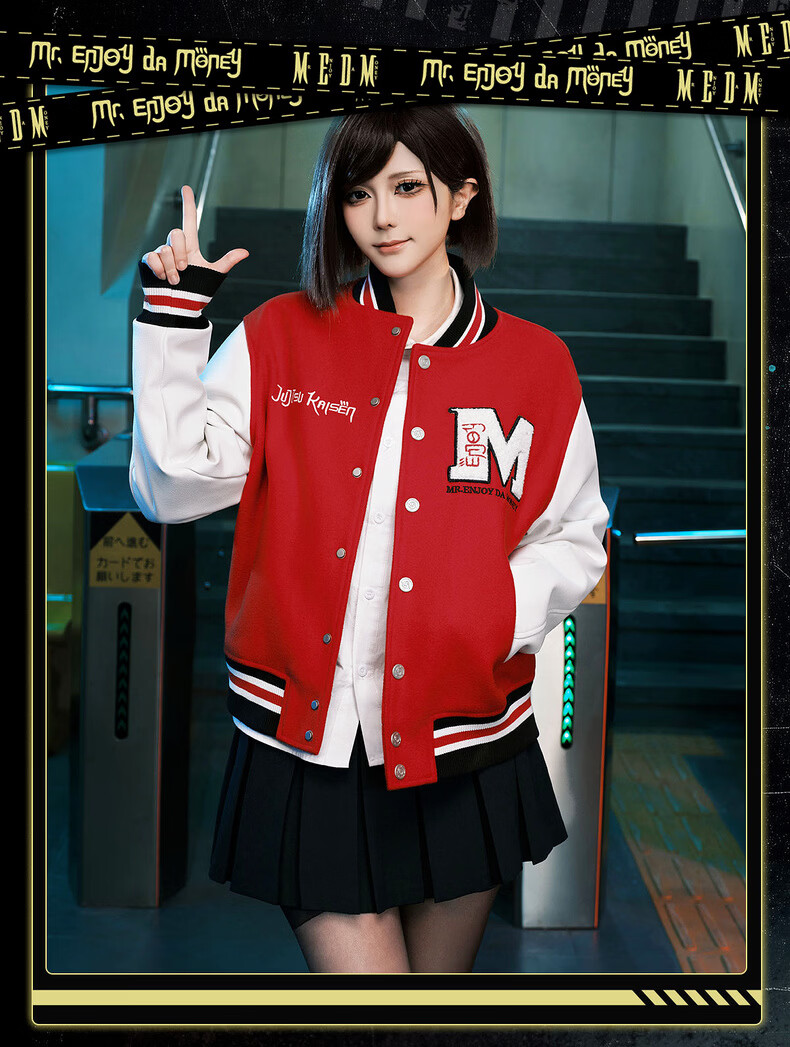 MEDM Spell Return Collaboration - Animation Character Printed Casual Baseball Wear Multicolor Men's and Women's Baseball Collar Jacket Black XL