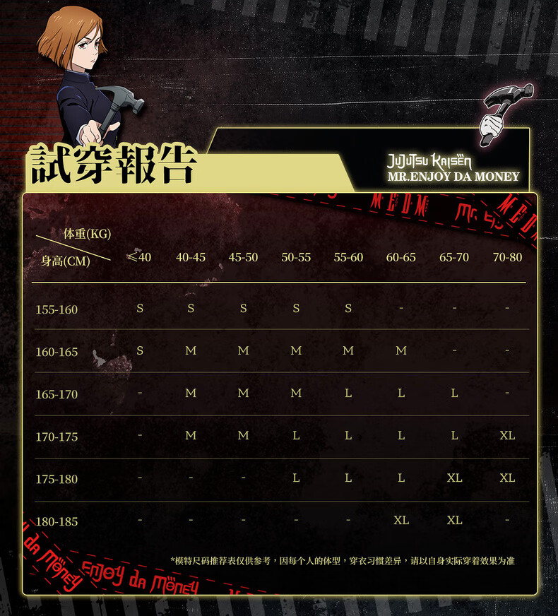 China (cm) 160-165/84-86 165-170 / 88-90 167-172 / 92-96 168-173 / 98-102 170-176 / 106-110