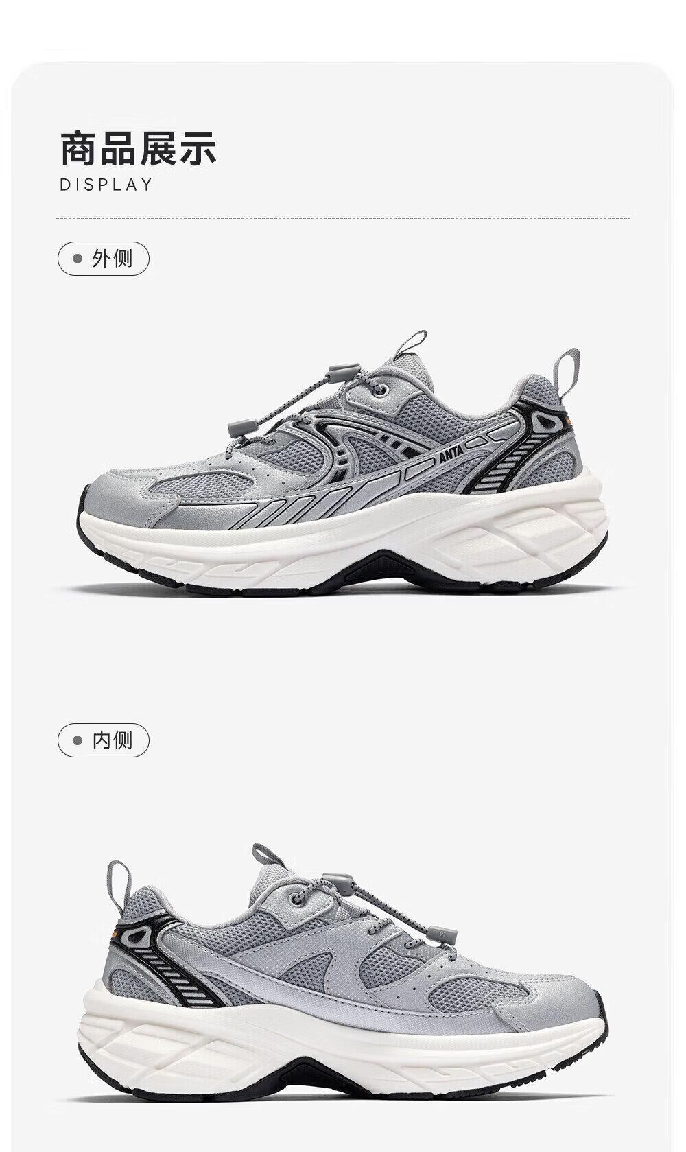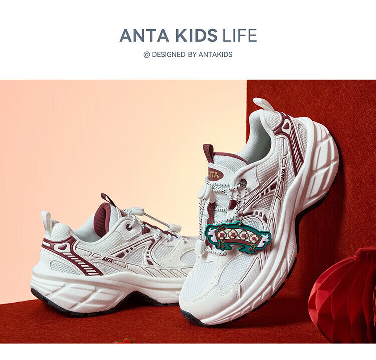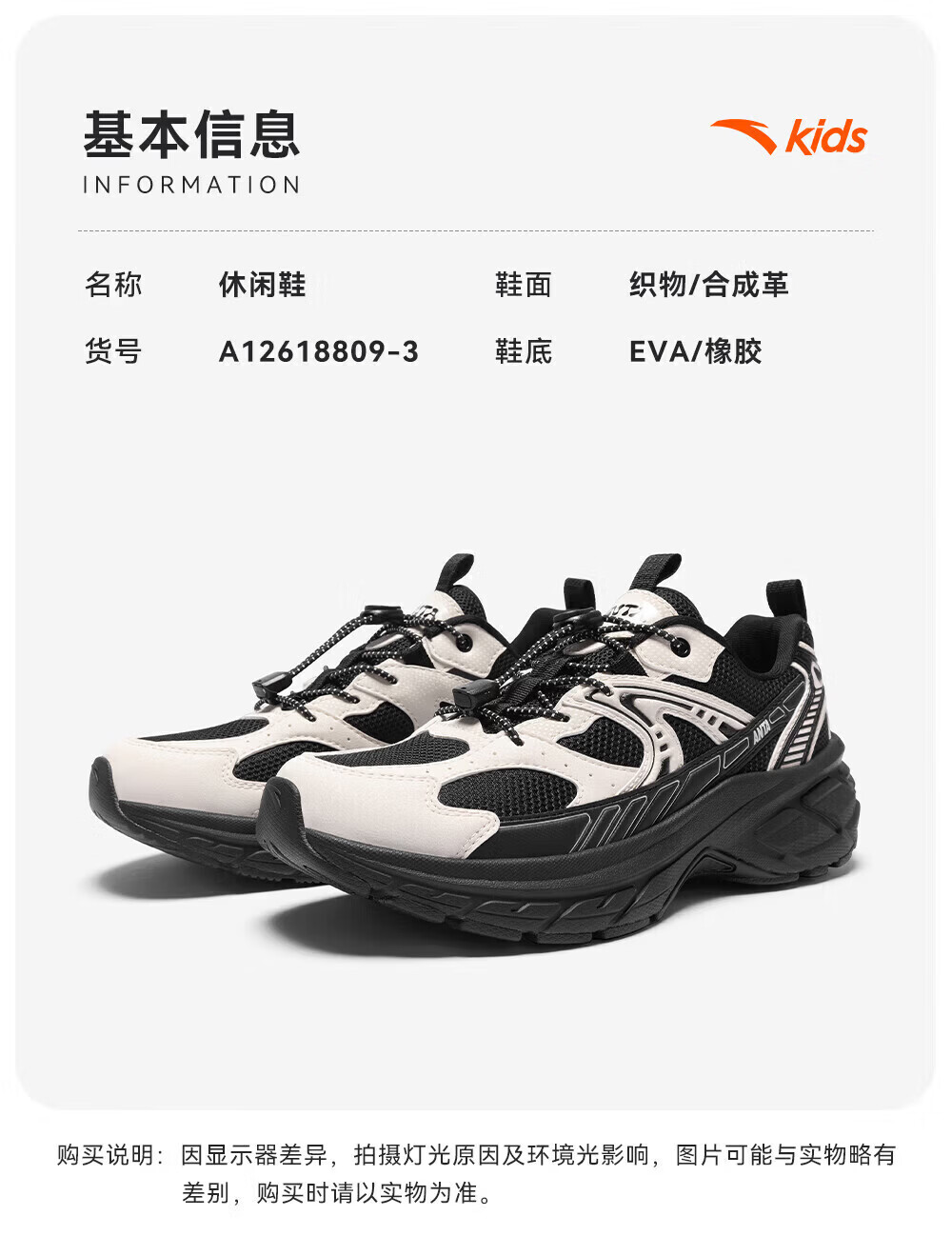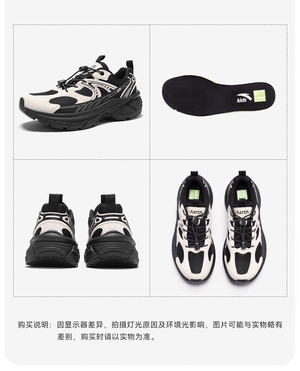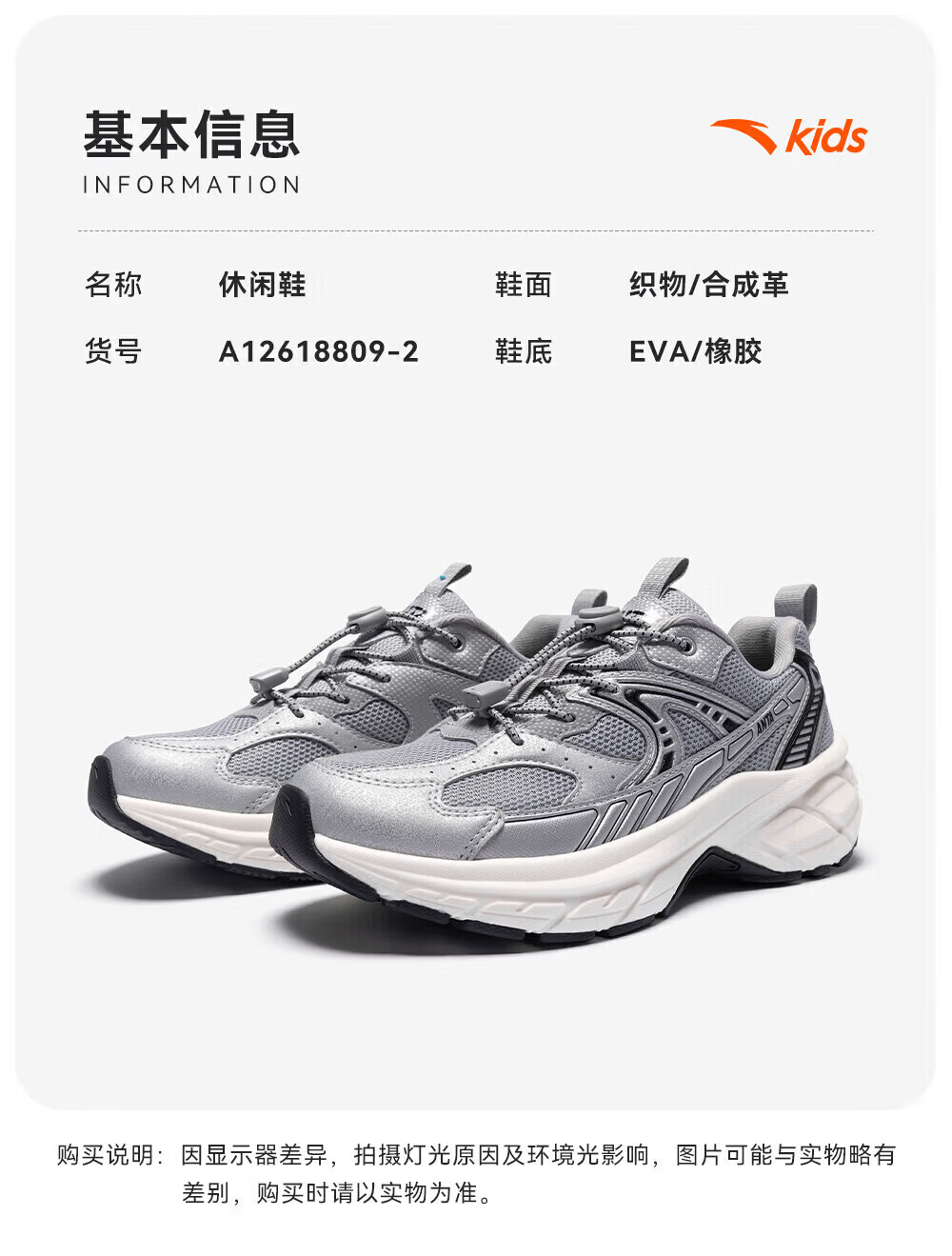ANTA (ANTA) Good Things Happen Children's Sports Shoes for Boys and Girls 26 Spring New Thick-Soled Dad Shoes Casual Shoes Mysterious Gray/Silver-2 35