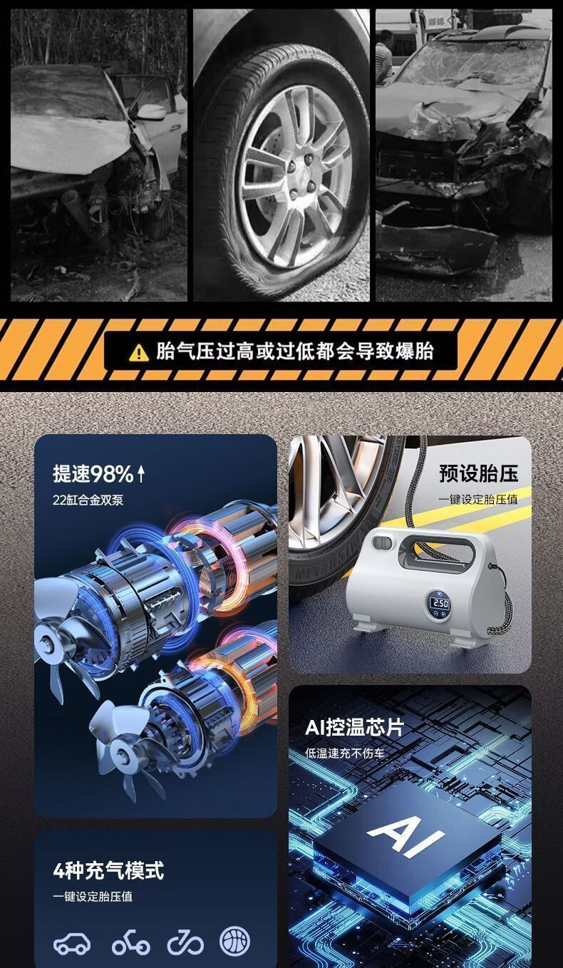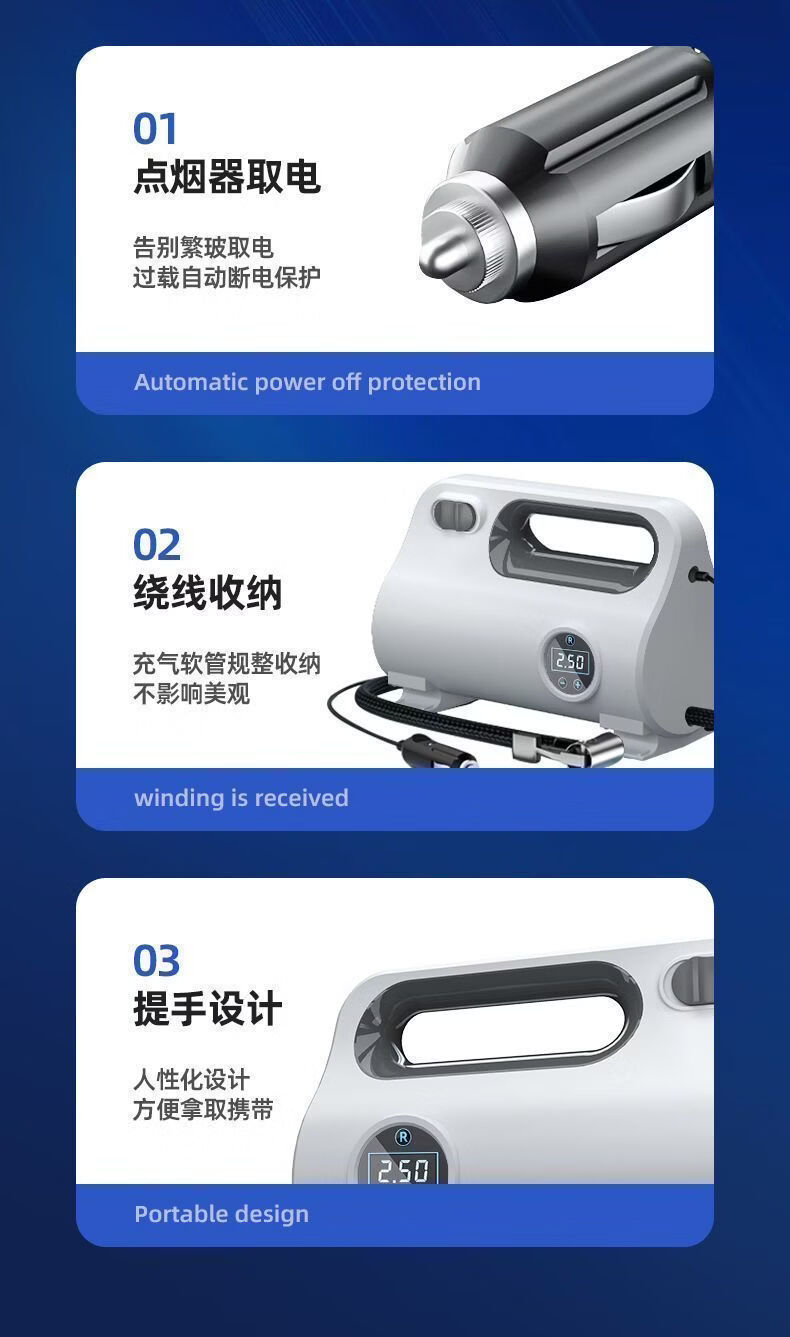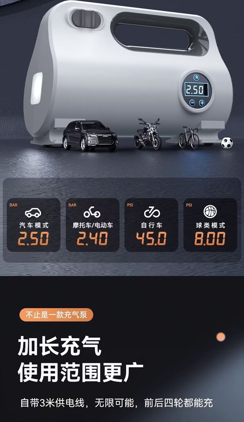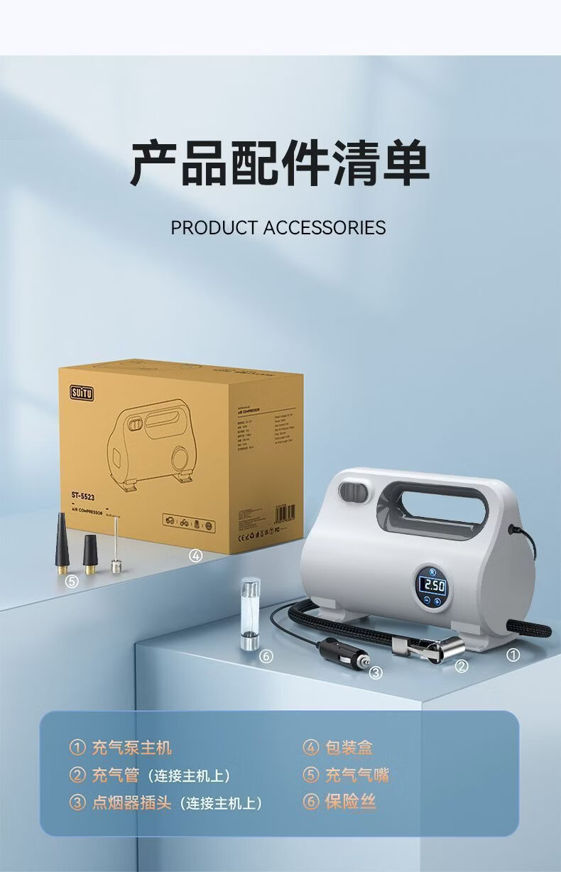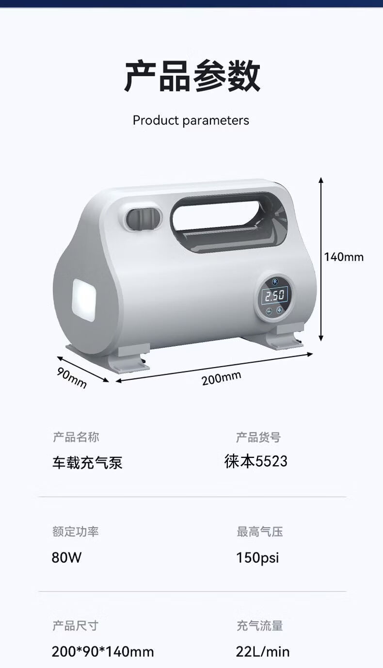 Gongma Laiben car air pump car electric pump car portable tire bicycle motorcycle tire mechanical pointer type inflation tube + air nozzle + fuse
