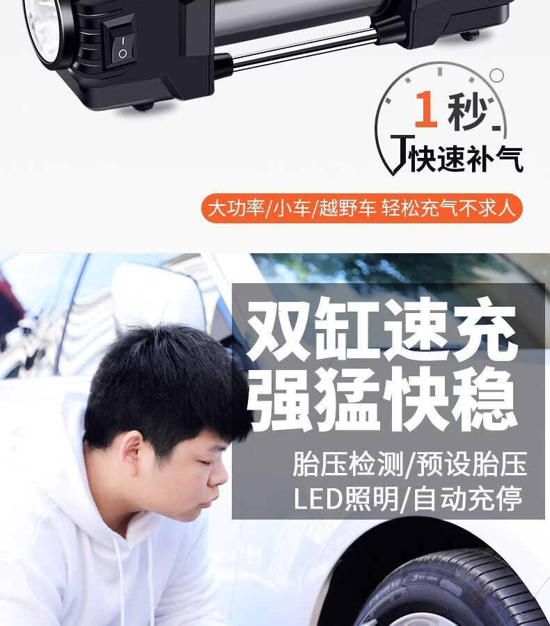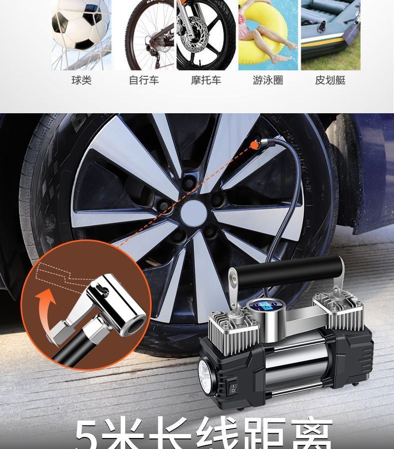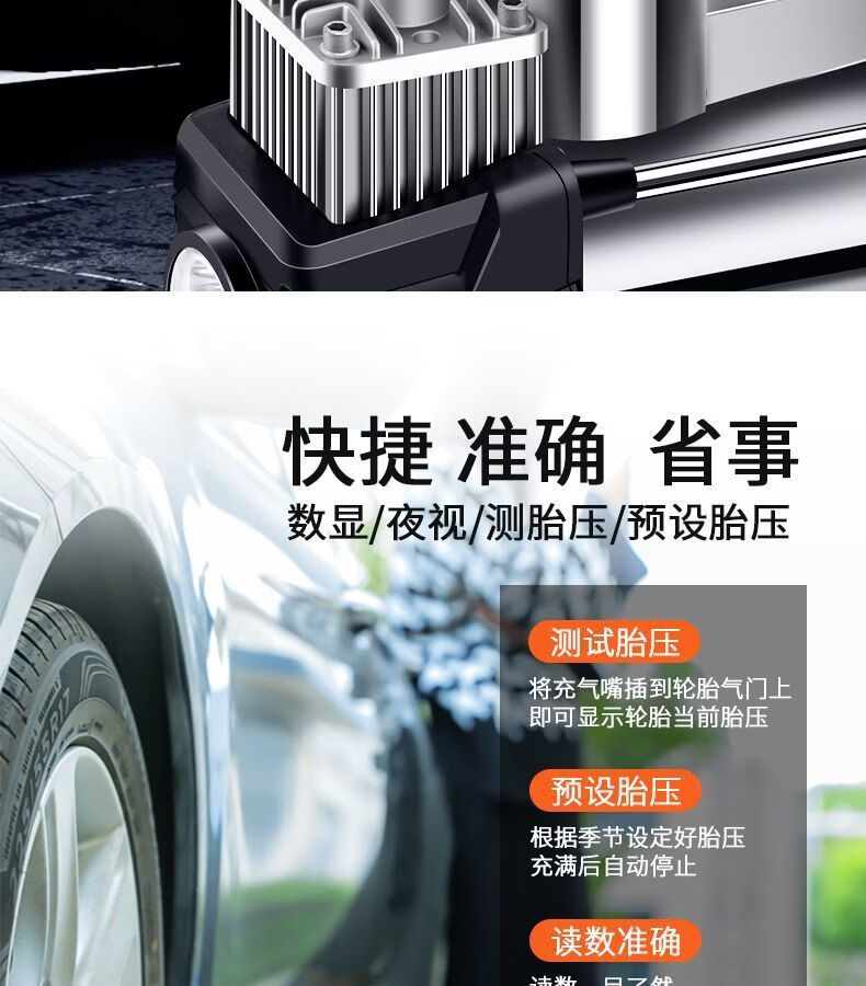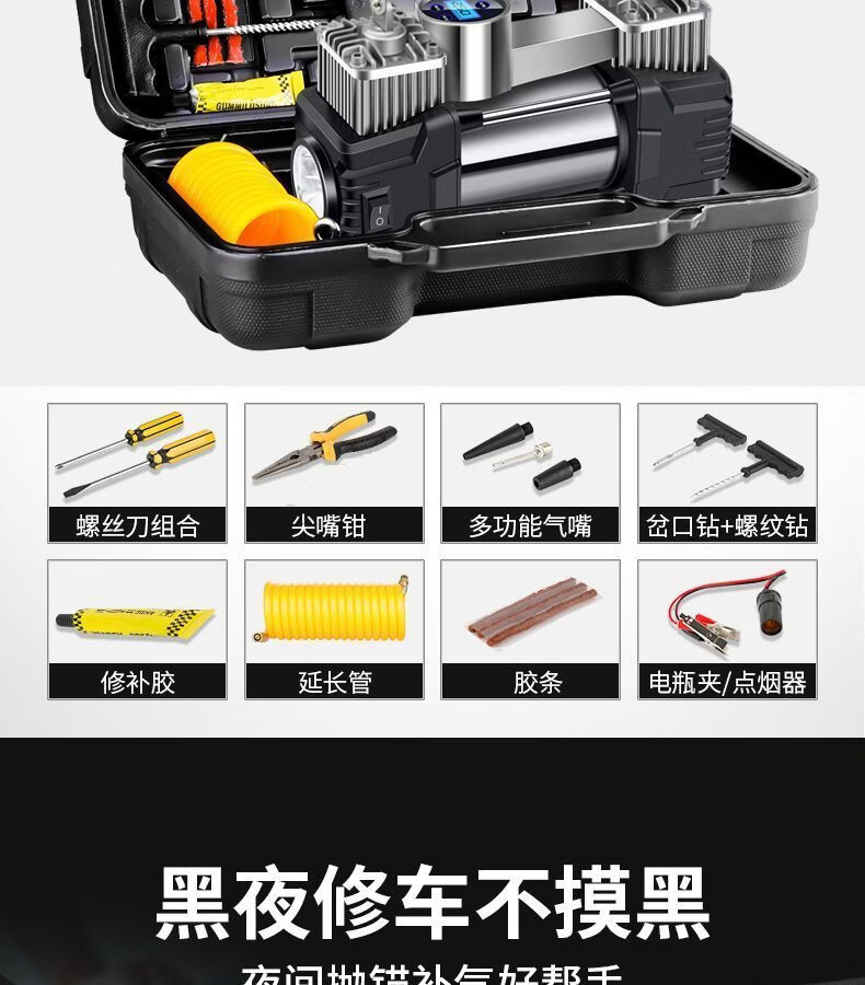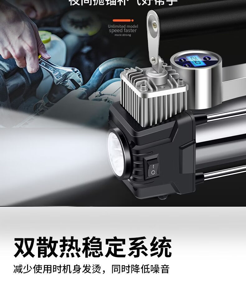 Workhorse on-board air pump parallel bar high-power car household small portable quick pump tire air pump upgraded version - mechanical watch with light model accurate pressure measurement manual shutdown