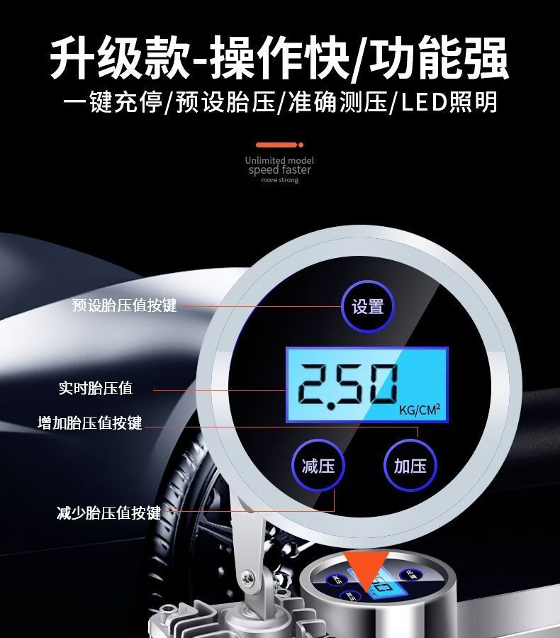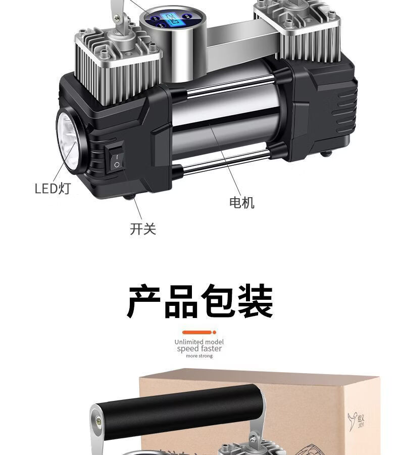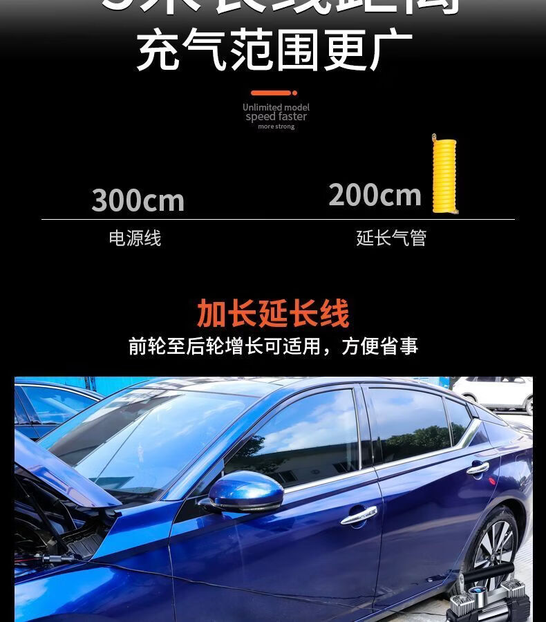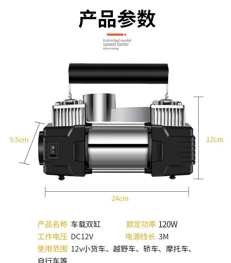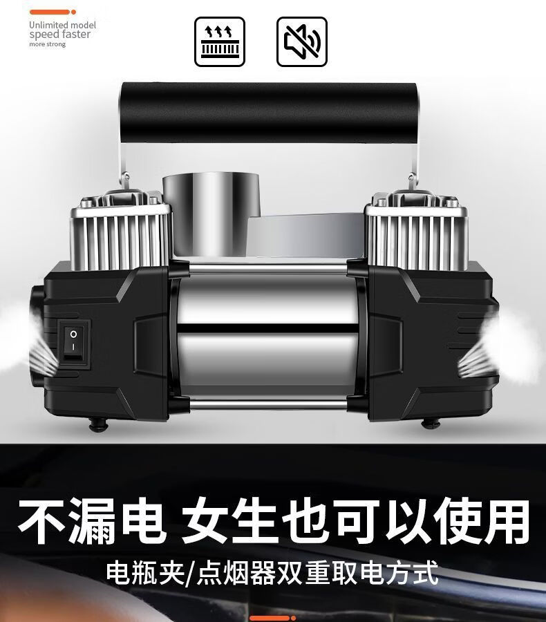 Workhorse on-board air pump parallel bar high-power car household small portable quick pump tire air pump upgraded version - mechanical watch with light model accurate pressure measurement manual shutdown