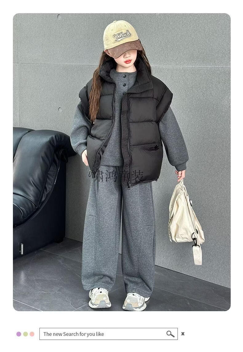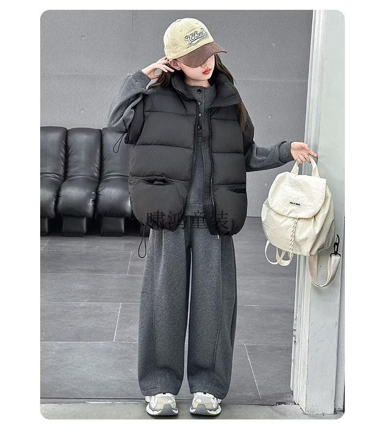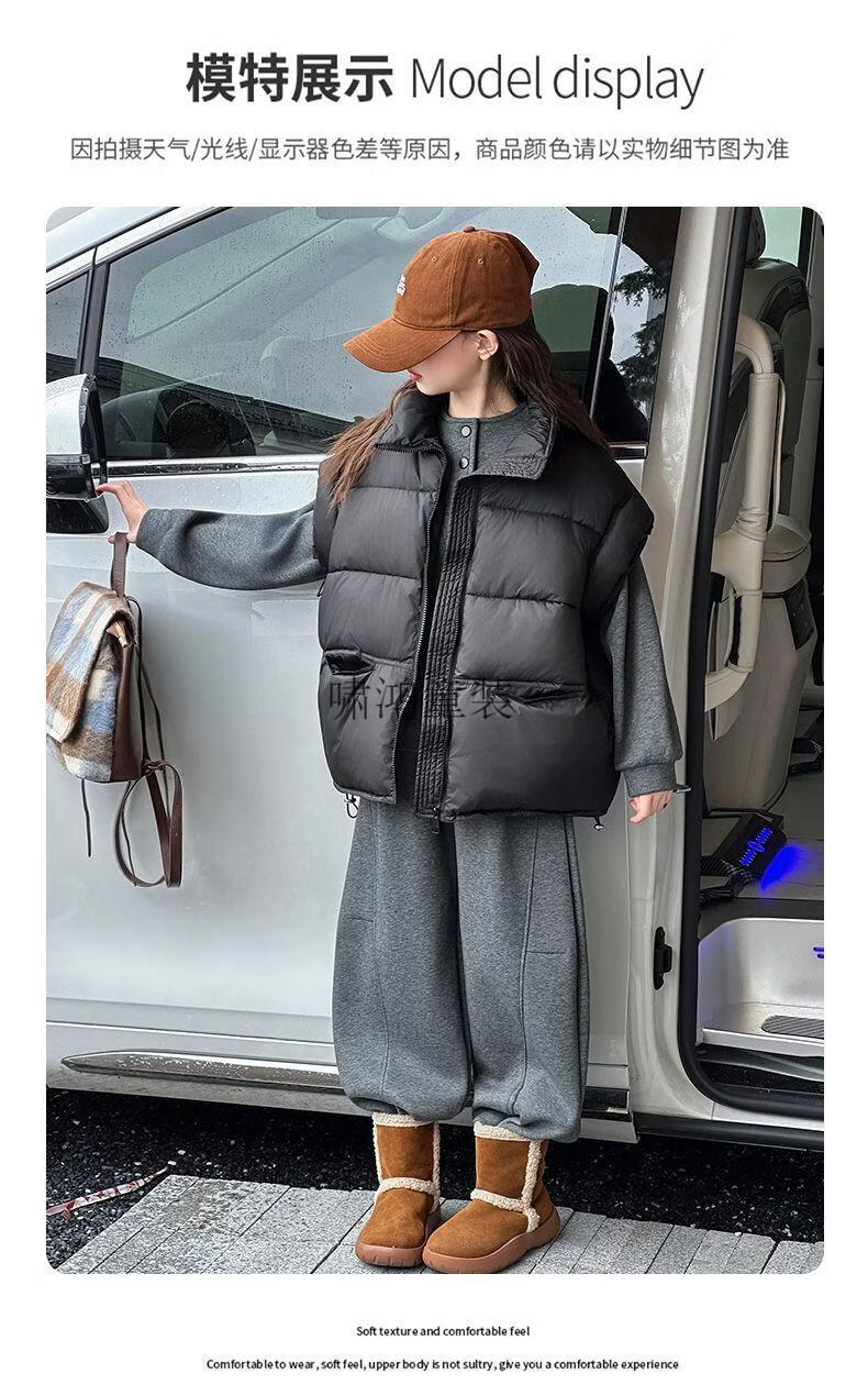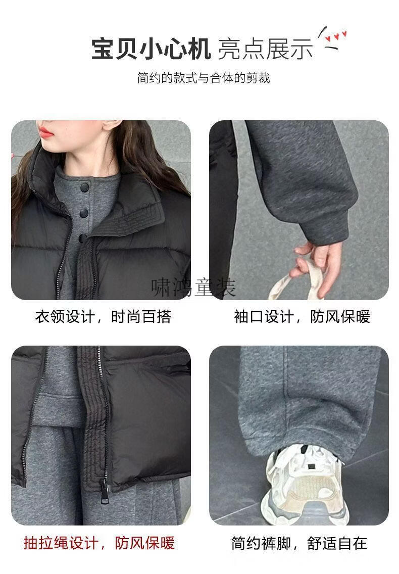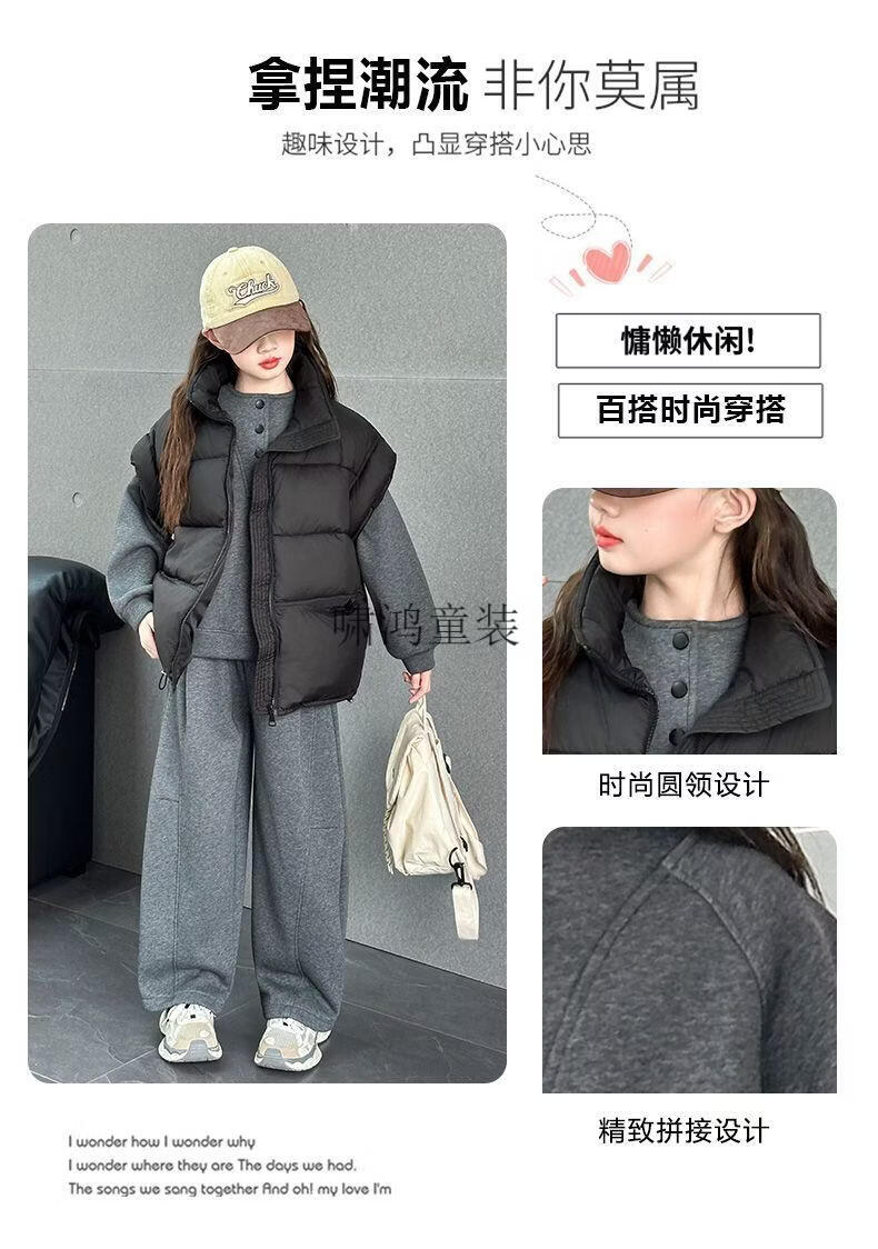 Wooden house girl's winter vest plus velvet and thickening for middle and large children 2026 new style autumn and winter style children's three-piece trendy black cotton vest thickened 140 recommended height 125-135 weight 50-60 Jin Jin is equal to 0.5 kg