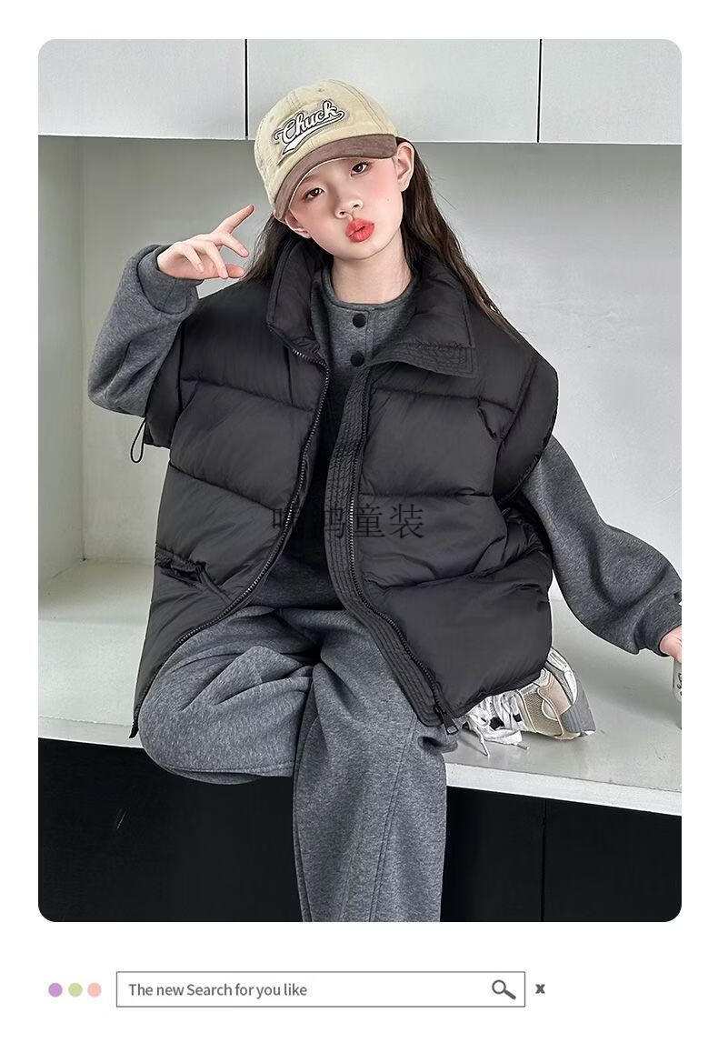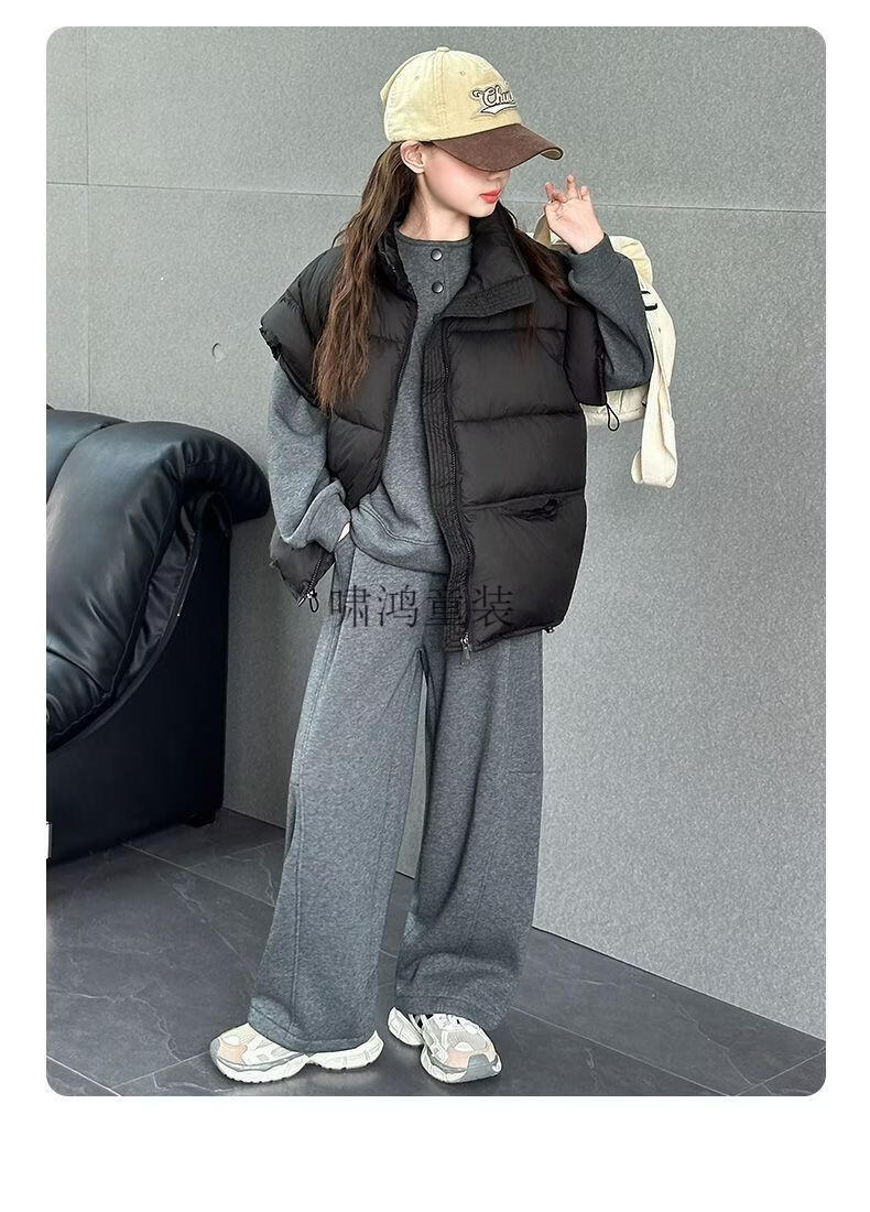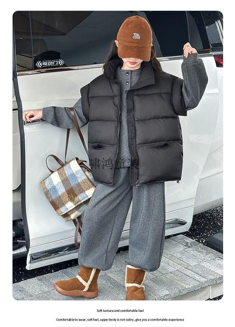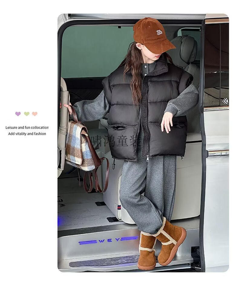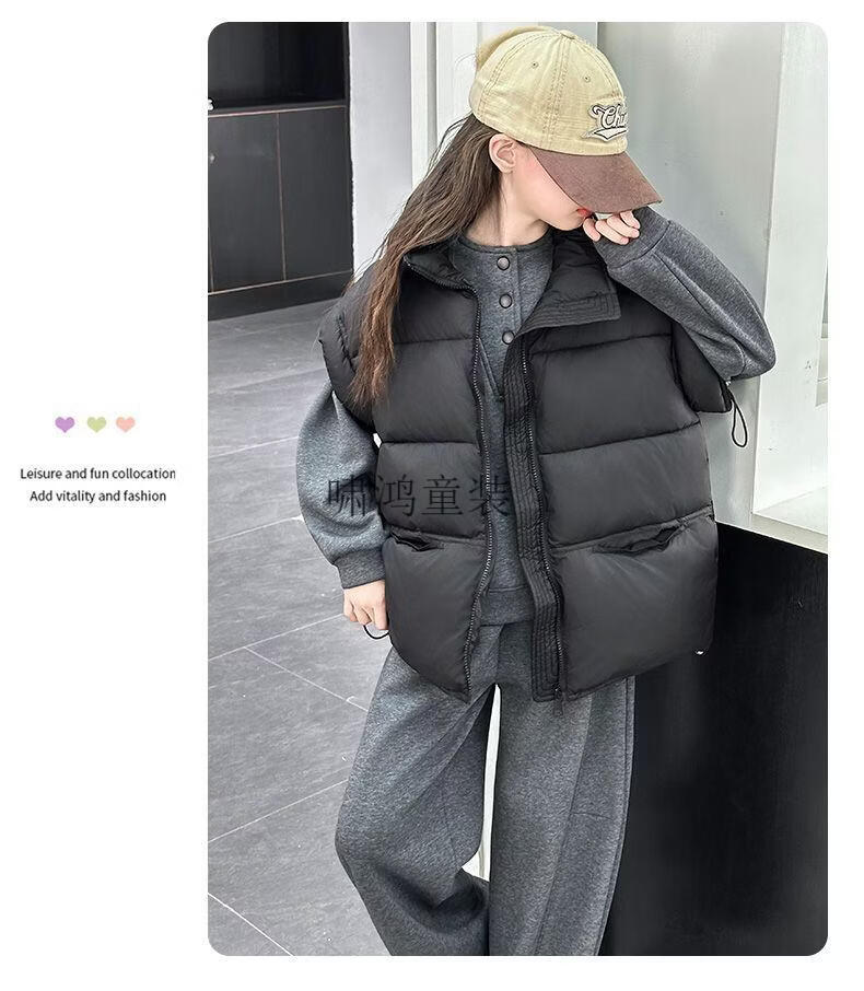 Wooden house girl's winter vest plus velvet and thickening for middle and large children 2026 new style autumn and winter style children's three-piece trendy black cotton vest thickened 140 recommended height 125-135 weight 50-60 Jin Jin is equal to 0.5 kg