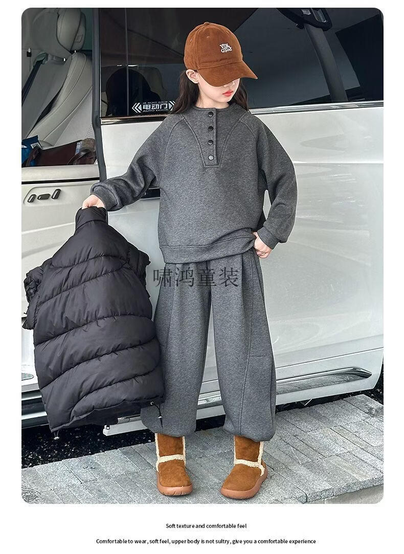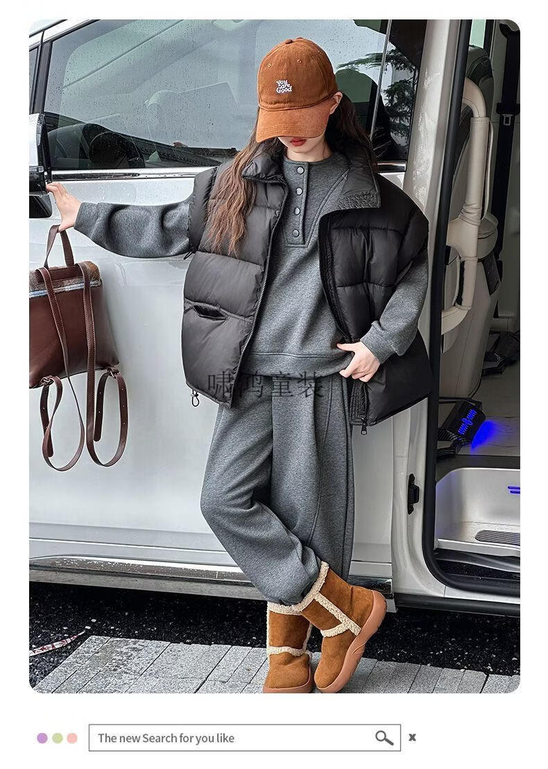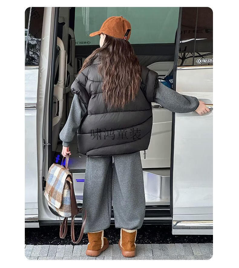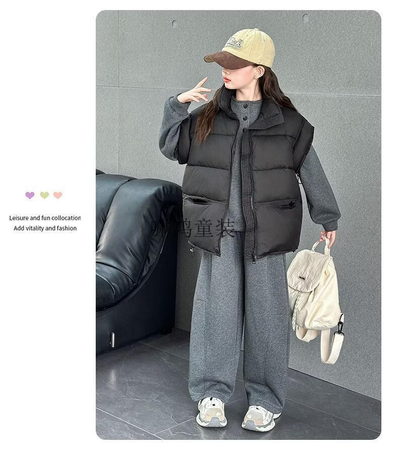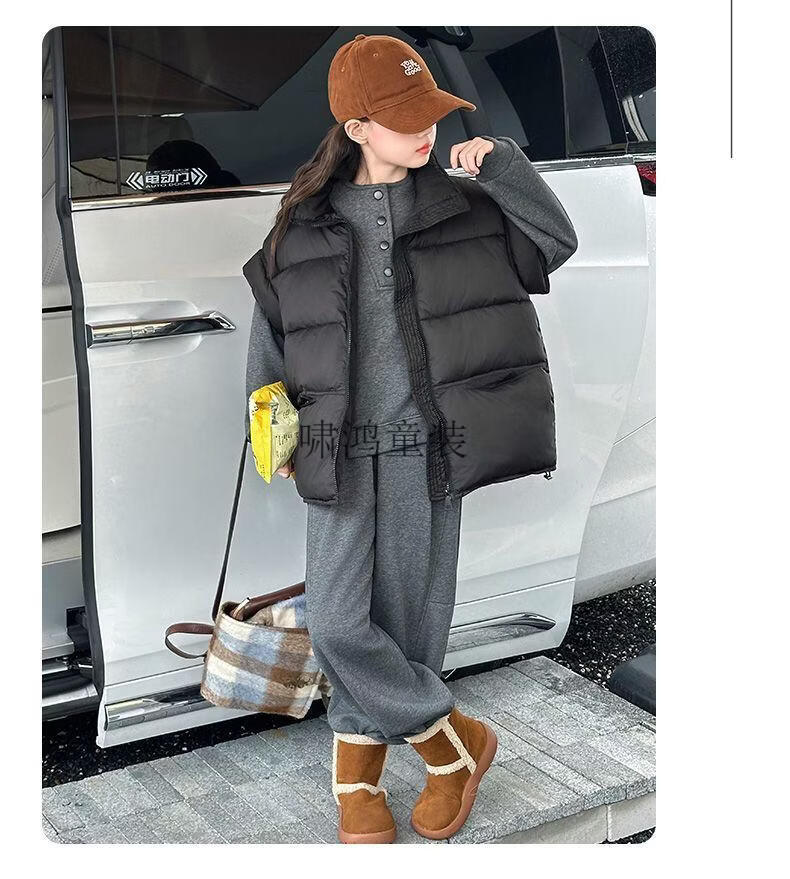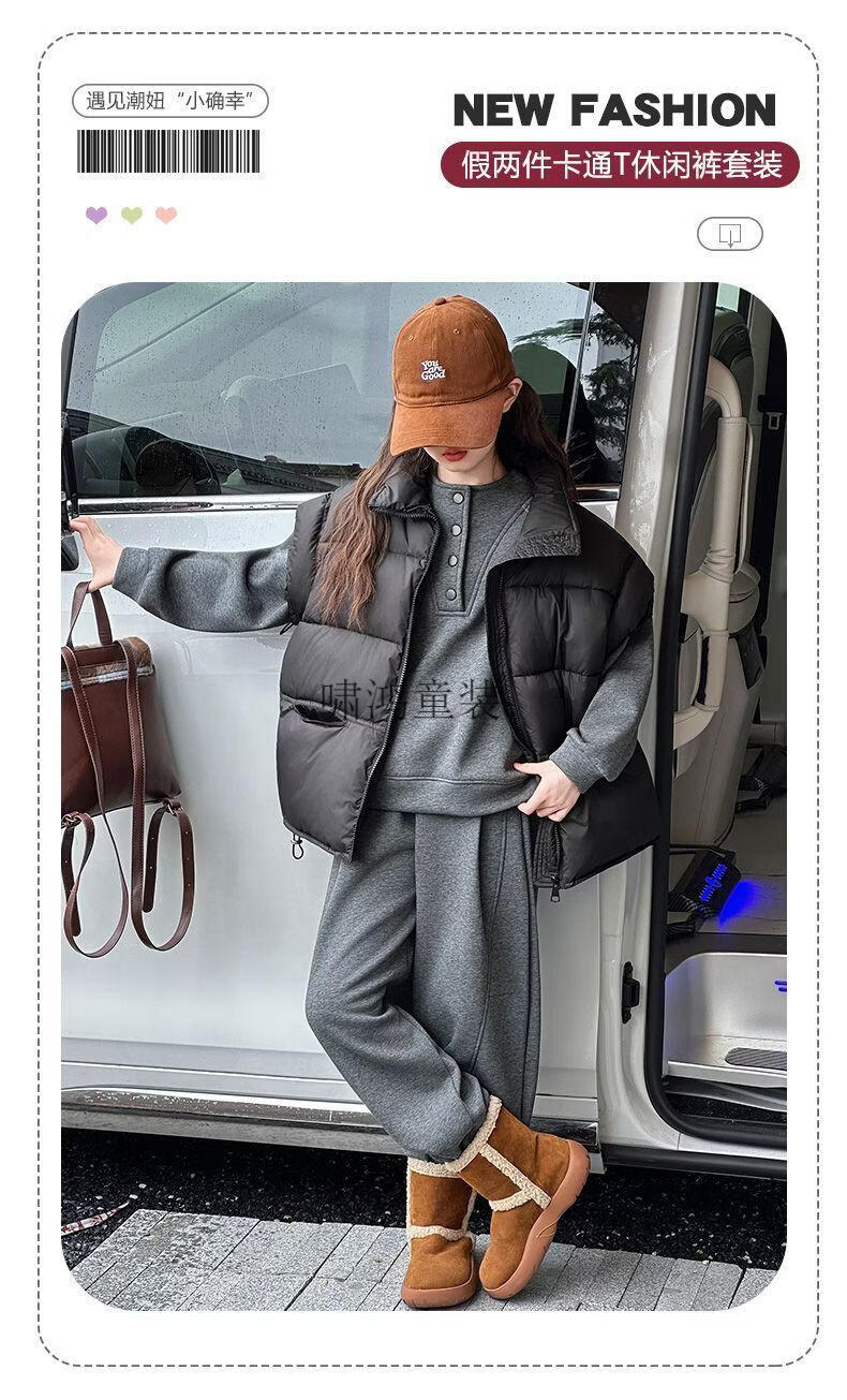 Wooden house girl's winter vest plus velvet and thickening for middle and large children 2026 new style autumn and winter style children's three-piece trendy black cotton vest thickened 140 recommended height 125-135 weight 50-60 Jin Jin is equal to 0.5 kg