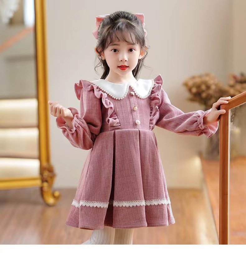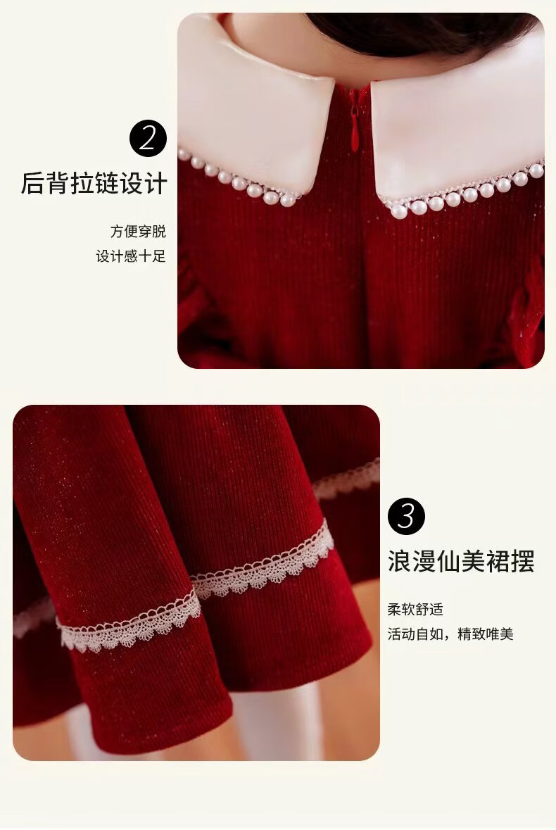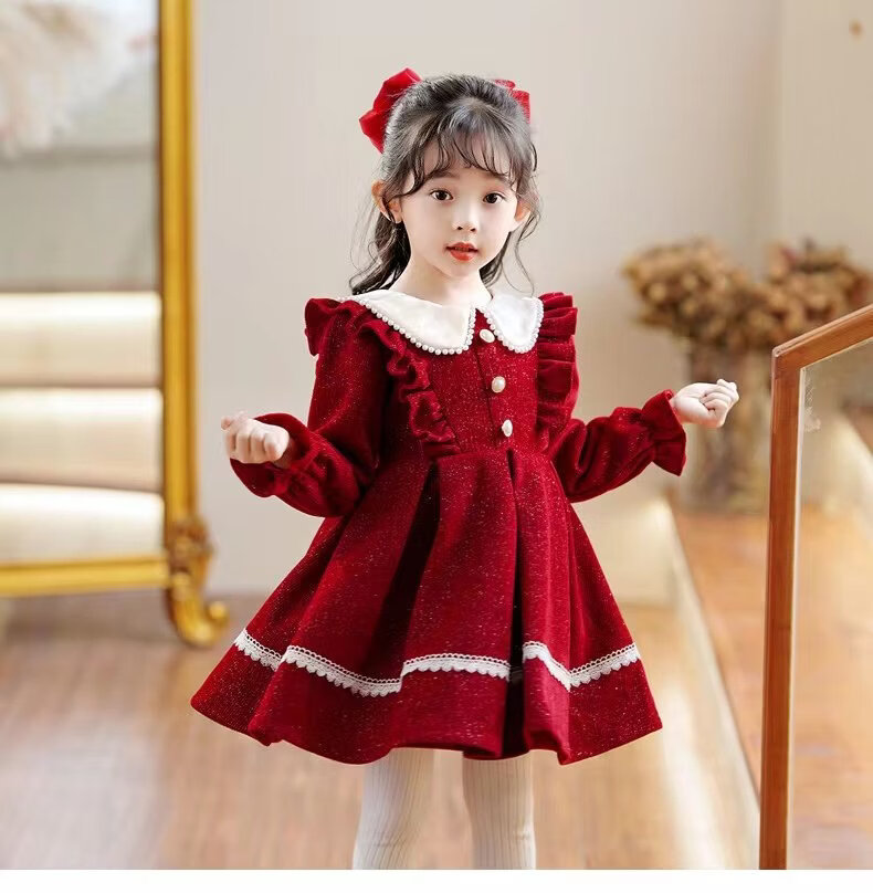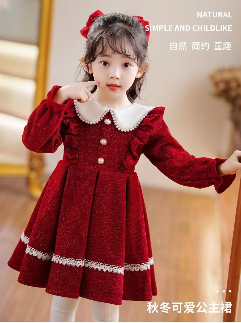 G.duck girls dress autumn and winter 2025 new velvet winter girl red annual dress children princess skirt winter red spring and autumn 90 cm