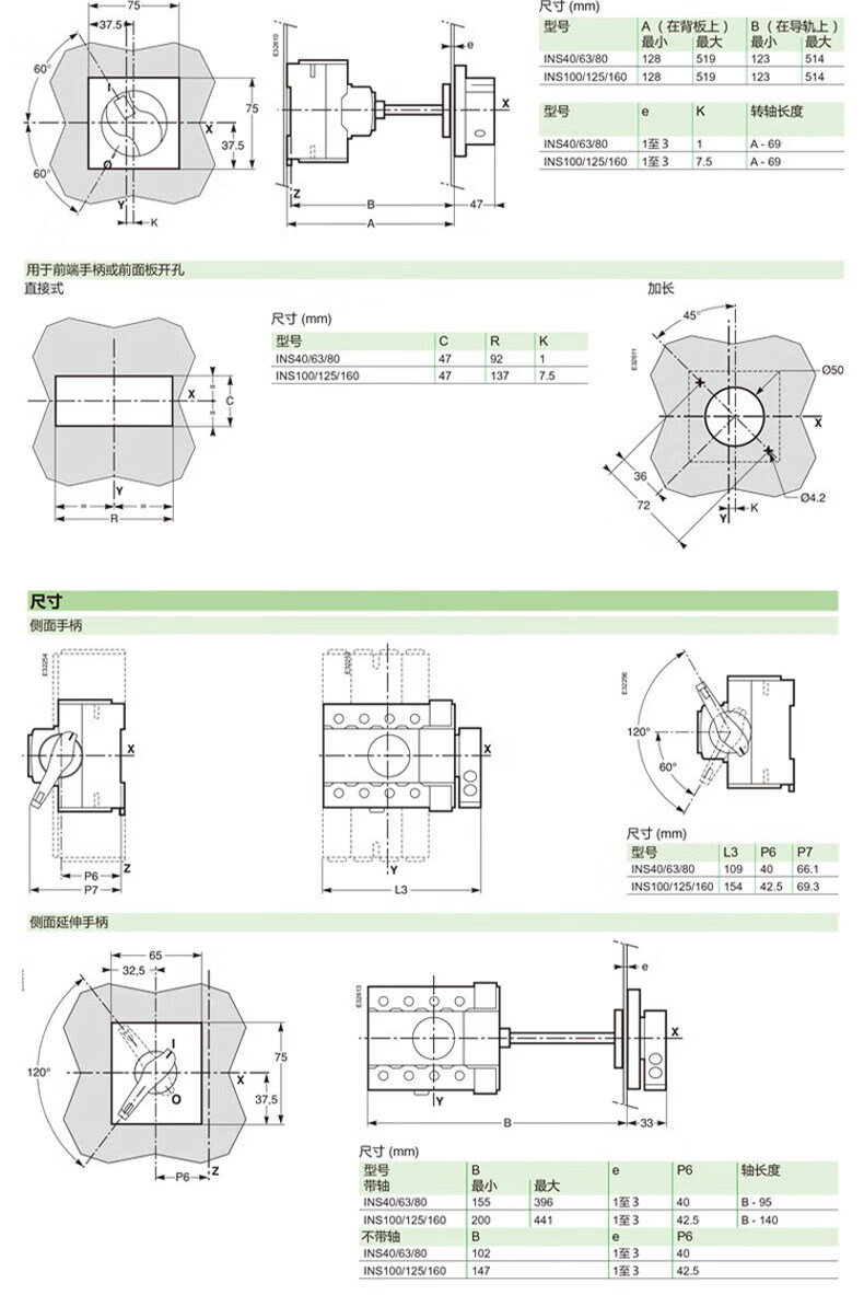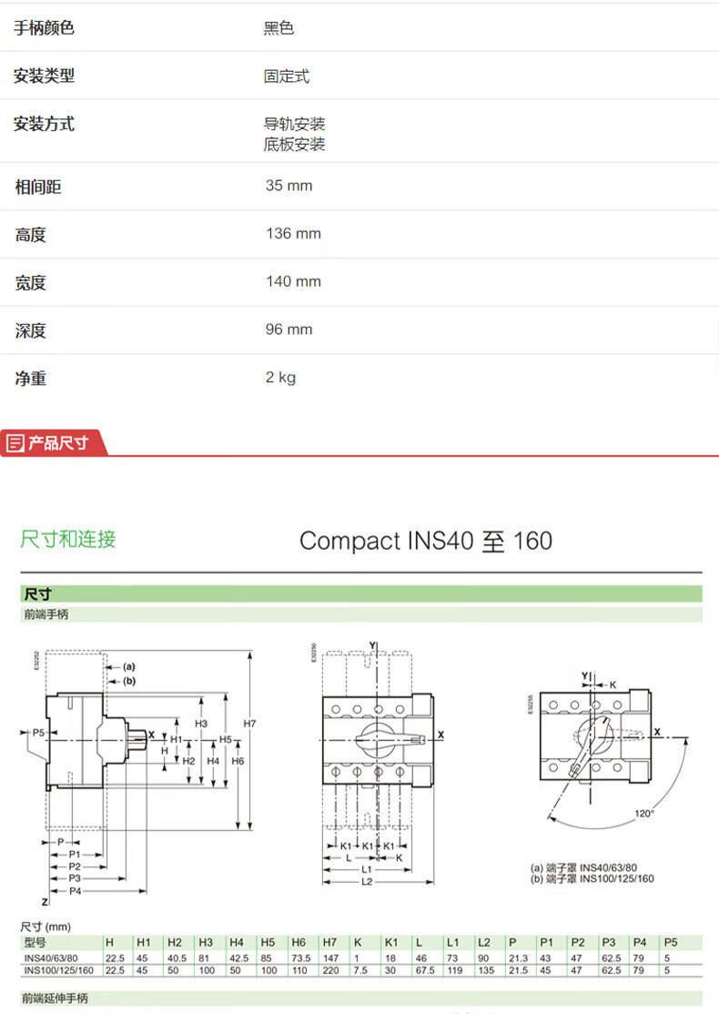 Isolating switch INS63 3P 80/100/125/160/250/400/630A load switch 4P INS40 3P 40A