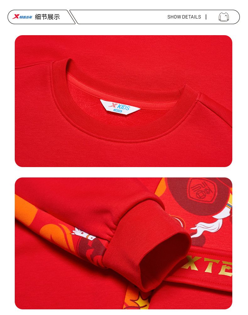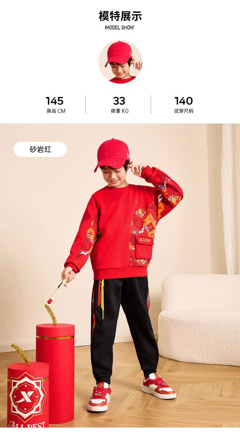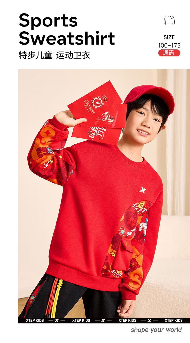 Xtep red sweatshirt children's birth year thickened girls' clothes 2026 spring skin-friendly outer wear primary school student tops sandstone red 160