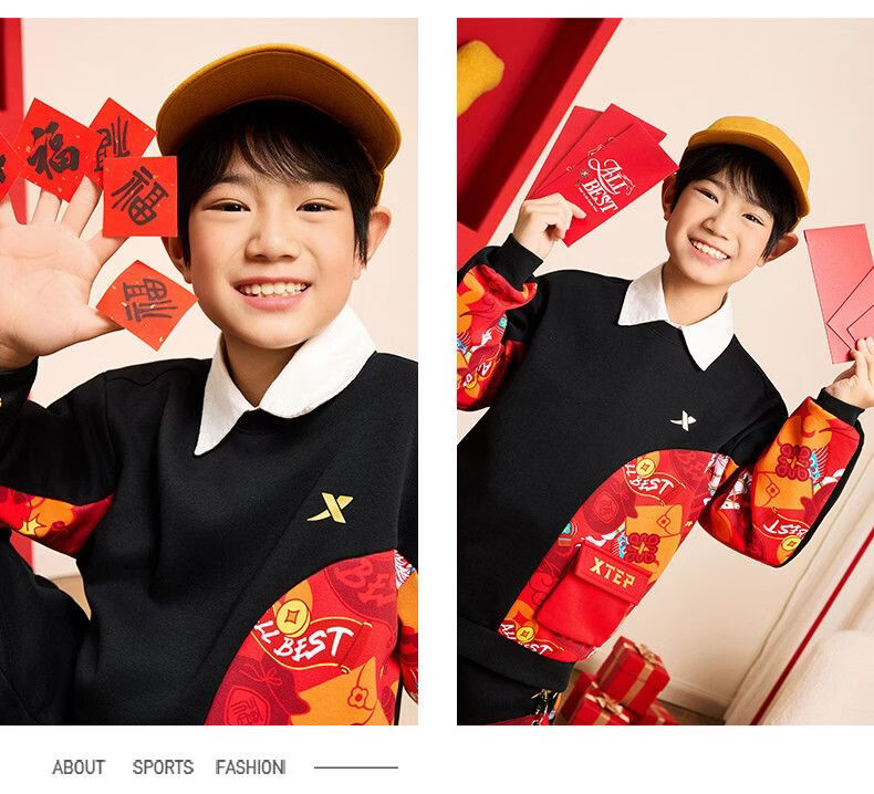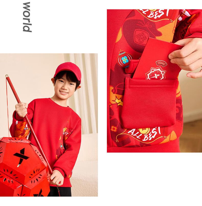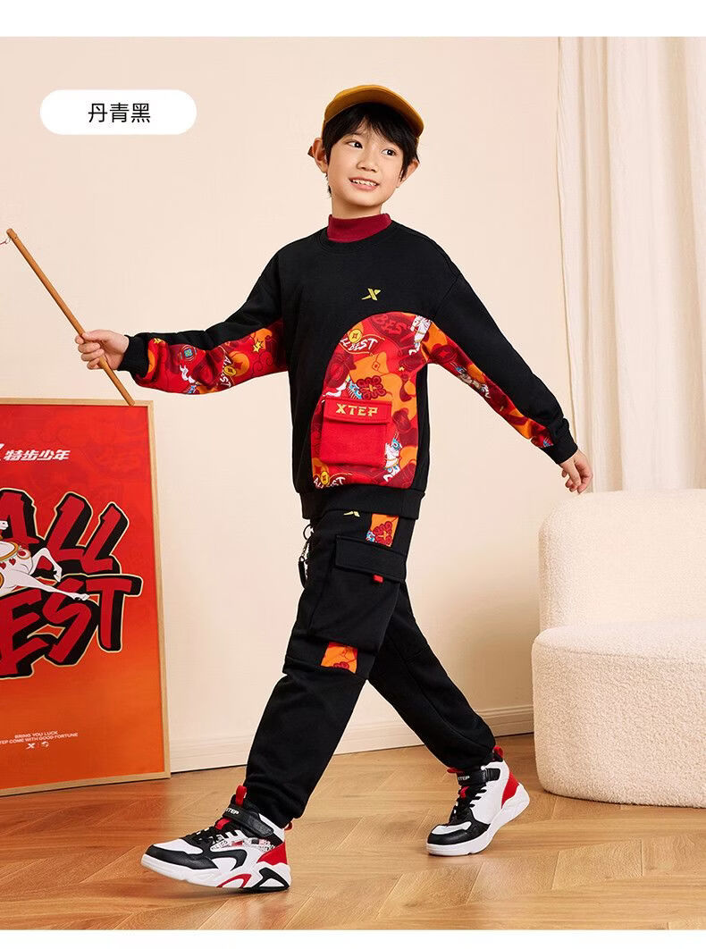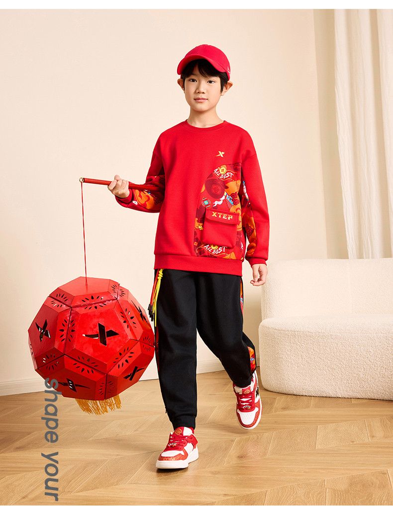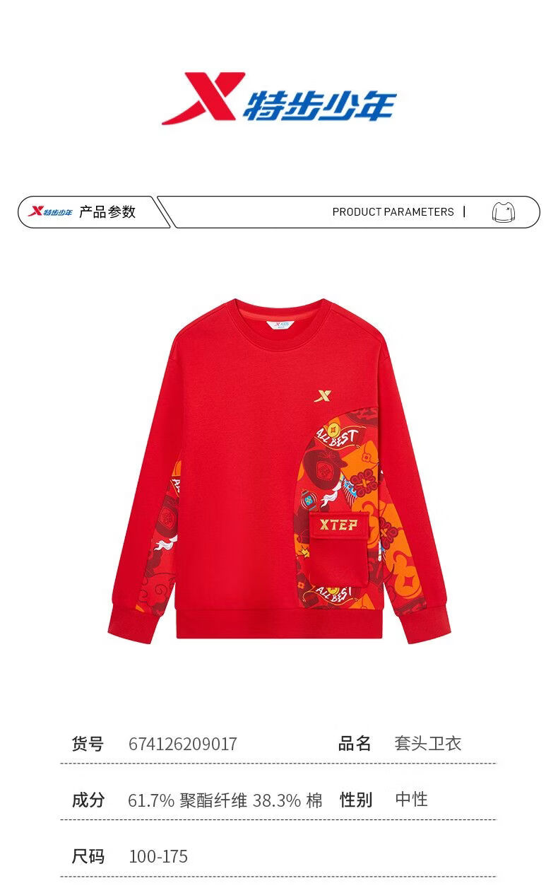 Xtep red sweatshirt children's birth year thickened girls' clothes 2026 spring skin-friendly outer wear primary school student tops sandstone red 160