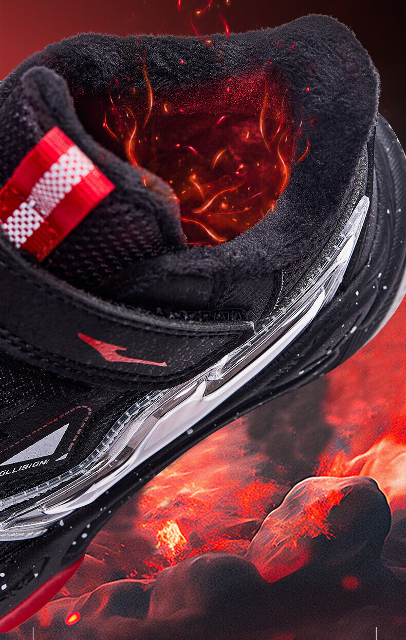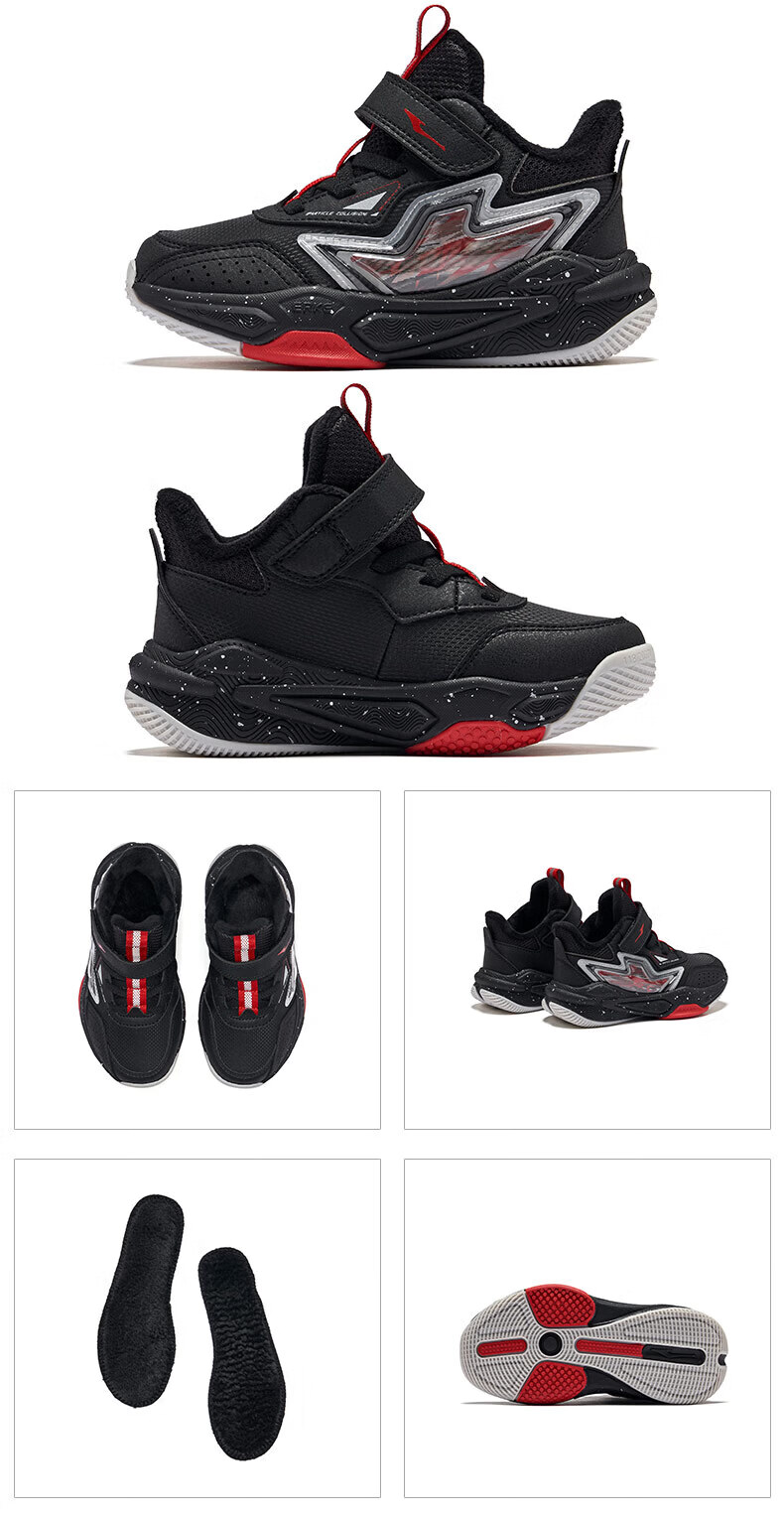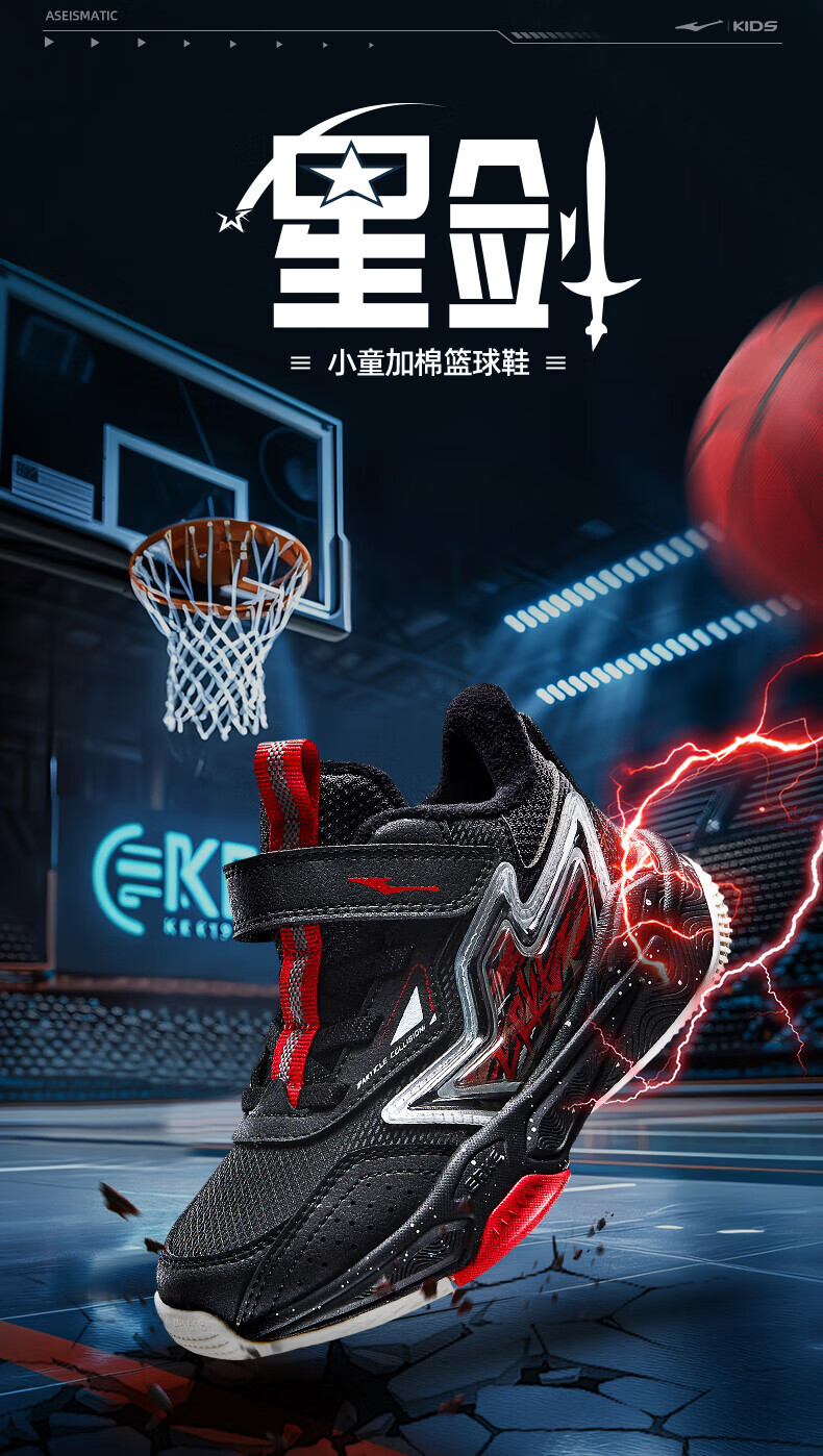 Hongxing Erke Boys' Shoes Girls' Cotton Shoes Winter Children's Cotton Basketball Shoes Children's Sports Shoes New Year's Eve in the Year of the Horse丨Star Sword True Black/Red Red - 1 Size Small 28