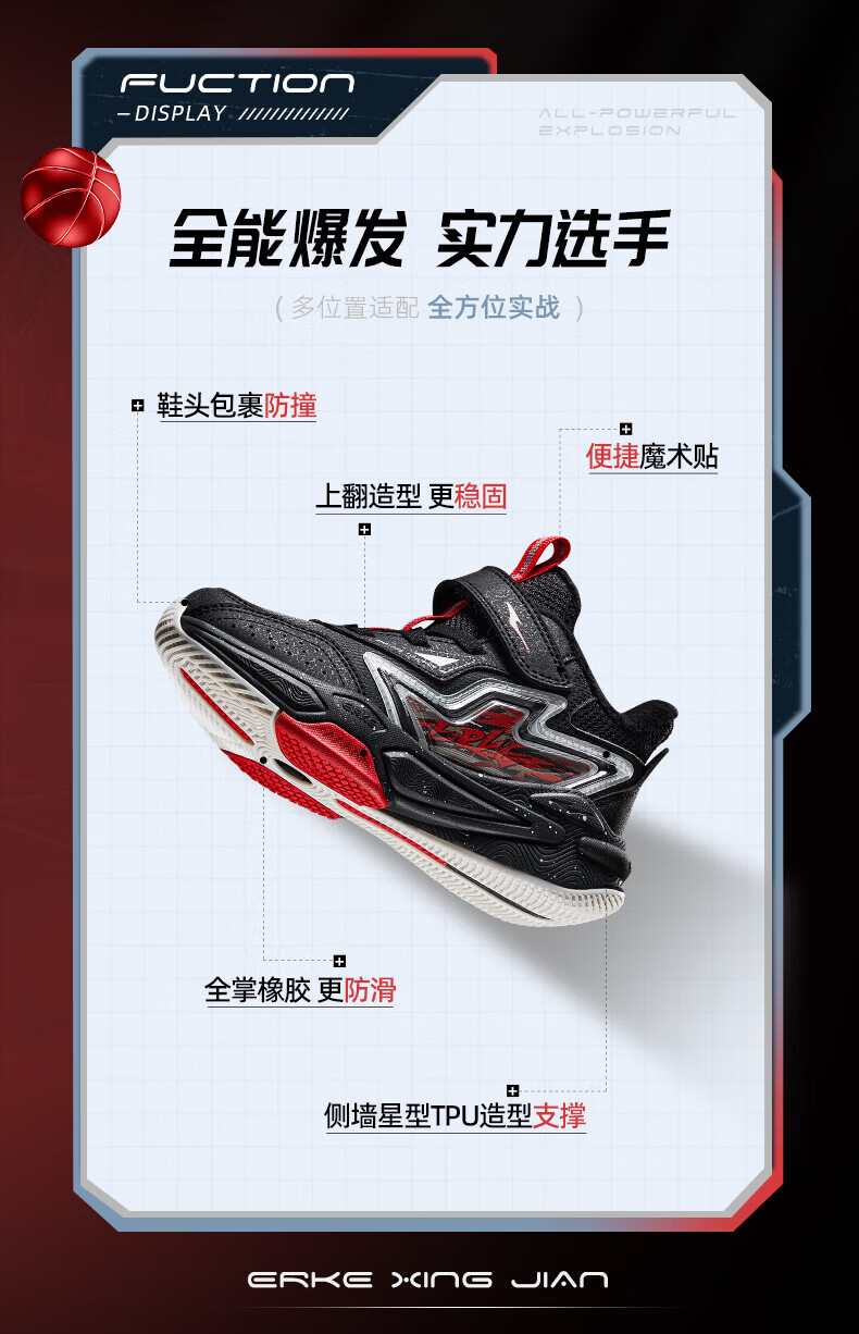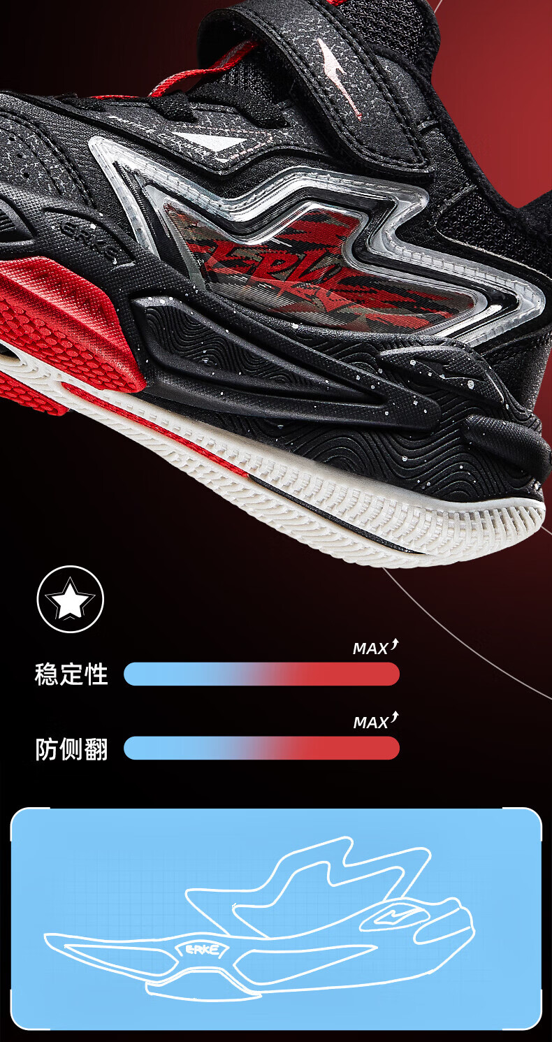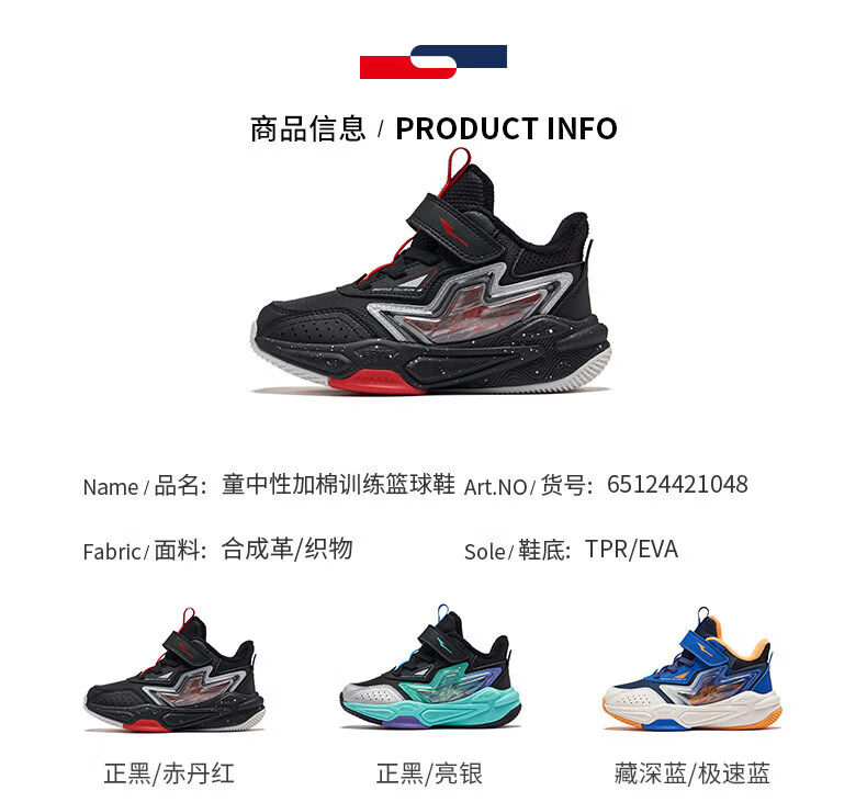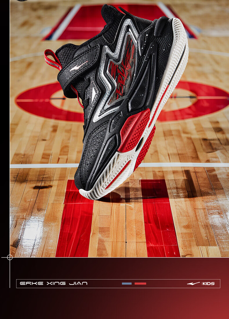 Hongxing Erke Boys' Shoes Girls' Cotton Shoes Winter Children's Cotton Basketball Shoes Children's Sports Shoes New Year's Eve in the Year of the Horse丨Star Sword True Black/Red Red - 1 Size Small 28