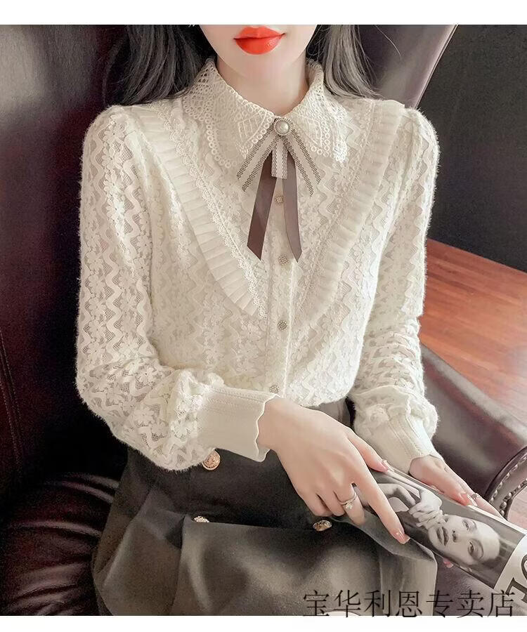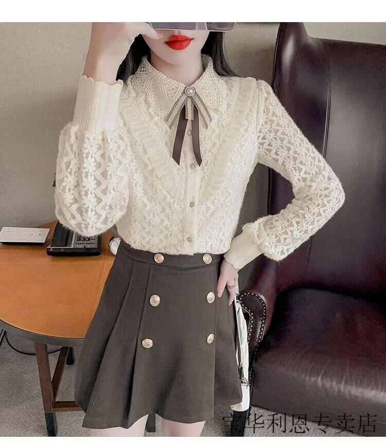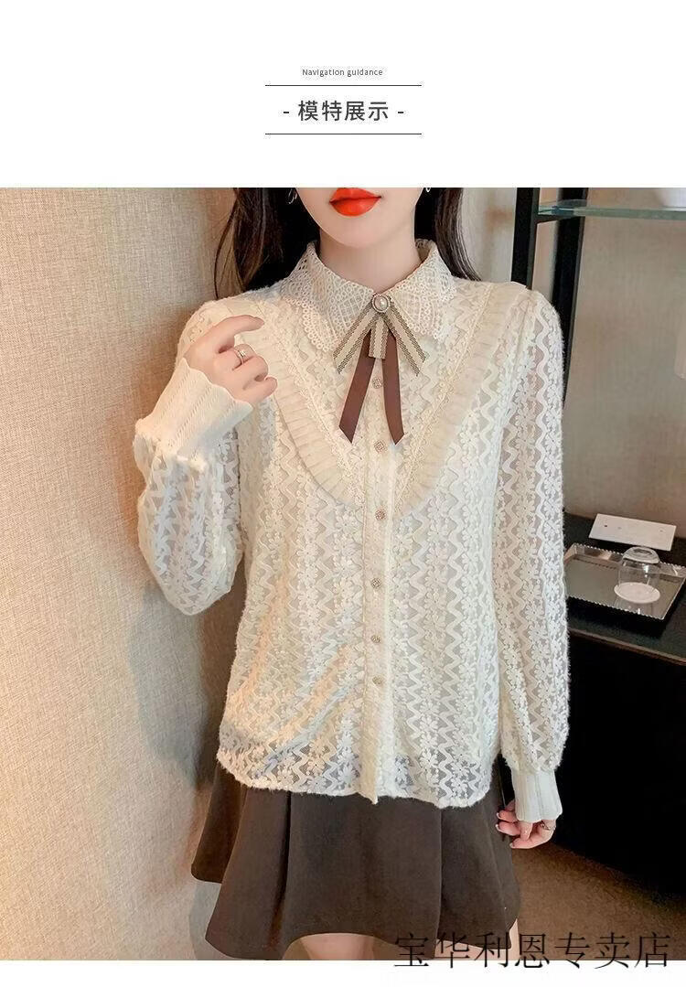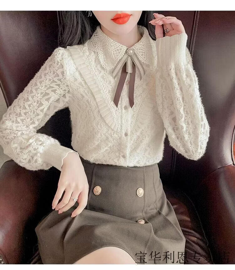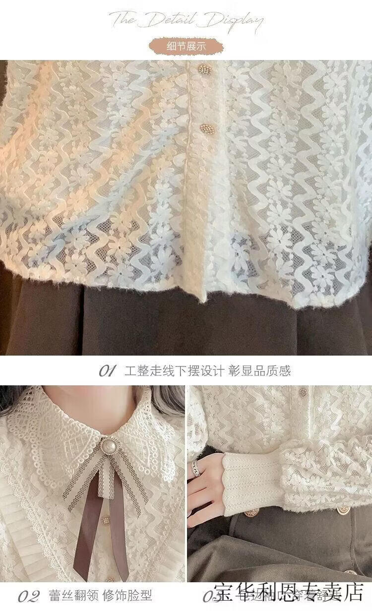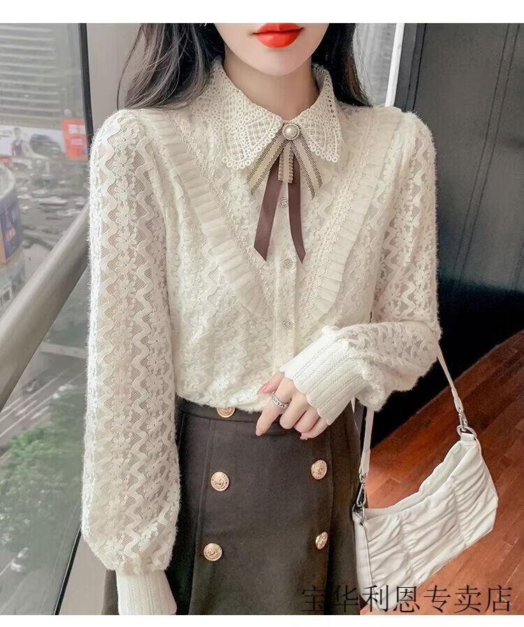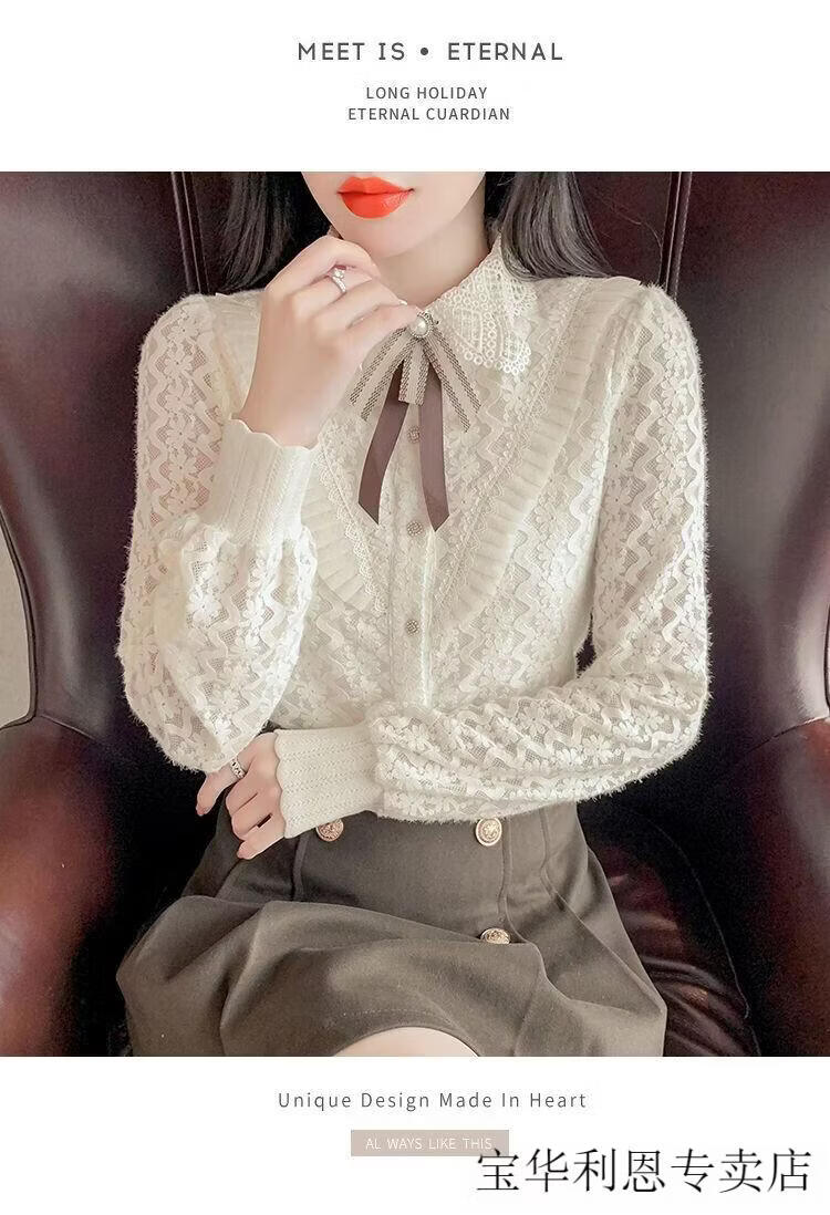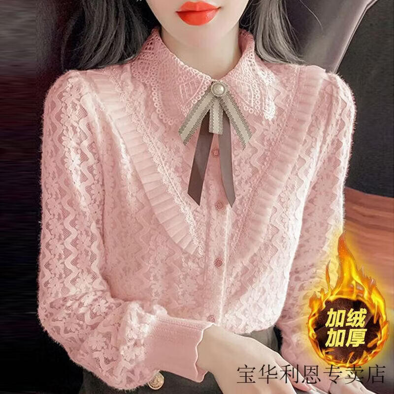 Woodpecker (TUCANO) new autumn and winter velvet thickened shirt women's fashion loose lace bottoming shirt women's doll collar slimming top to reduce age pink velvet S 80-95Jin Jin equals 0.5 kg