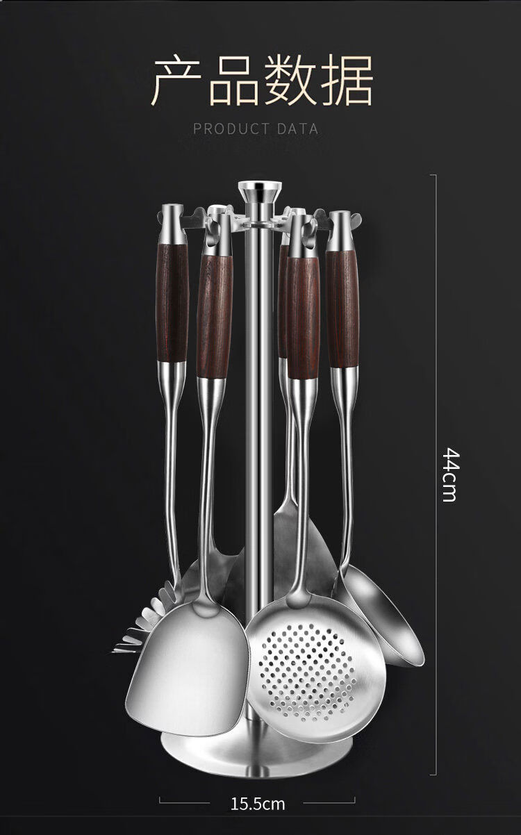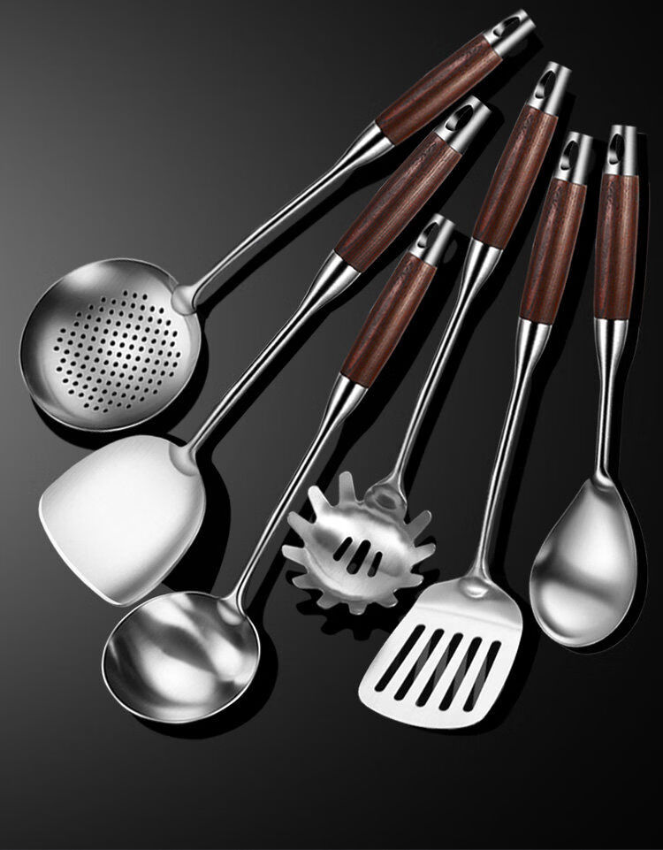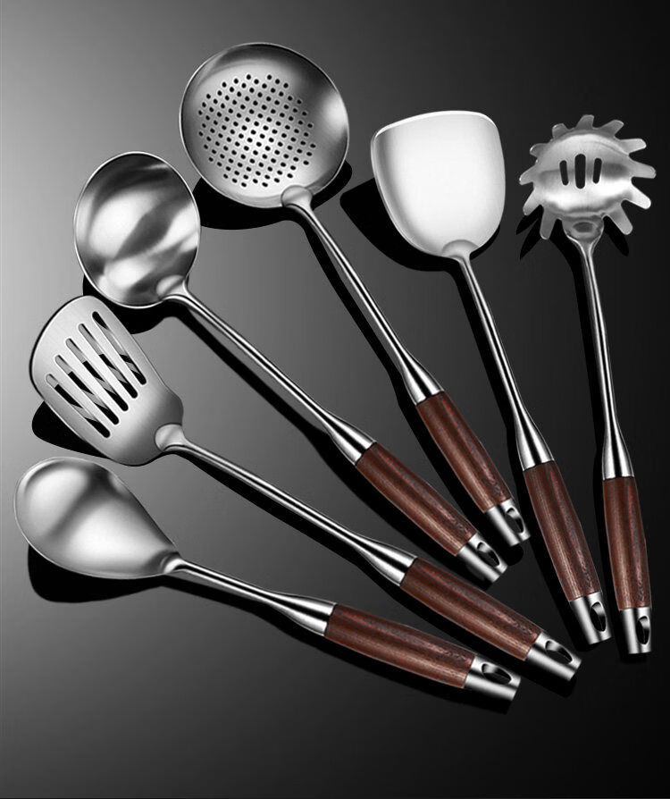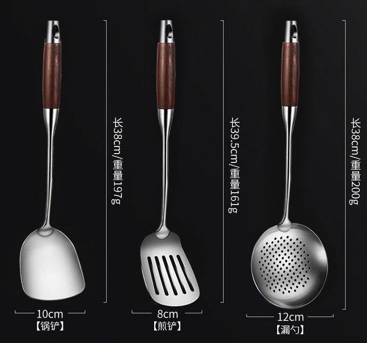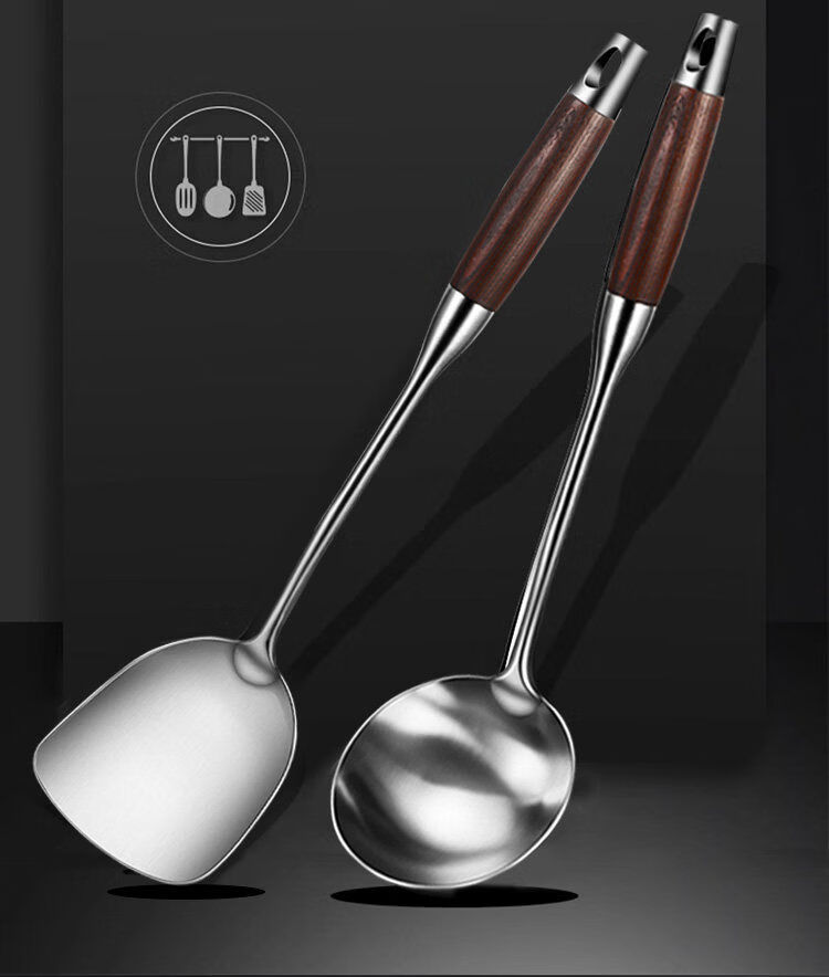 Pupan stainless steel soup spoon, large soup spoon, porridge spoon, long handle frying spoon, thickened kitchen utensils, spatula wood series, thickened