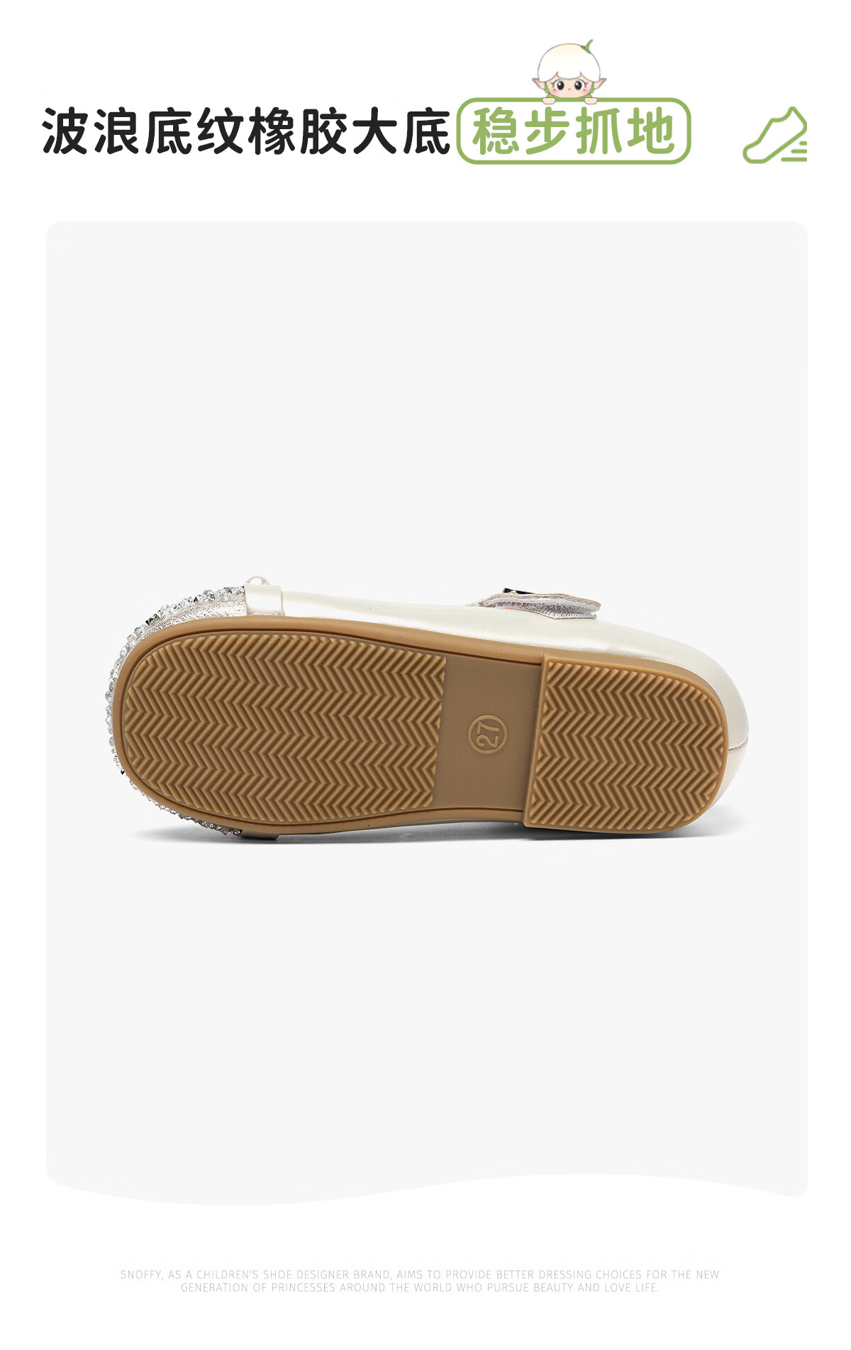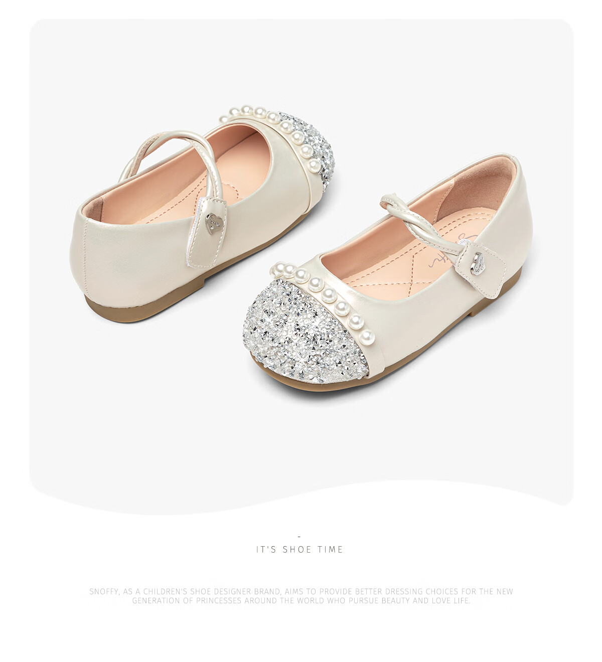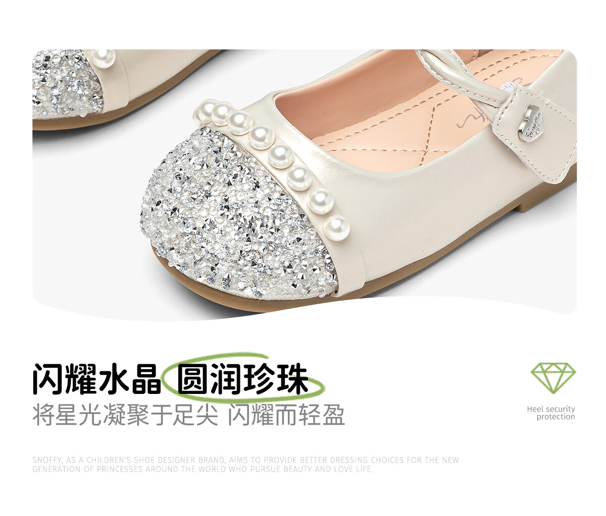 Snaffy Children's Crystal Shoes Girls Little Fragrance Princess Shoes 2026 Spring and Autumn New Baby Girl Shiny Leather Shoes Pearlescent White 31
