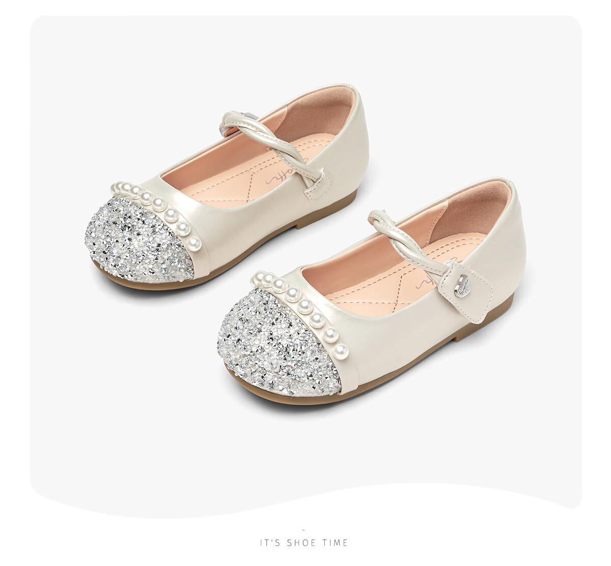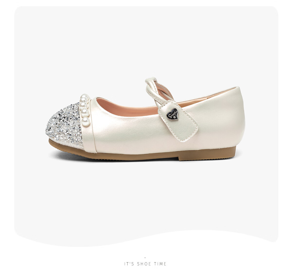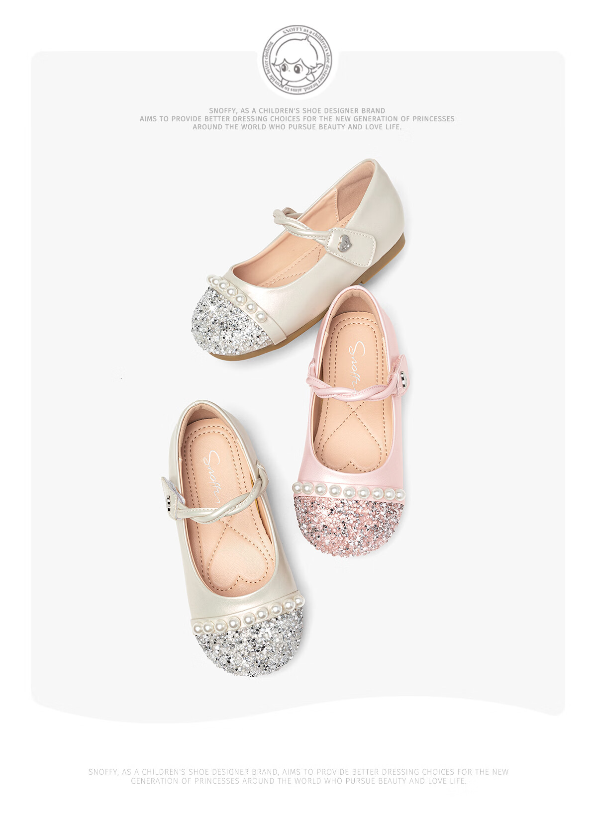 Snaffy Children's Crystal Shoes Girls Little Fragrance Princess Shoes 2026 Spring and Autumn New Baby Girl Shiny Leather Shoes Pearlescent White 31