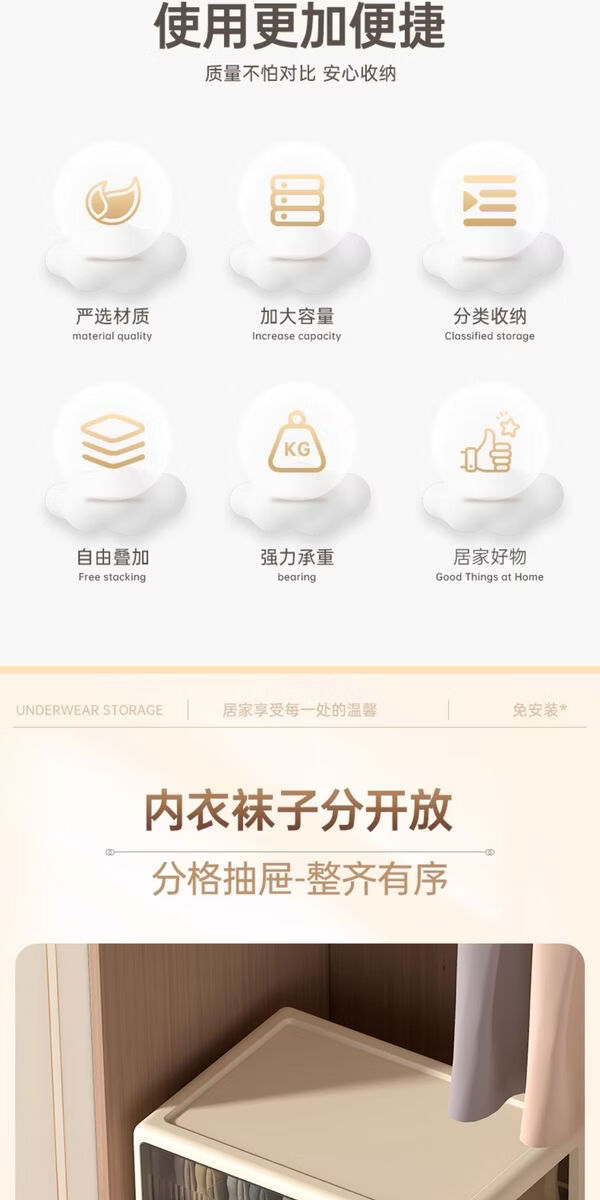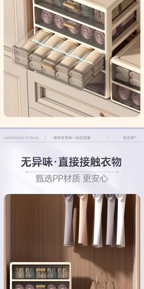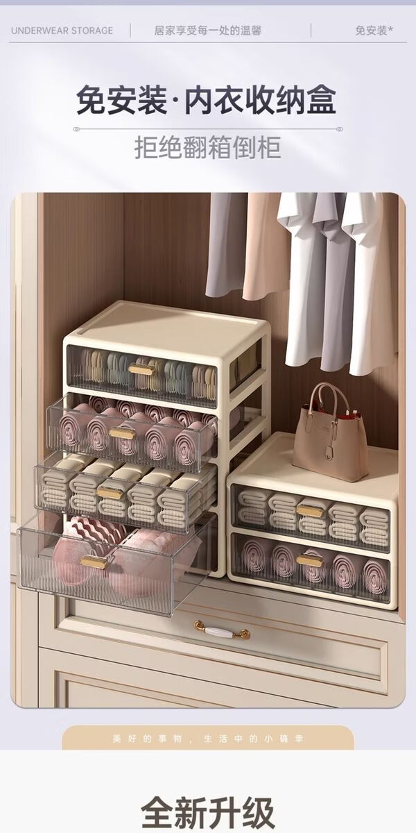 Yong Fantasy Underwear, Underwear and Socks Storage Box Drawer-type Organizing Box Storage Box 3-layer Underwear, Underwear and Socks Box Milk Coffee Color