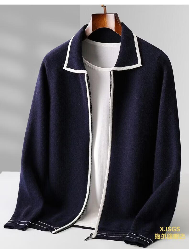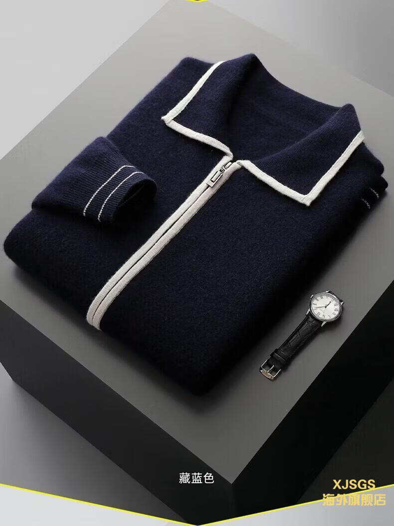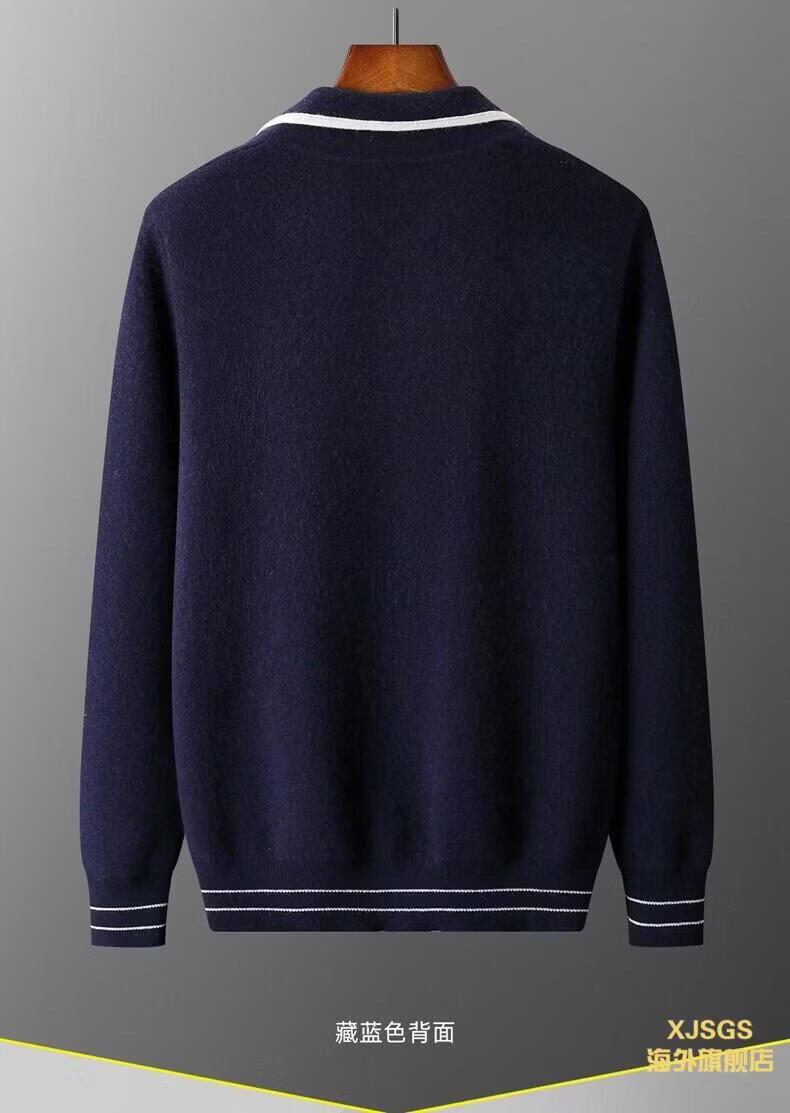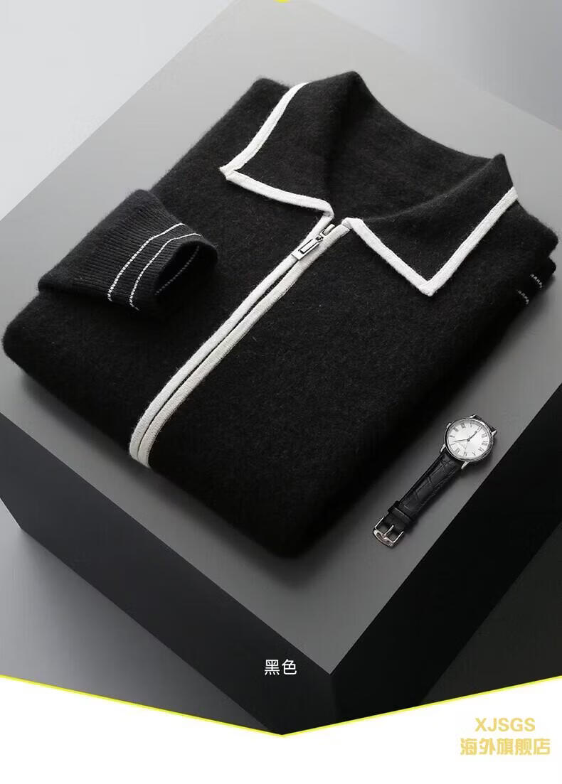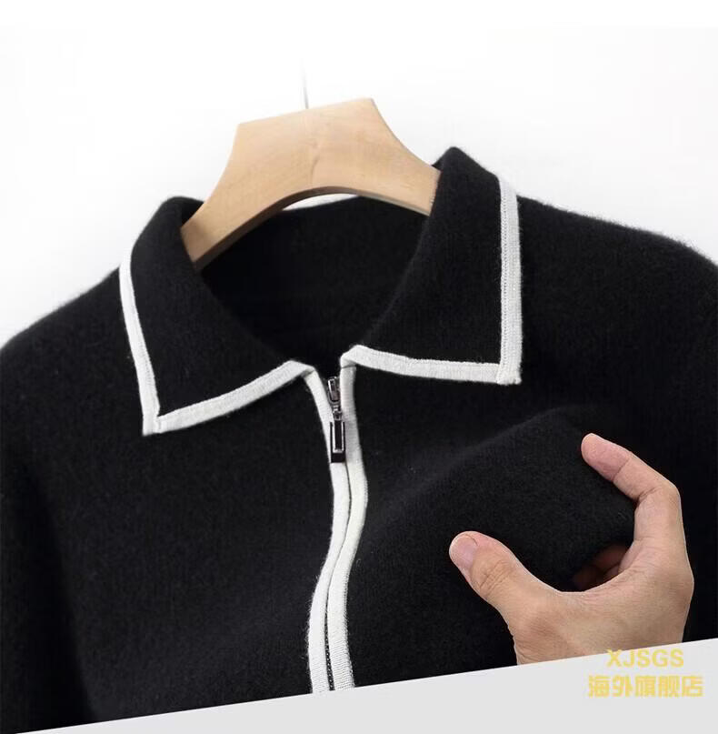 XJSGS international luxury high-end brand men's pure wool knitted bottoming shirt autumn and winter thickened lapel casual sweater high-end black men's brand winter style S
