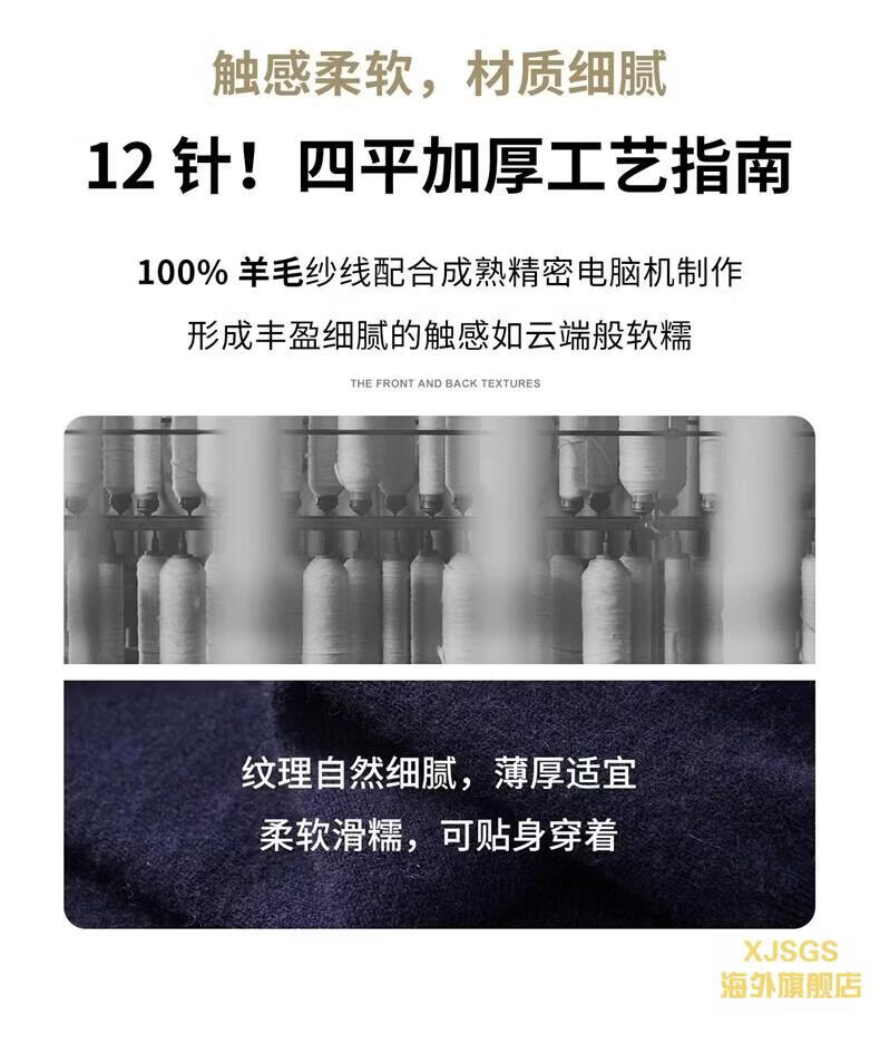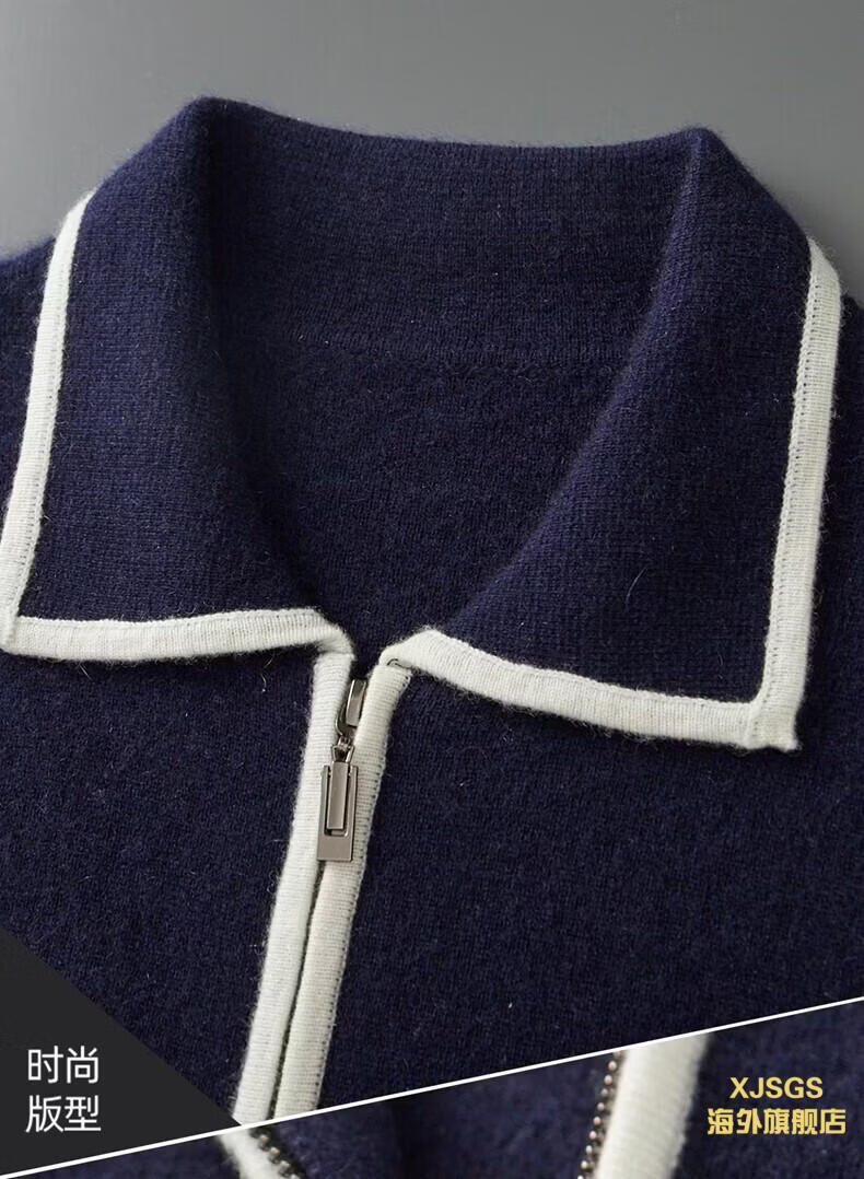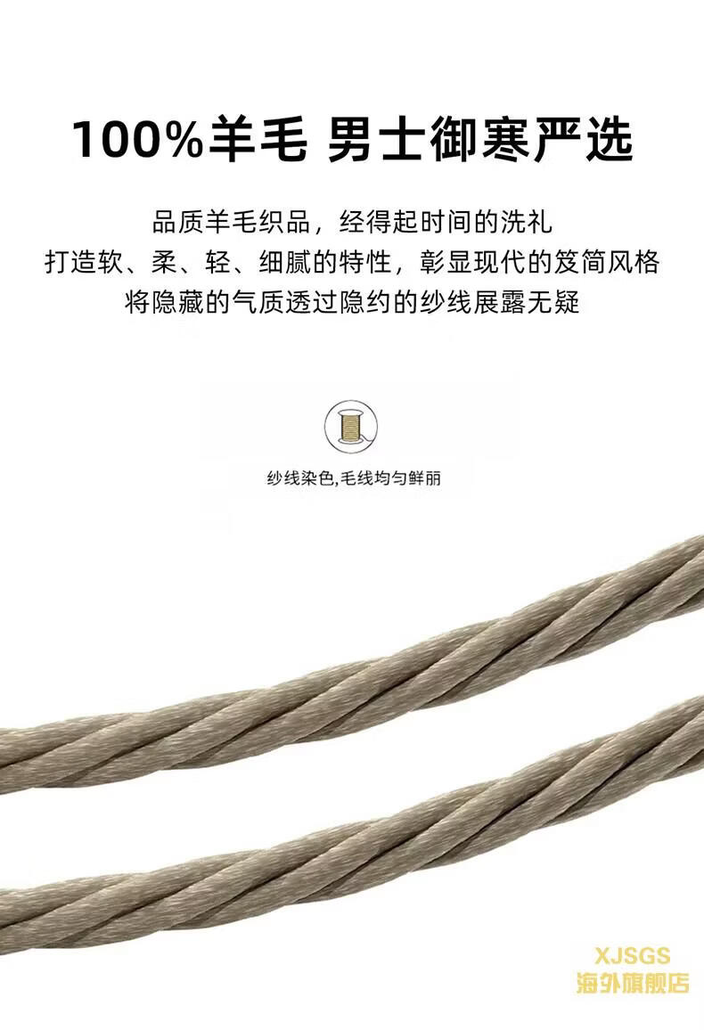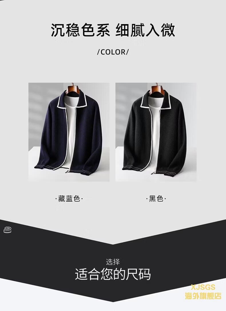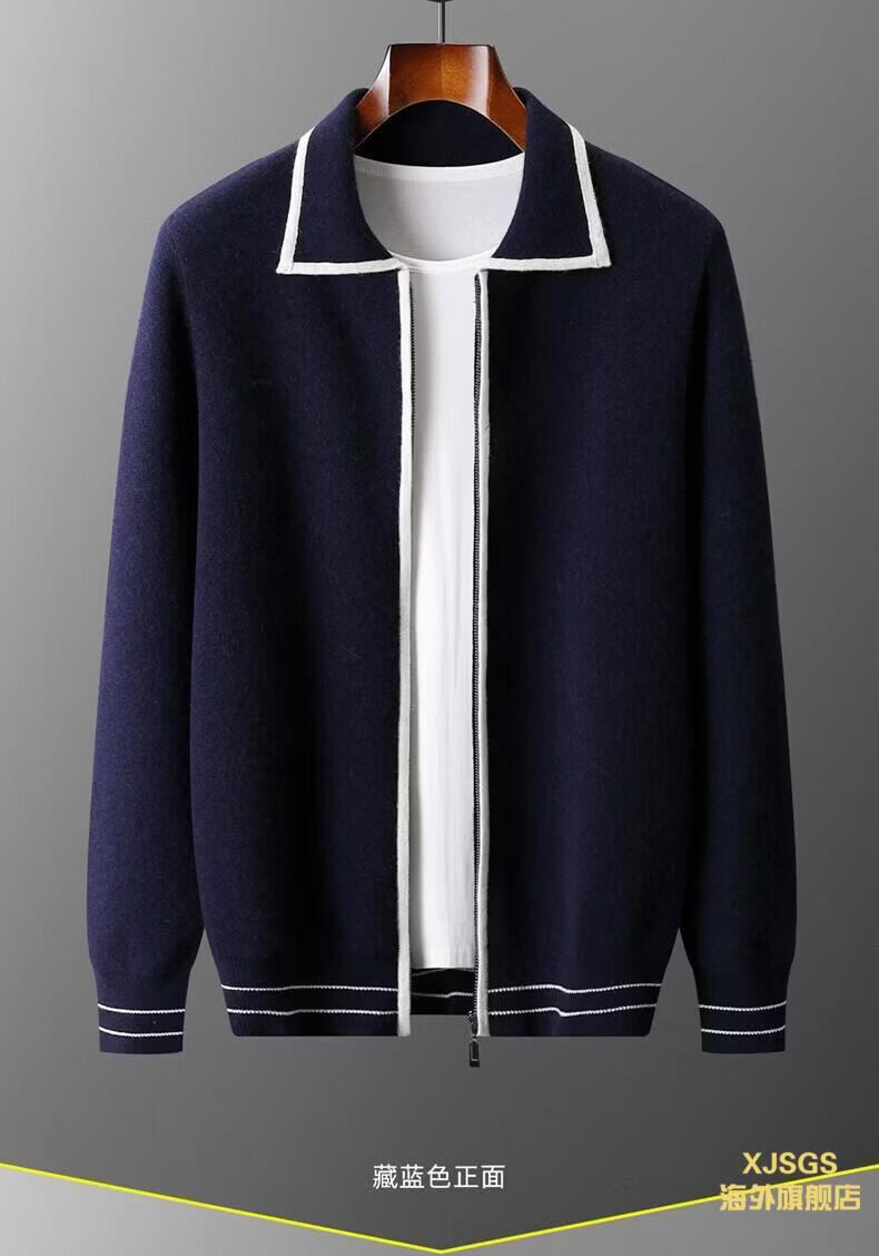 XJSGS international luxury high-end brand men's pure wool knitted bottoming shirt autumn and winter thickened lapel casual sweater high-end black men's brand winter style S