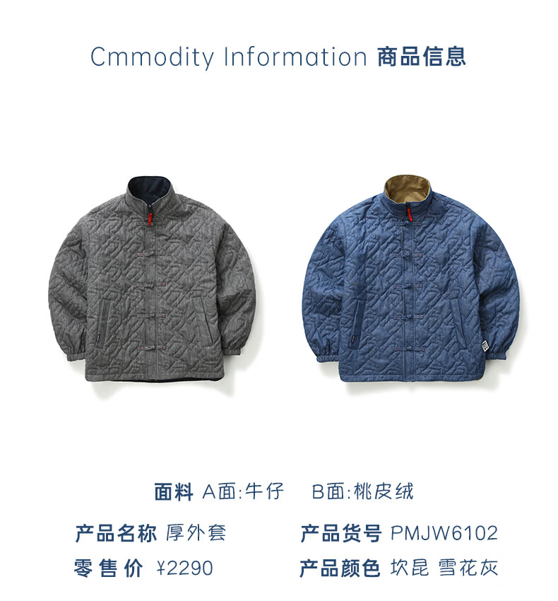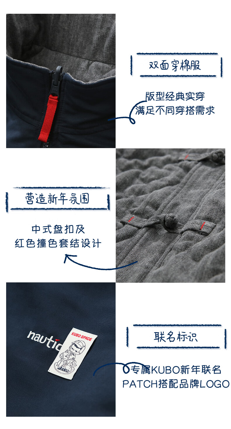 Nautica white sail white sail Bubble Mart joint Chinese style disc buckle reversible coat cotton jacket PMJW6102 Cancun L