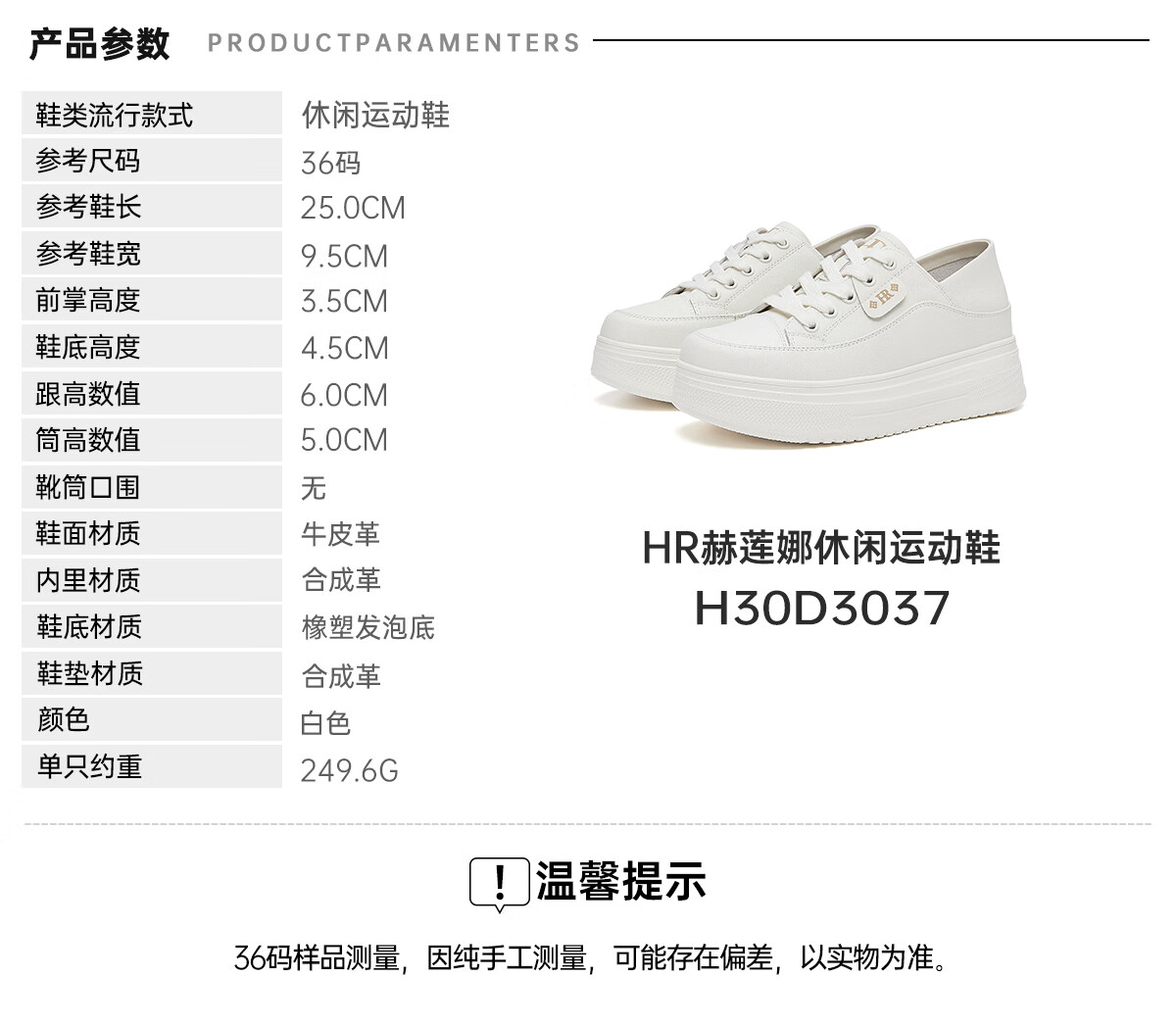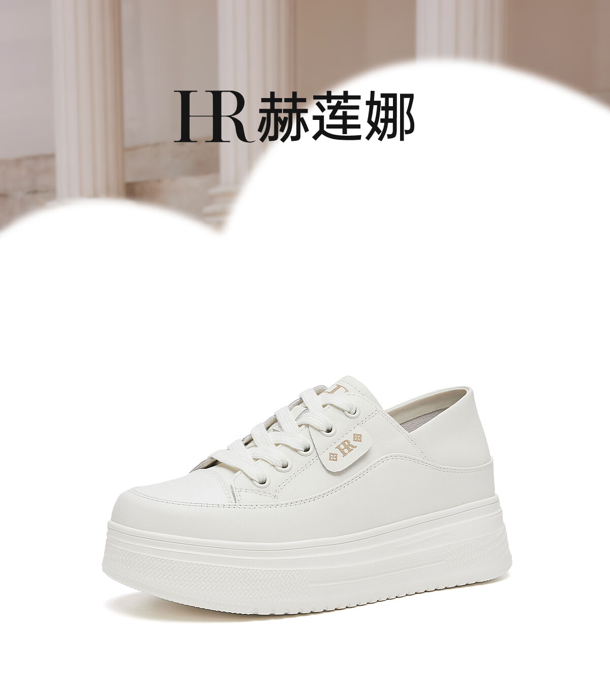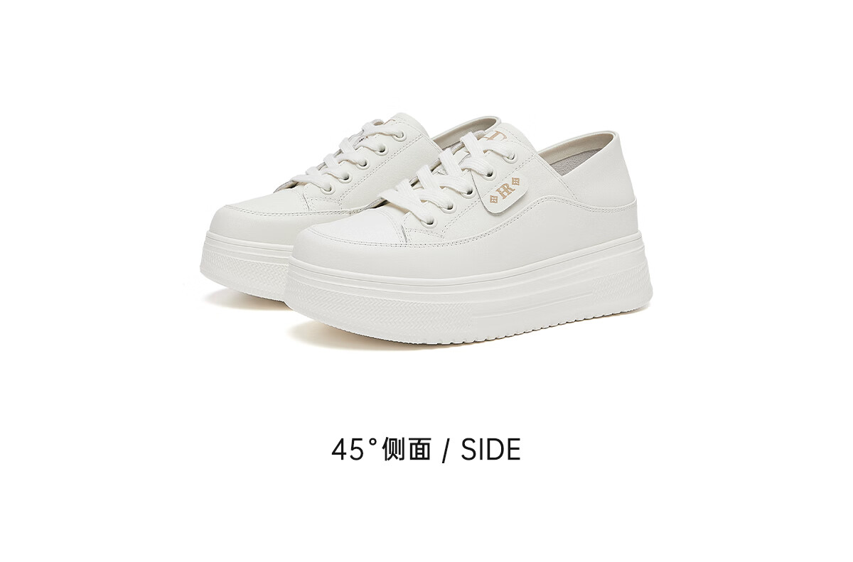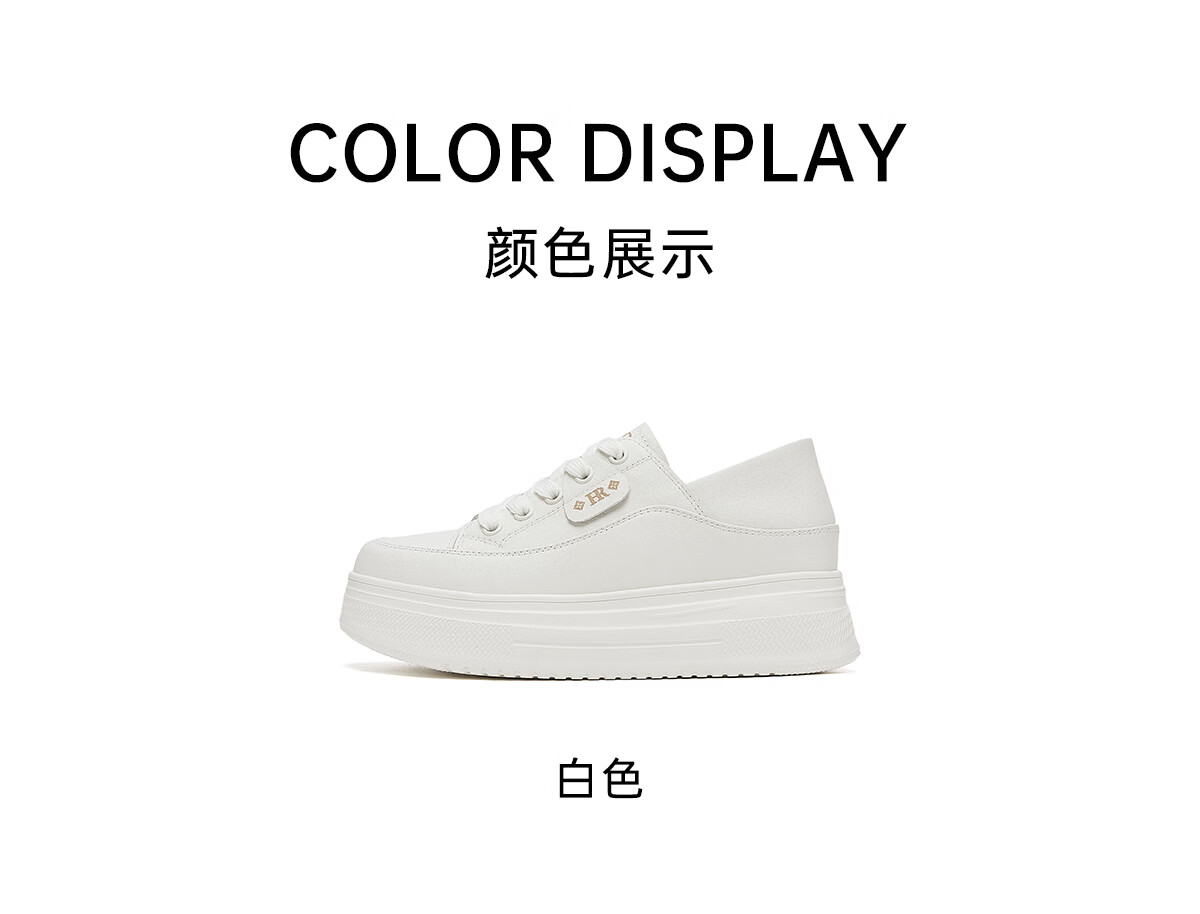 HR Helena women's shoes 2025 winter new thick sole heightening casual white shoes round toe laces comfortable and versatile white 35
