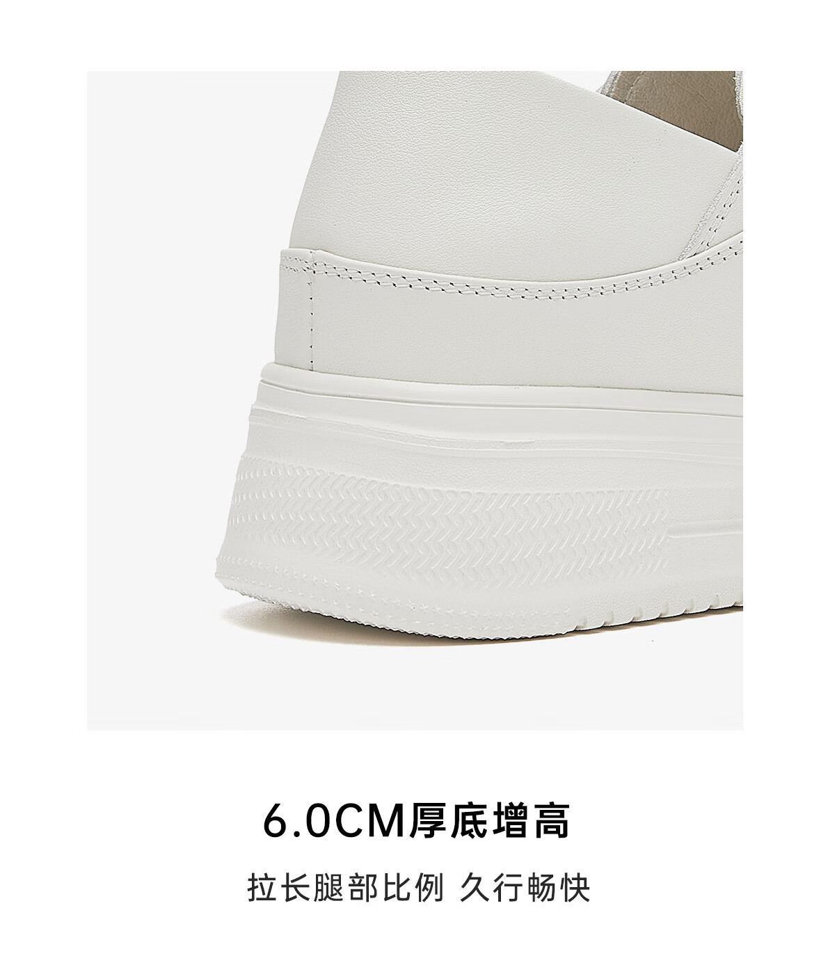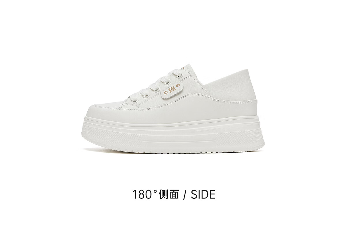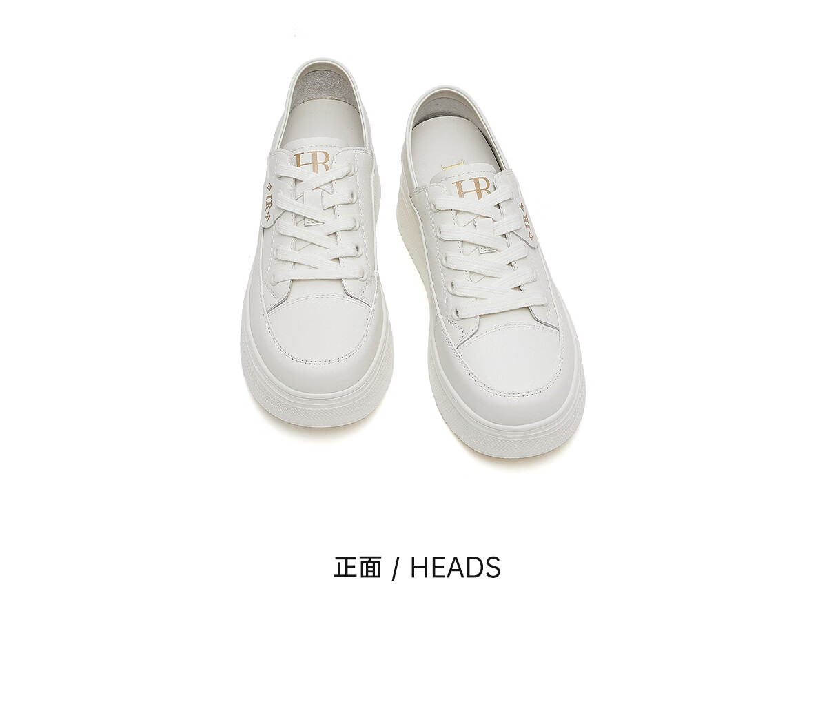 HR Helena women's shoes 2025 winter new thick sole heightening casual white shoes round toe laces comfortable and versatile white 35