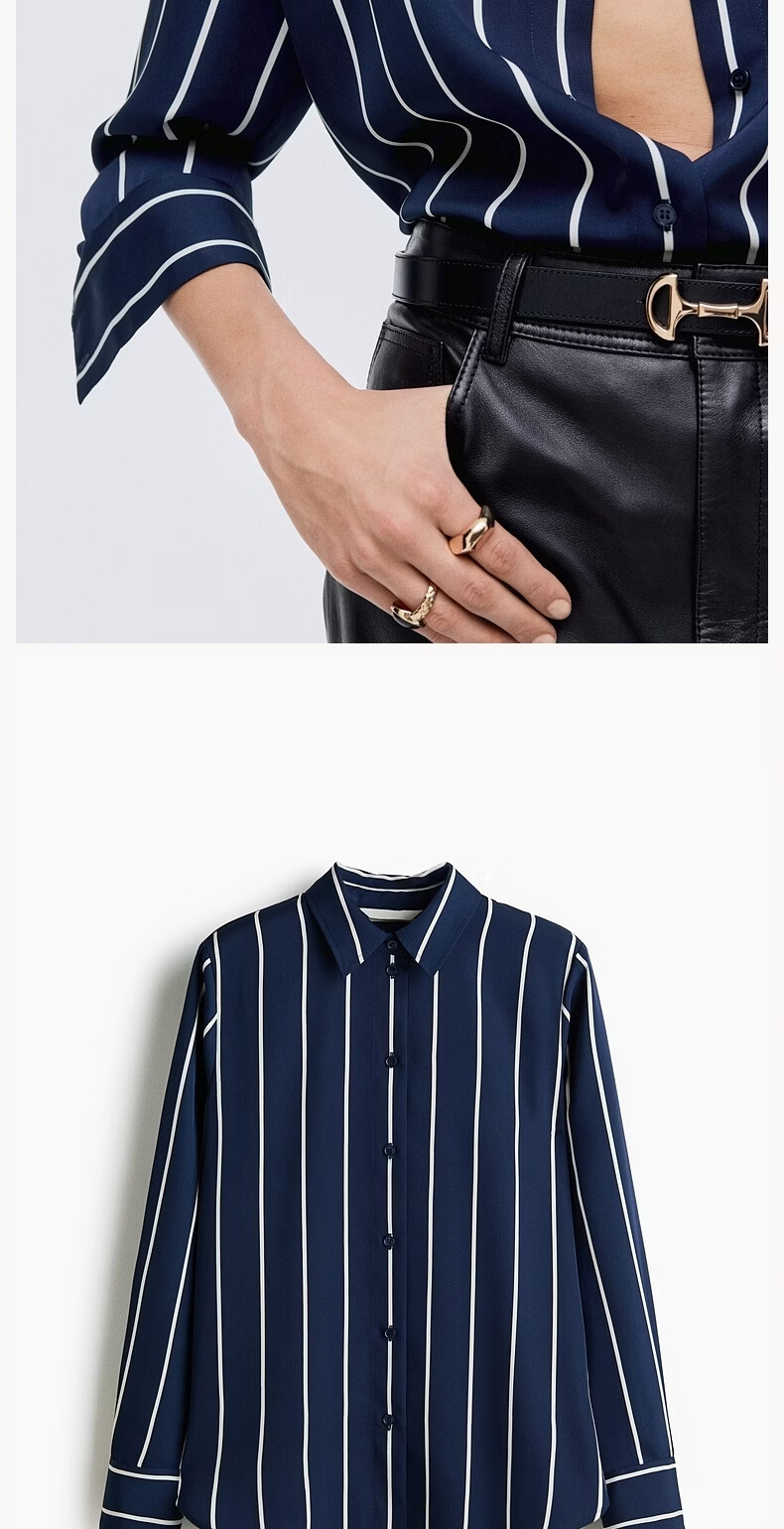 H&M 2026 Spring New Women's Shirt 1220978 Beige/Stripes XXS 150/76