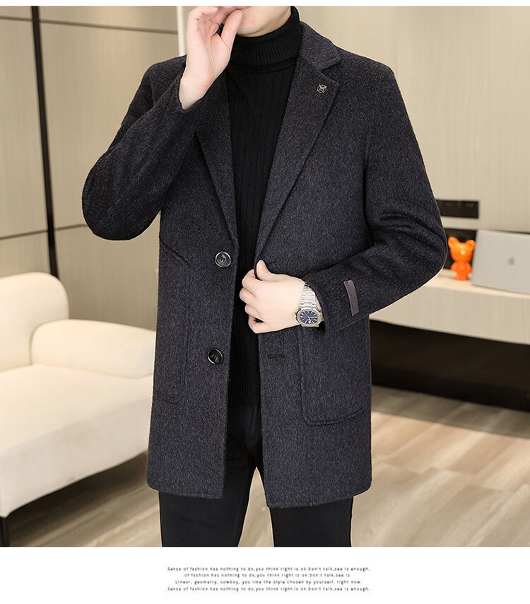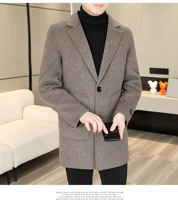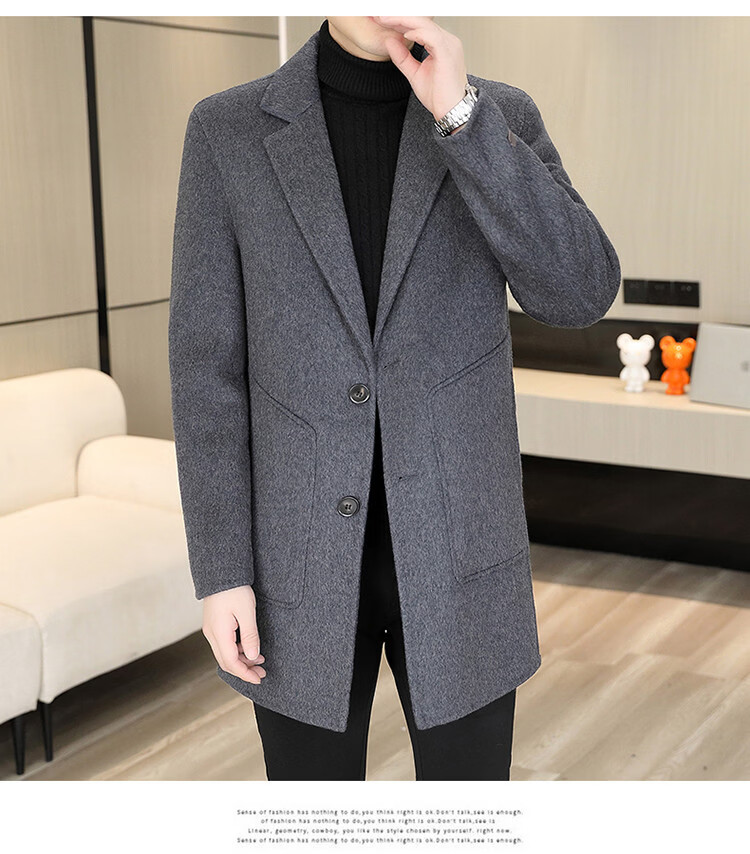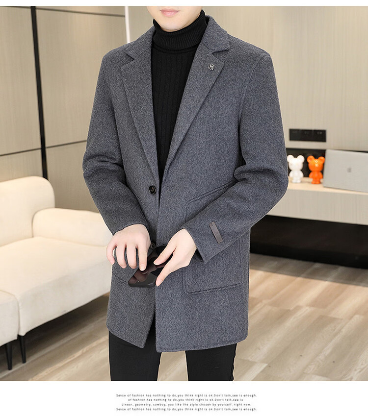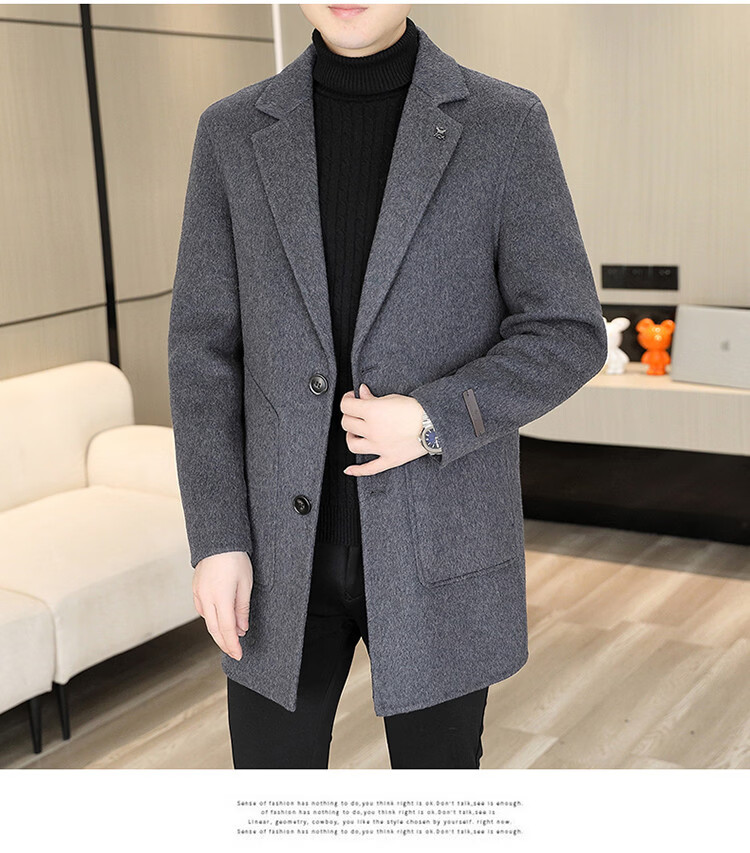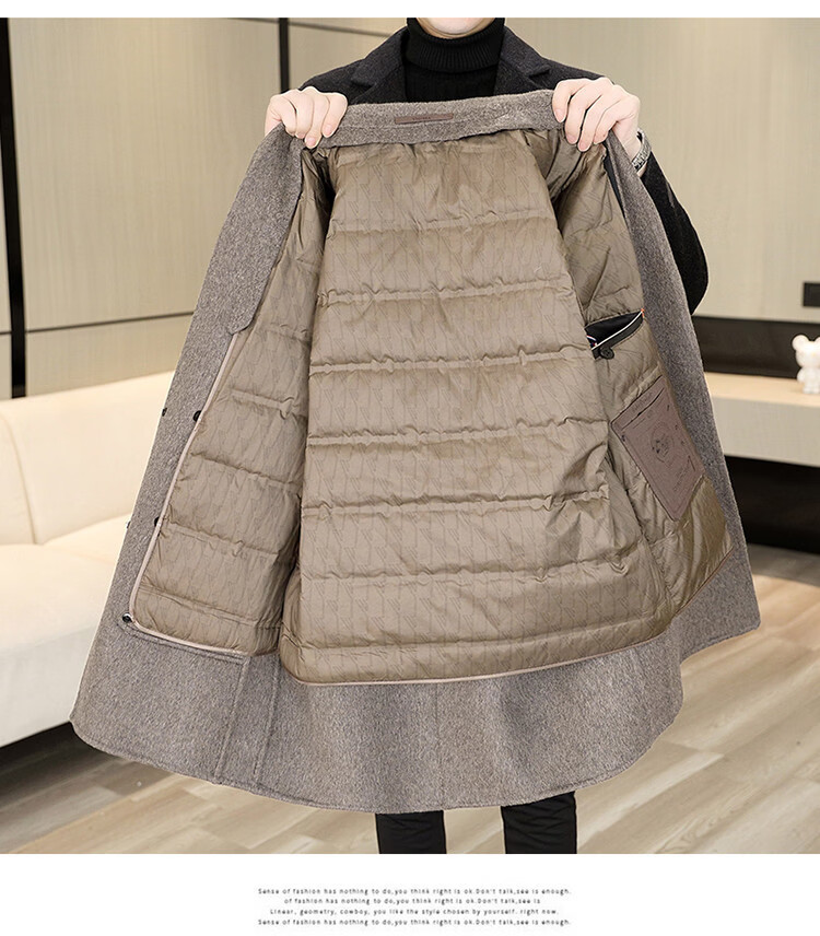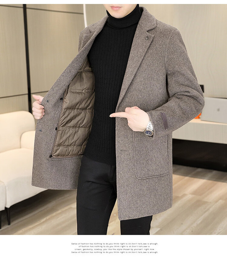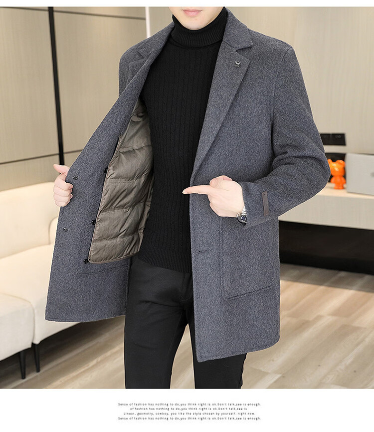 Hengyuanxiang Men's Wool Wool Coat Winter Men's Suit Collar Mid-Length Down Liner Wool Wool Wool Coat Men's Gray M