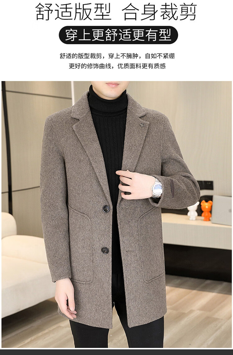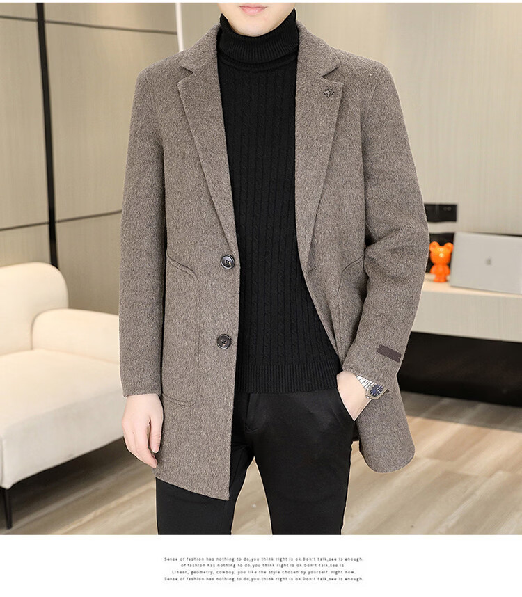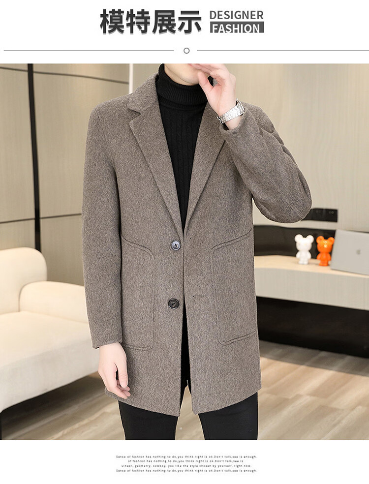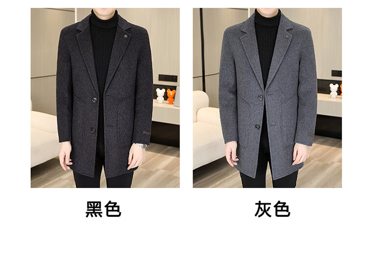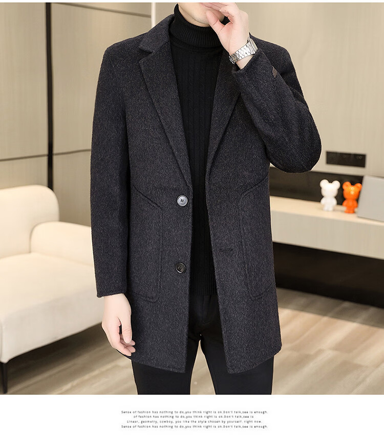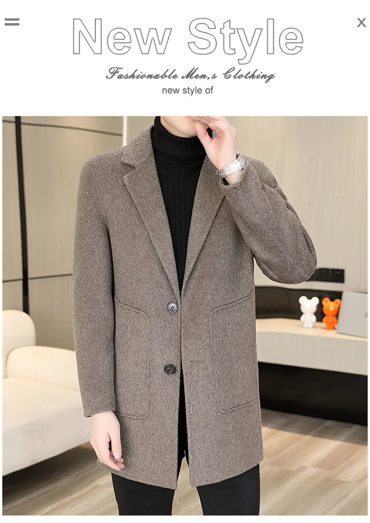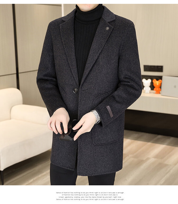 Hengyuanxiang Men's Wool Wool Coat Winter Men's Suit Collar Mid-Length Down Liner Wool Wool Wool Coat Men's Gray M