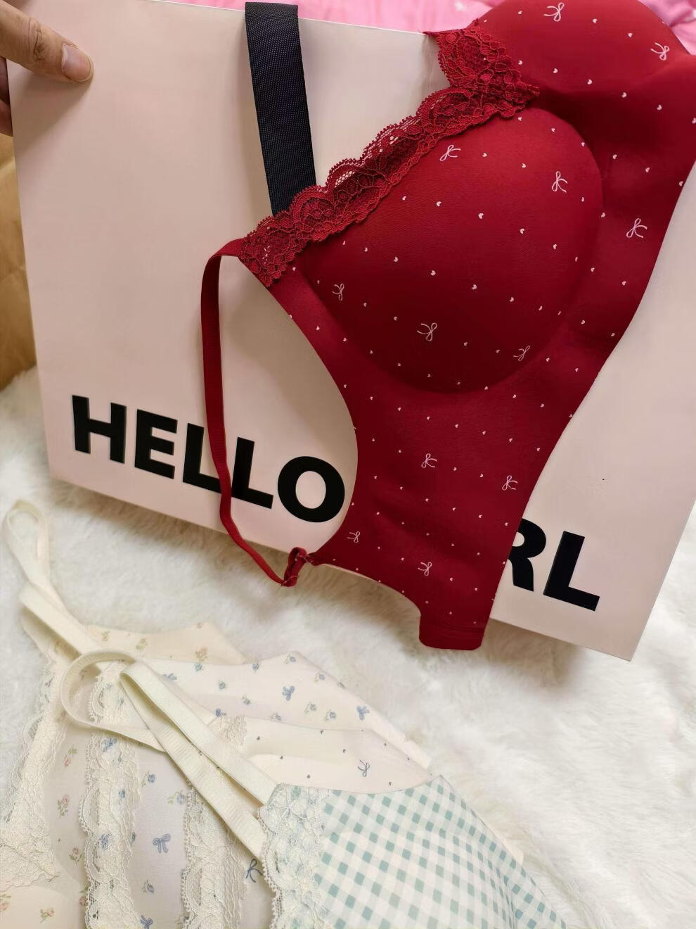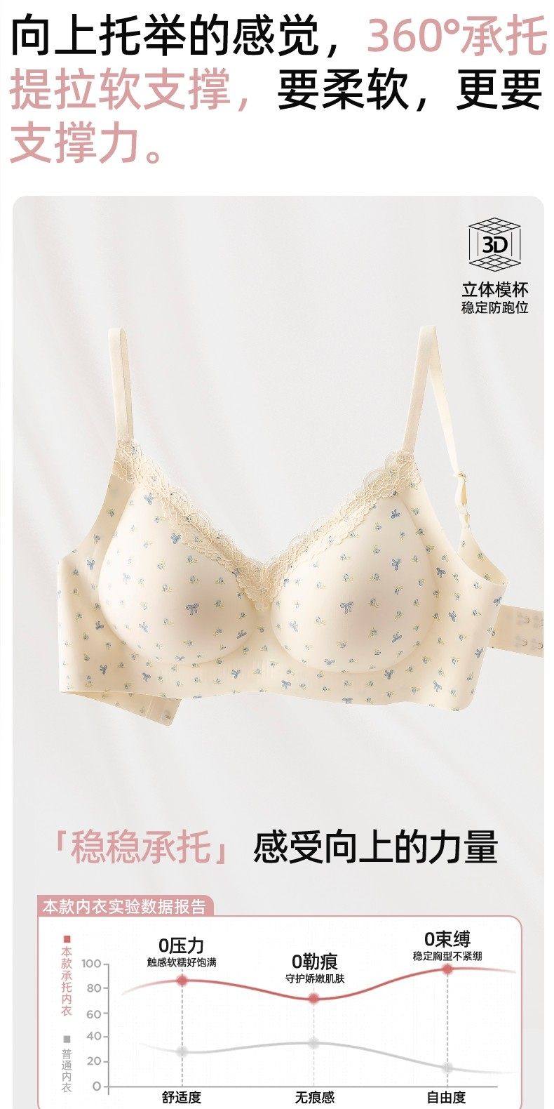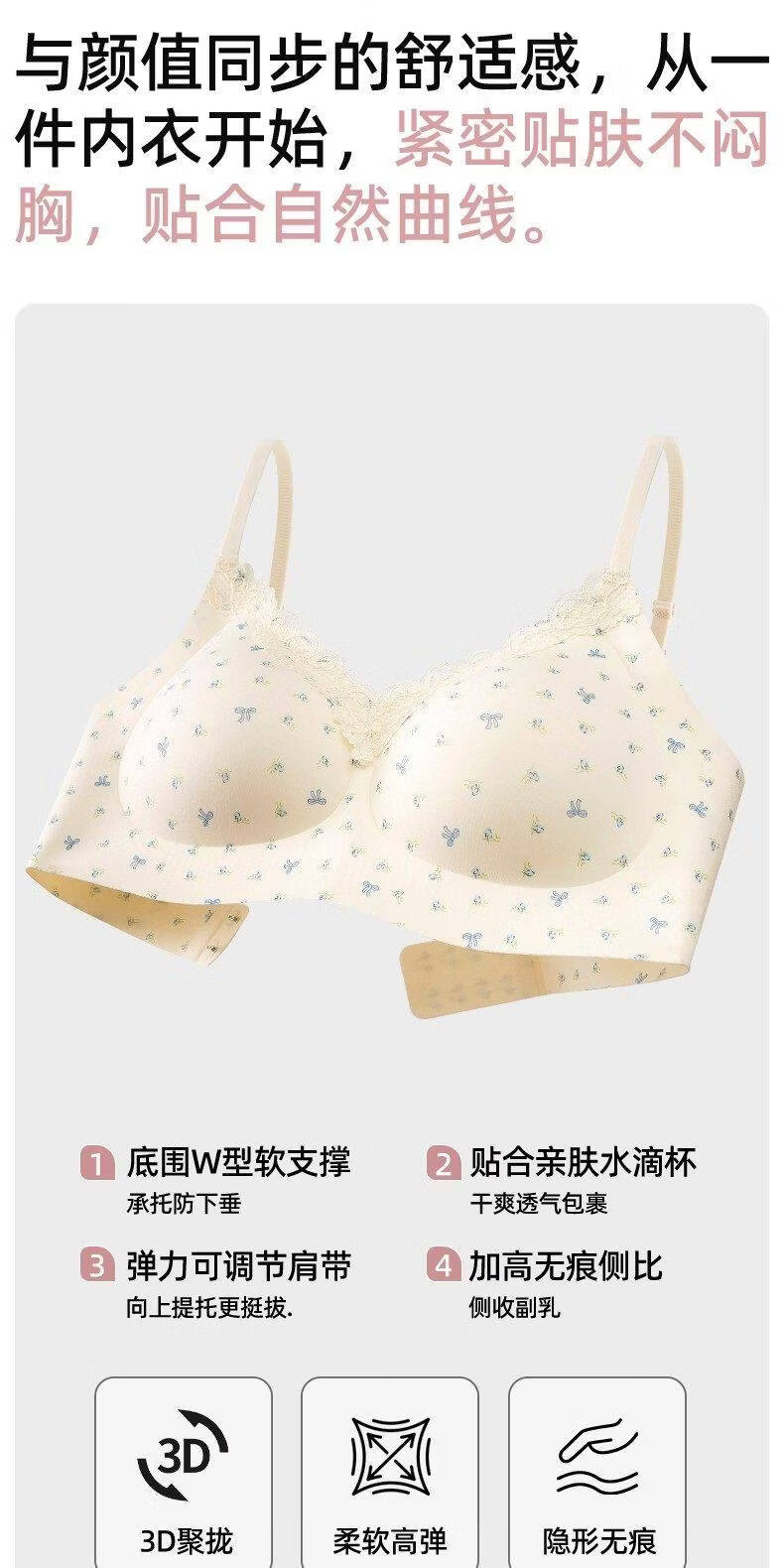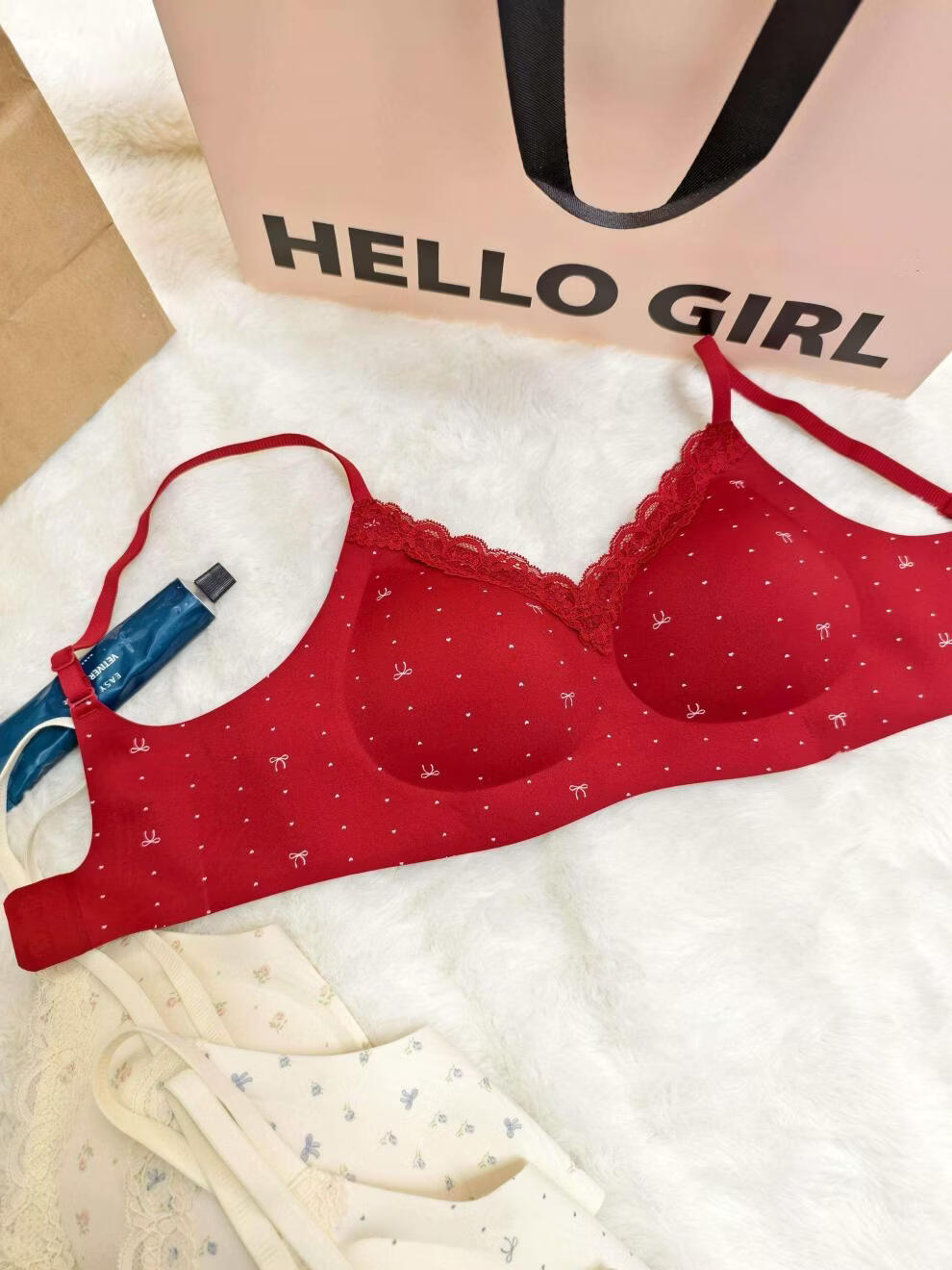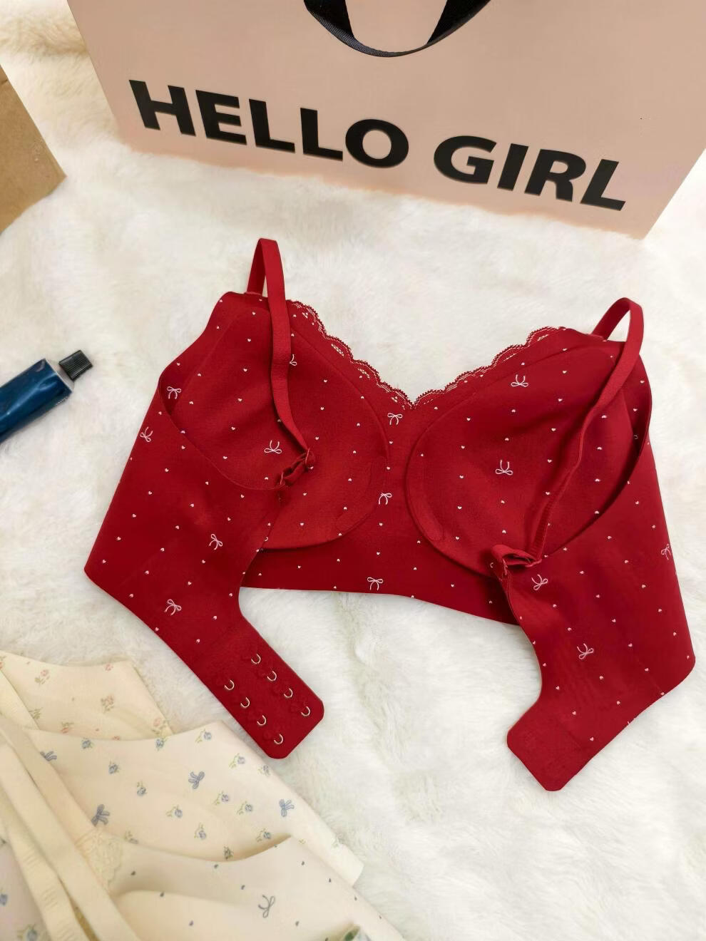 LangSha (LangSha) natal underwear for women with small breasts gathered in the Year of the Horse, seamless breast reduction bra, wedding bride, New Year red bra, no steel rims, blue flower single piece 2XL recommended 40/90ABC 130-145Jin Jin is equal to 0.5 kg