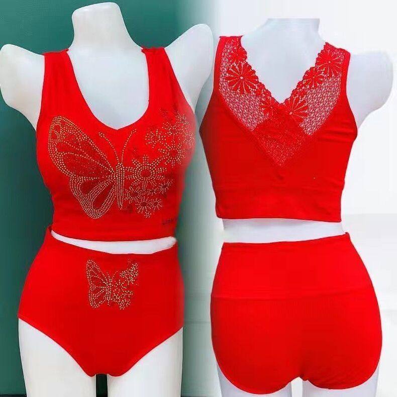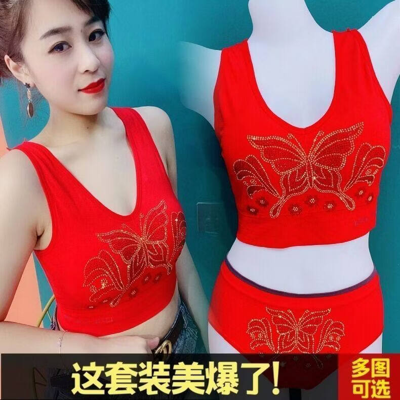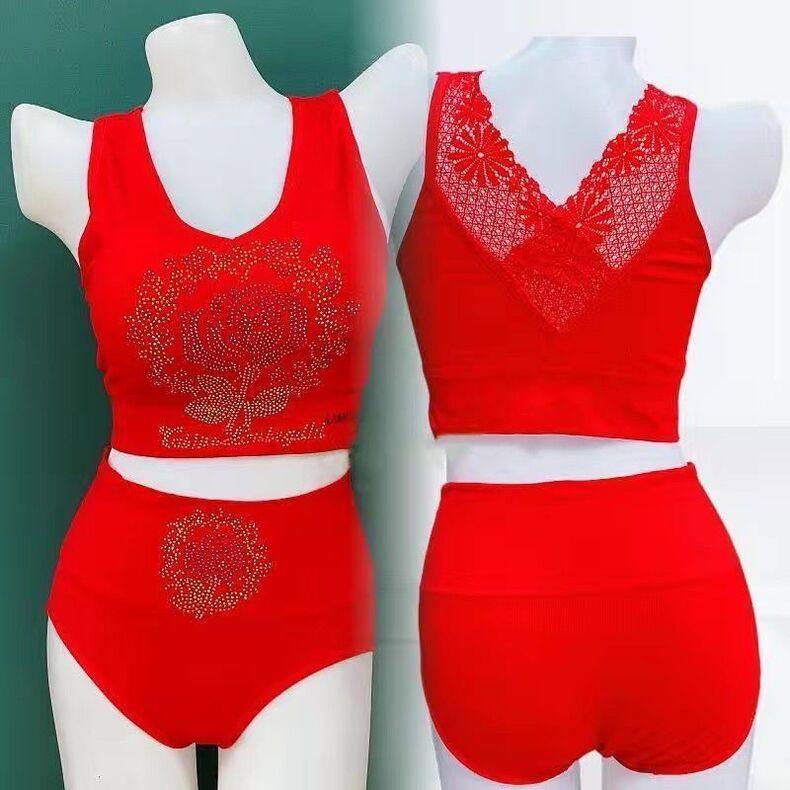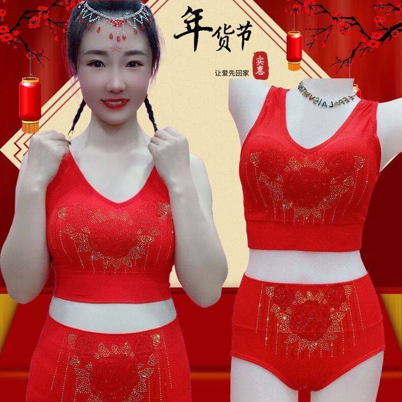 LangSha (LangSha) Zodiac Year Underwear Set Wedding Happy New Year Red Bright Diamond Beautiful Back Underwear Women's Wireless Wrap Bra Get Rich Overnight Set L Large Size 130-180Jin Jin is equal to 0.5 kg