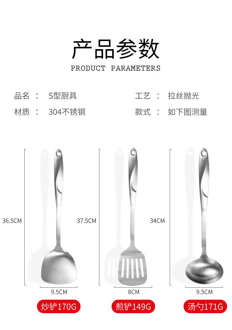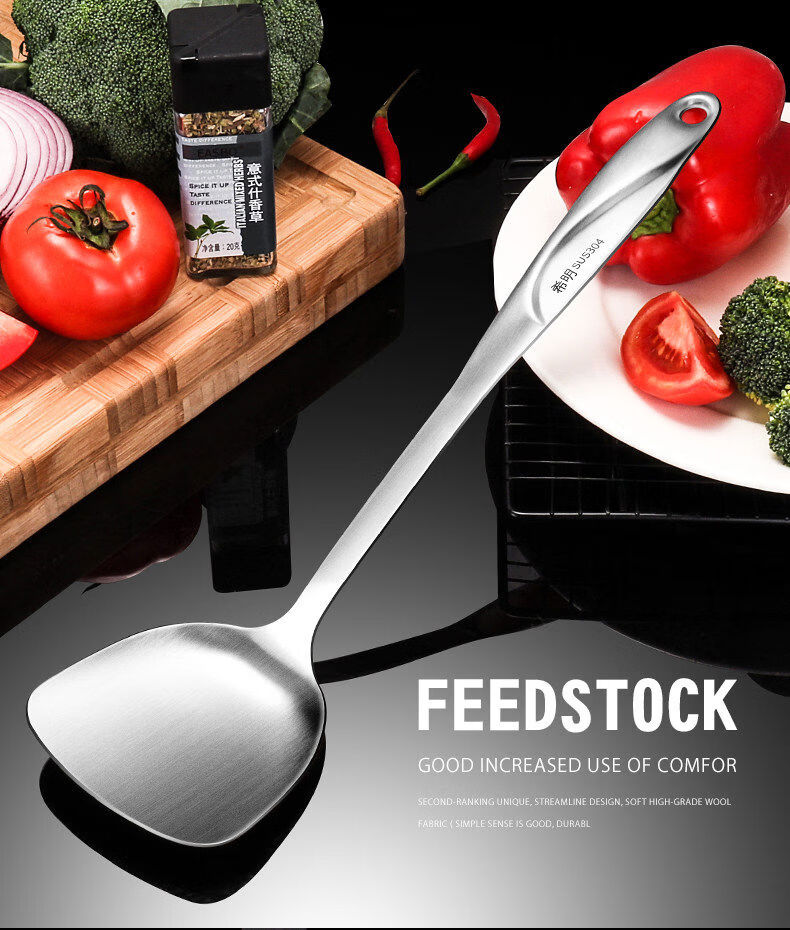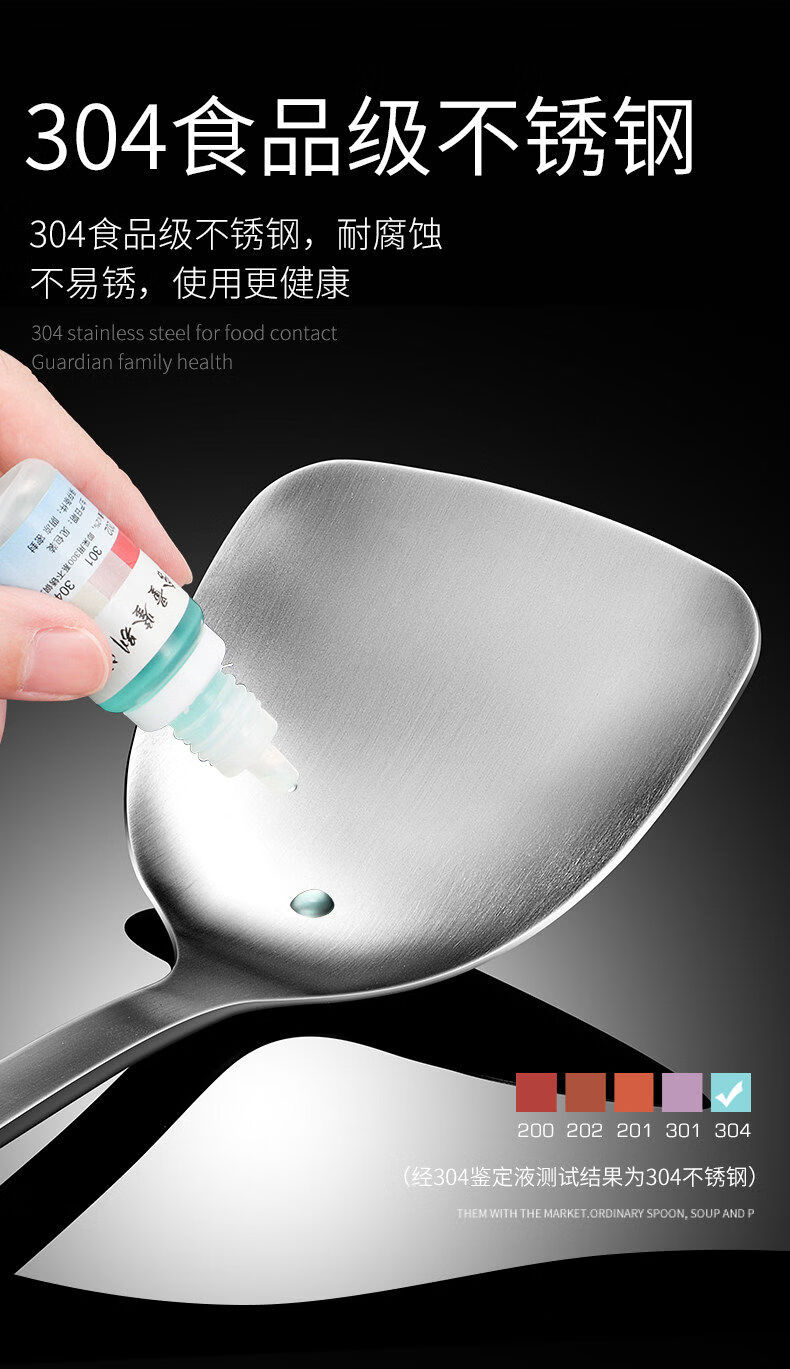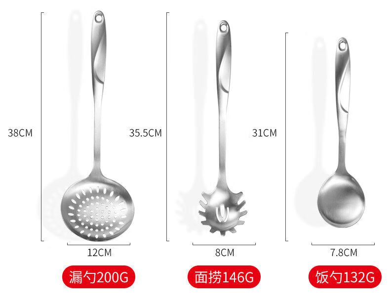 Yong Huan thickened 304 stainless steel spatula, cooking shovel, frying spatula, soup spoon, colander, kitchen utensil set, full set for home use, 7-piece set 304 steel spatula + soup spoon + colander + frying spatula + noodle + rice spoon + kitchen utensil rack