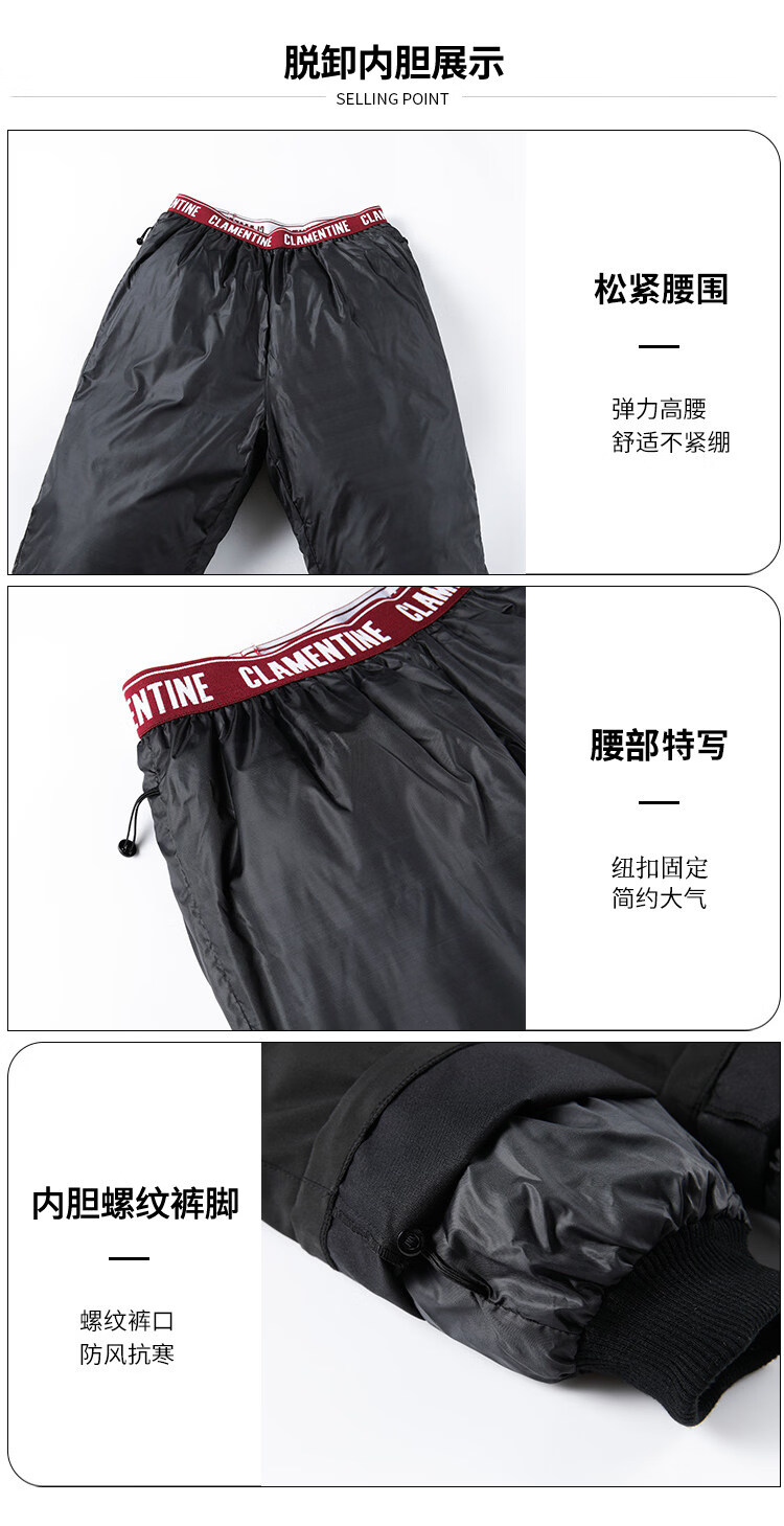 Woodpecker goose down pants for women with removable inner liner, thickened high-waisted windproof and waterproof outdoor sports down pants for women, thin black = removable inner liner, removable version, thin XL for women, recommended 125-140 Jin Jin equals about 0.5 kg