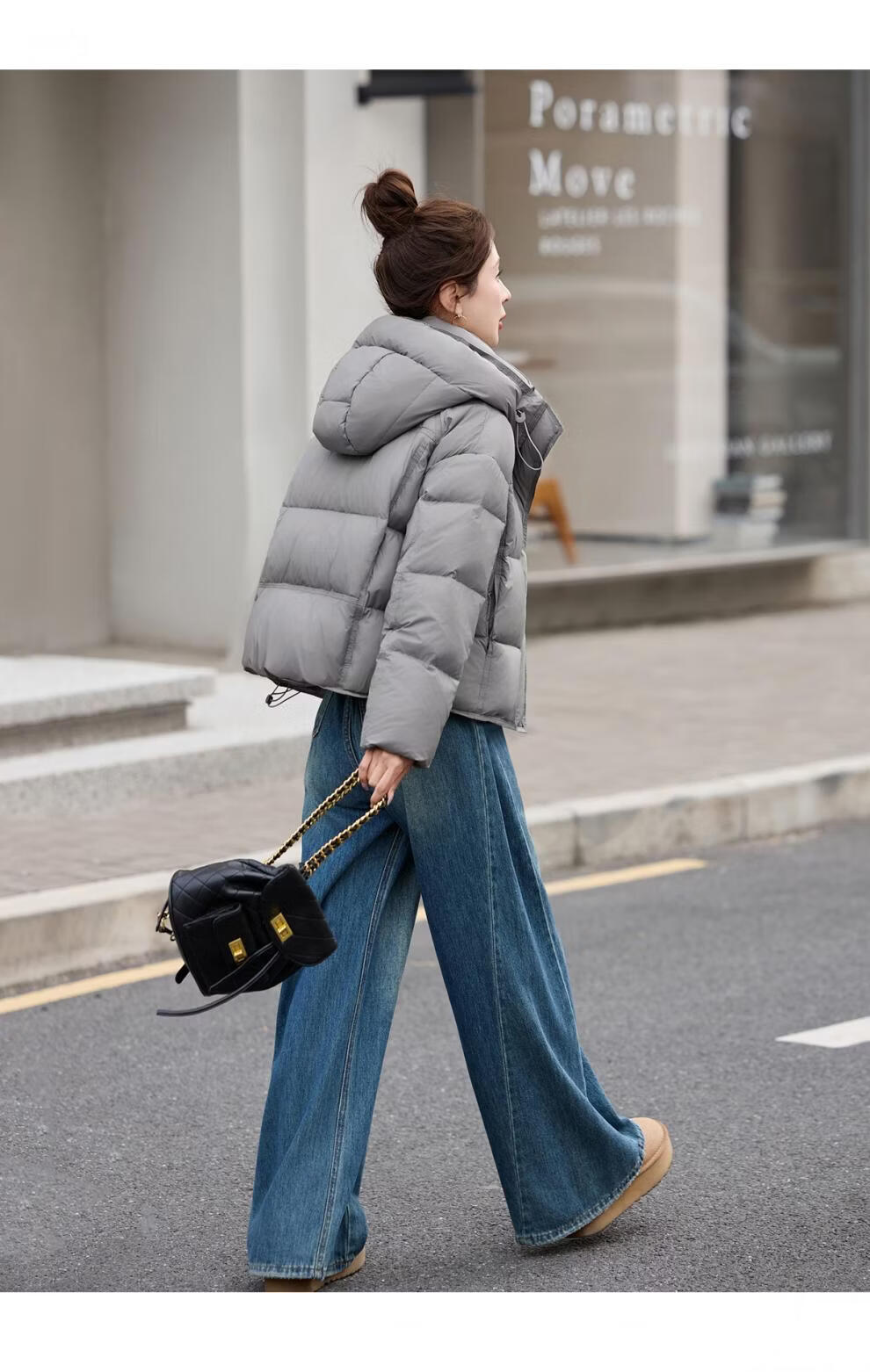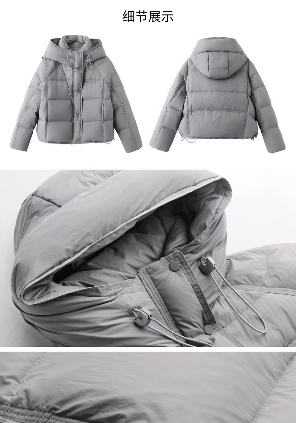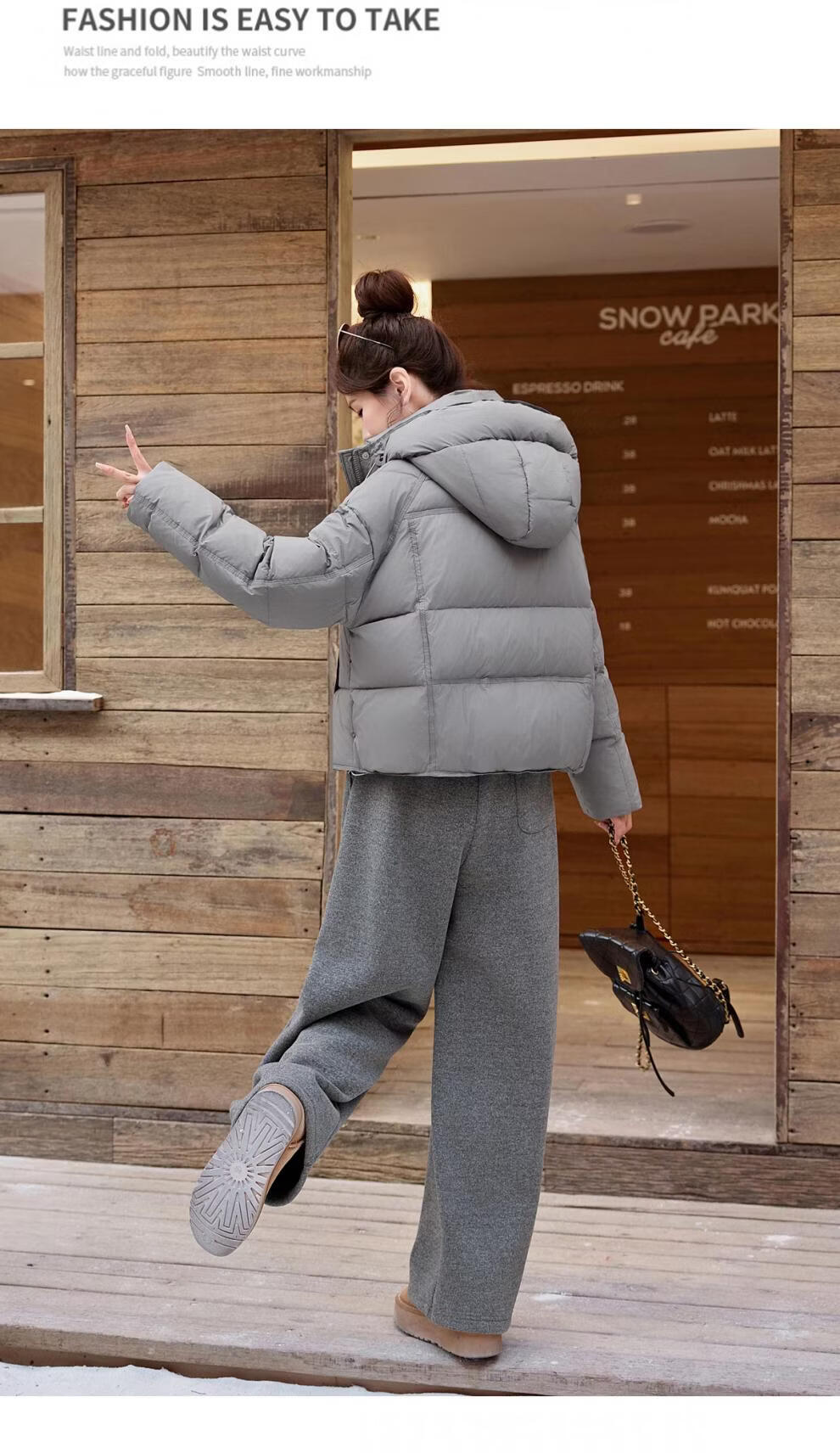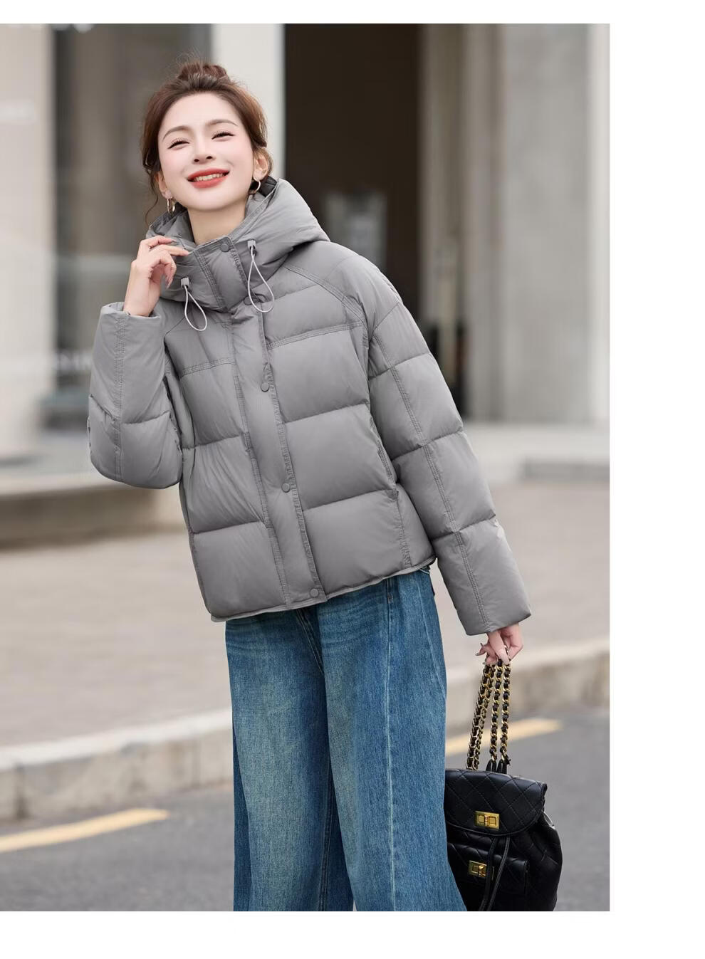 Woodpecker hooded short down jacket for women winter 2025 new style small high-end fashion style thickened white duck down jacket light gray thin S