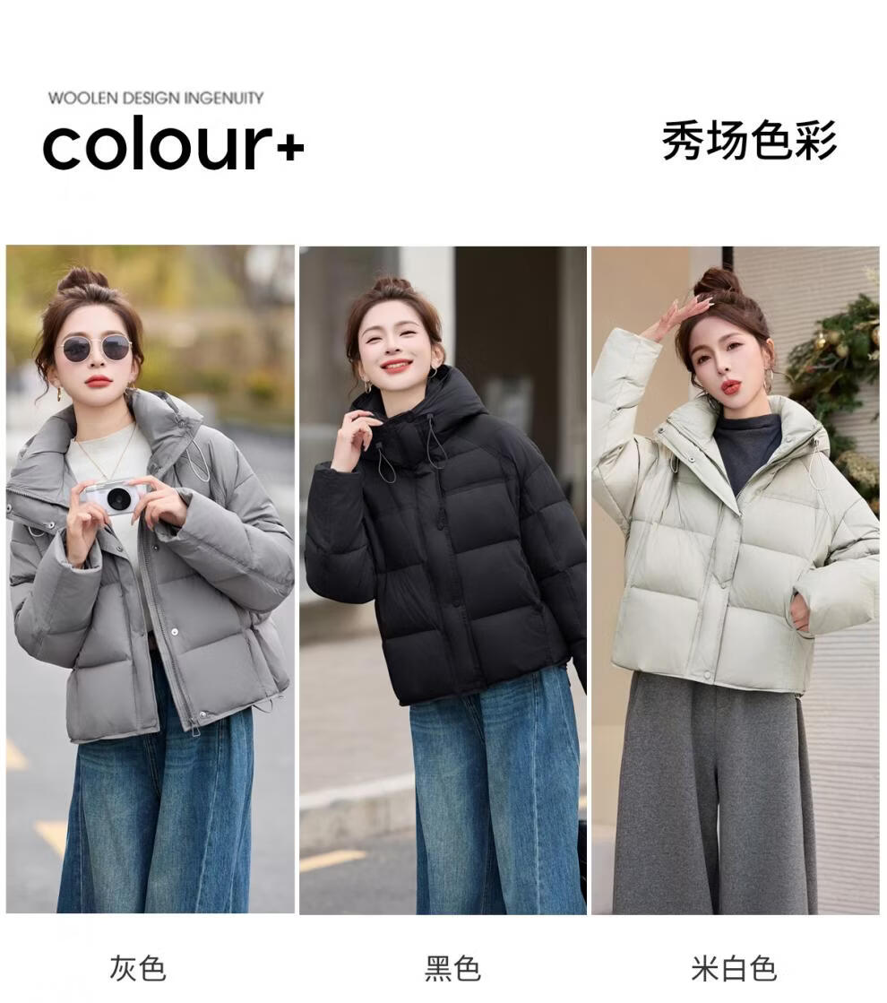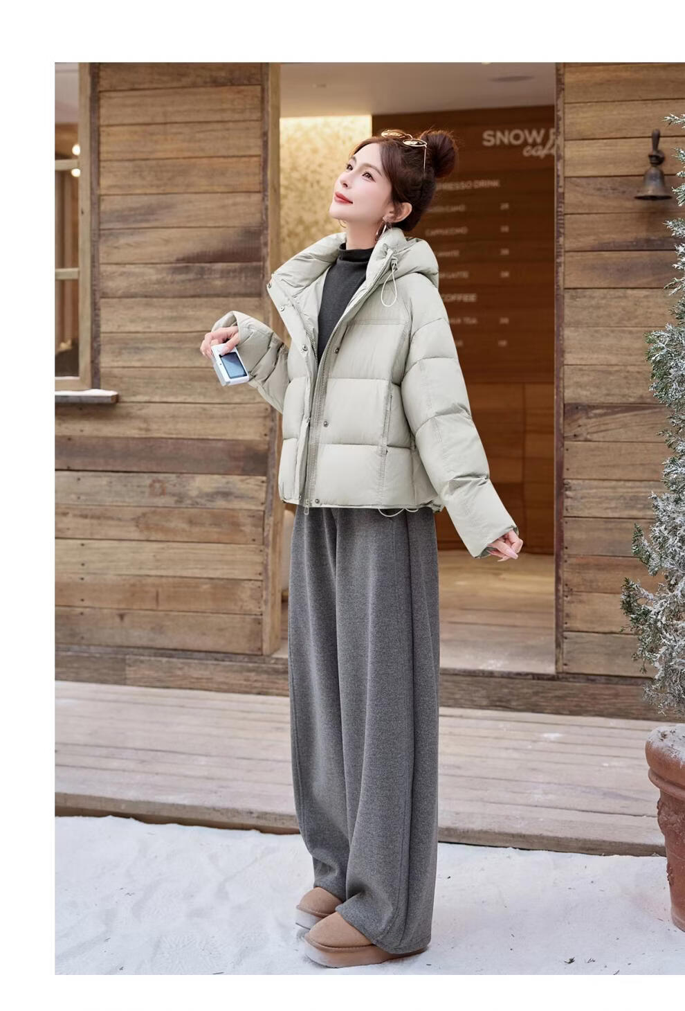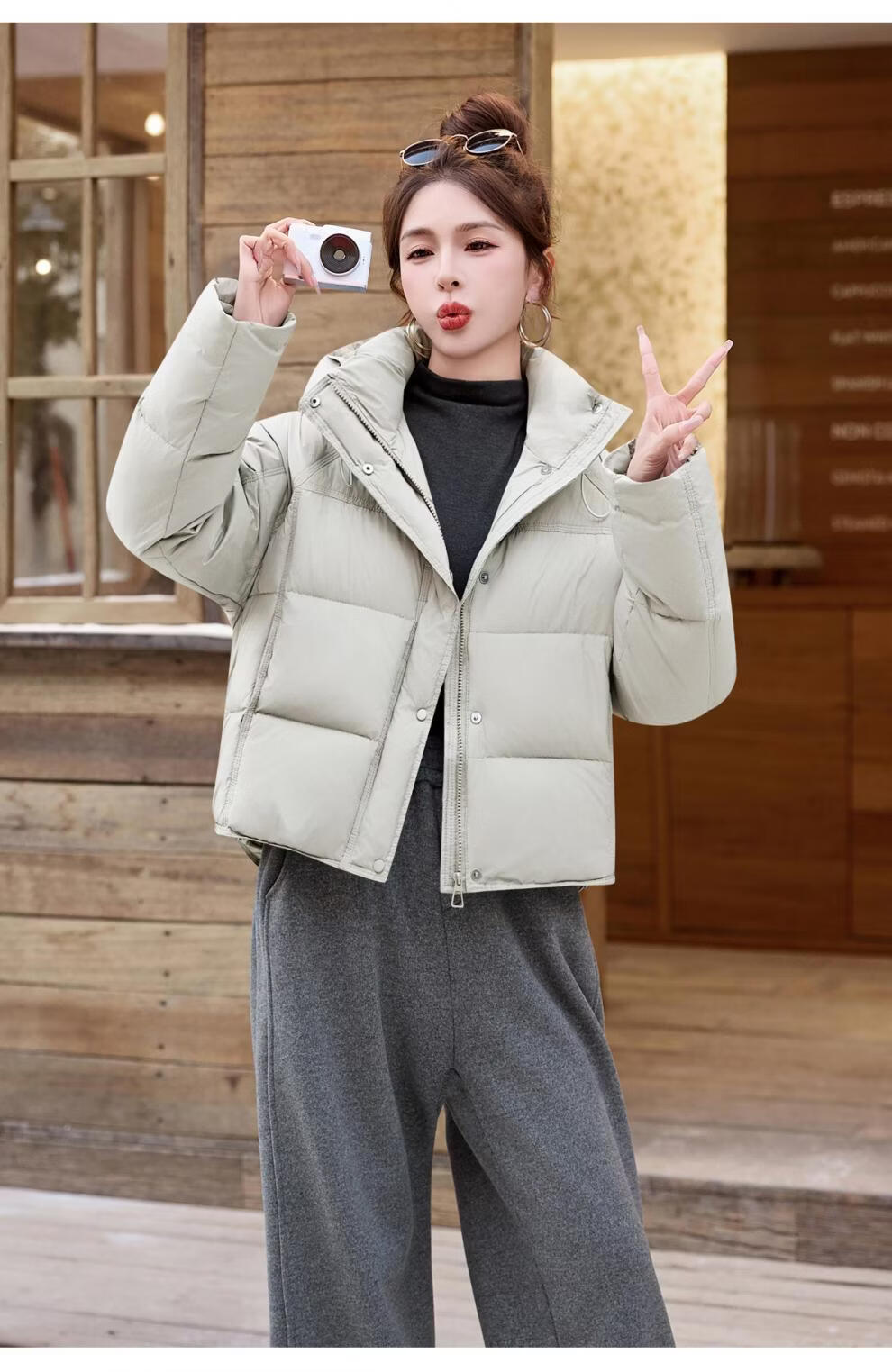 Woodpecker hooded short down jacket for women winter 2025 new style small high-end fashion style thickened white duck down jacket light gray thin S