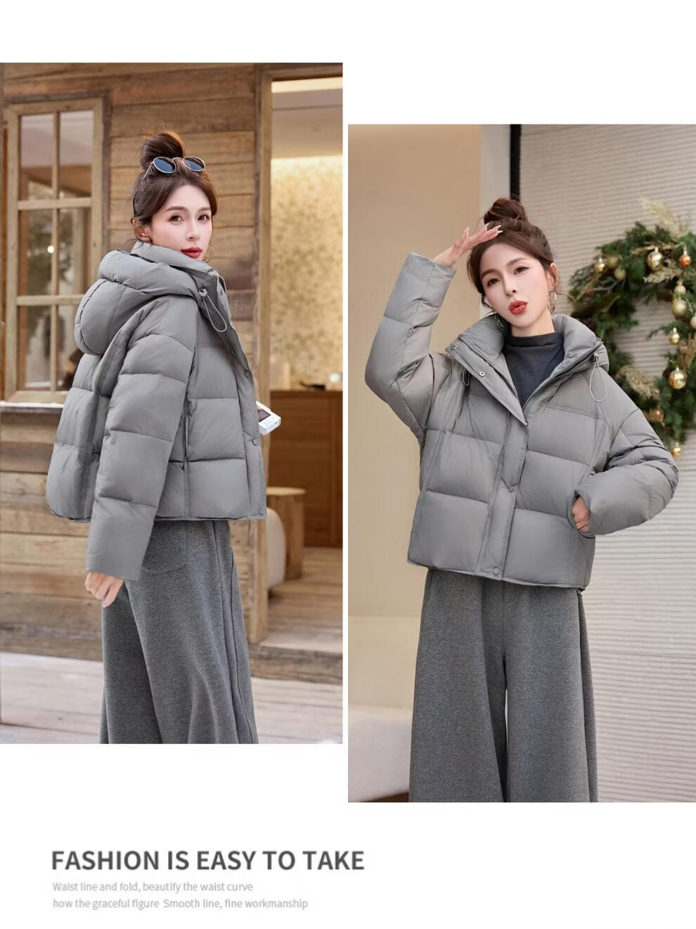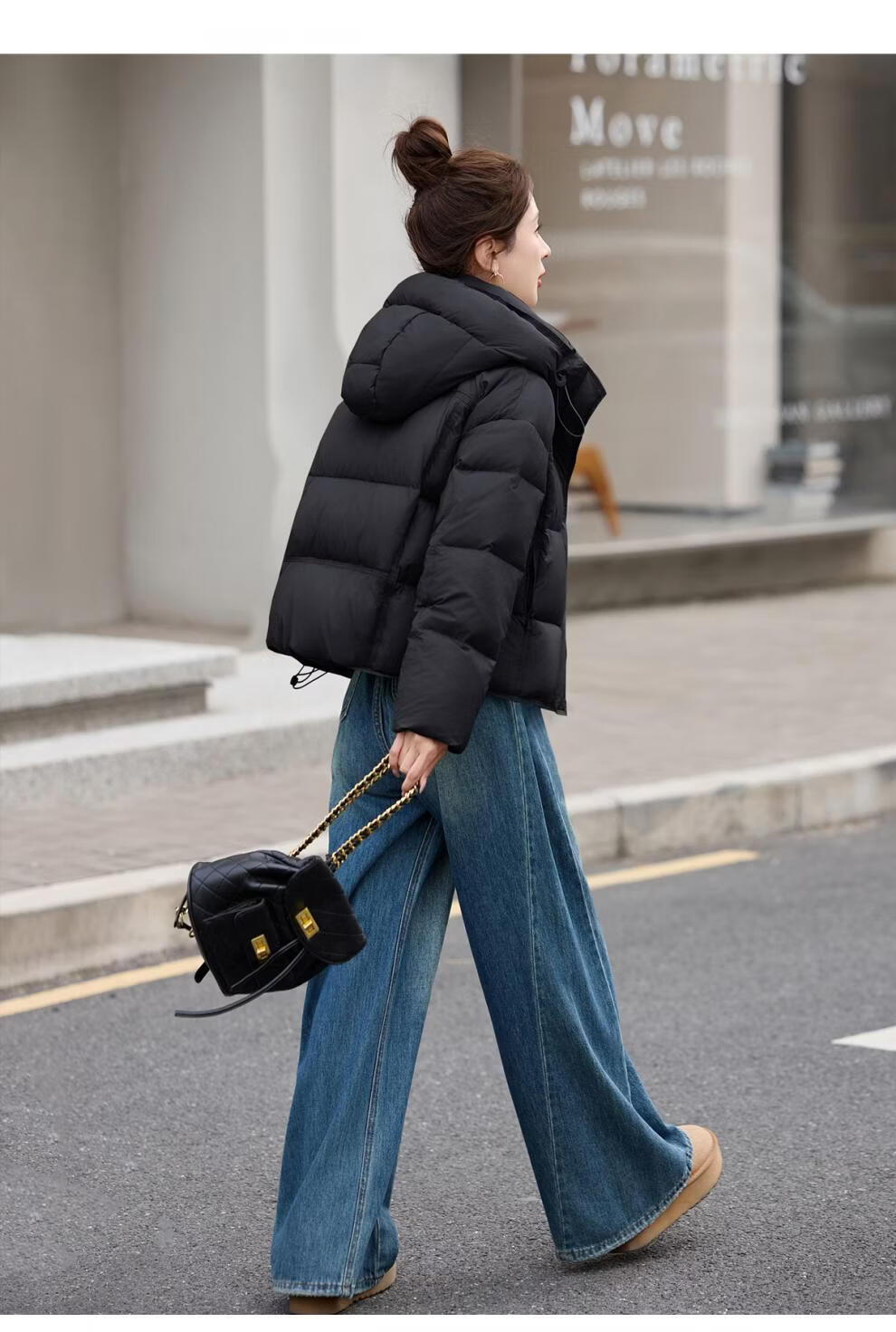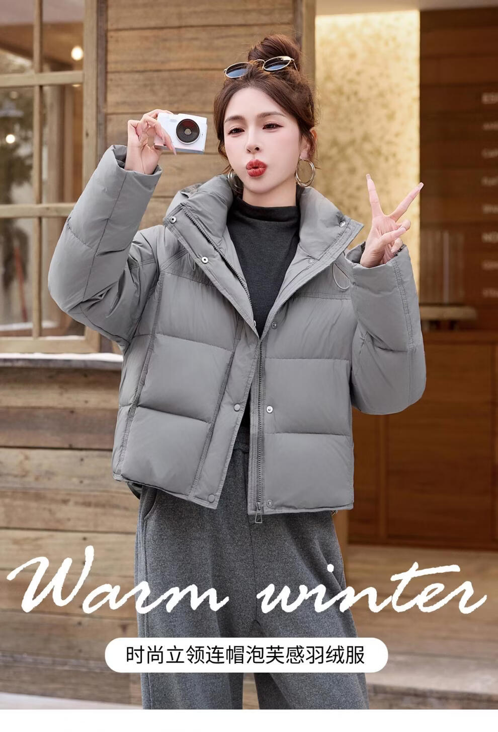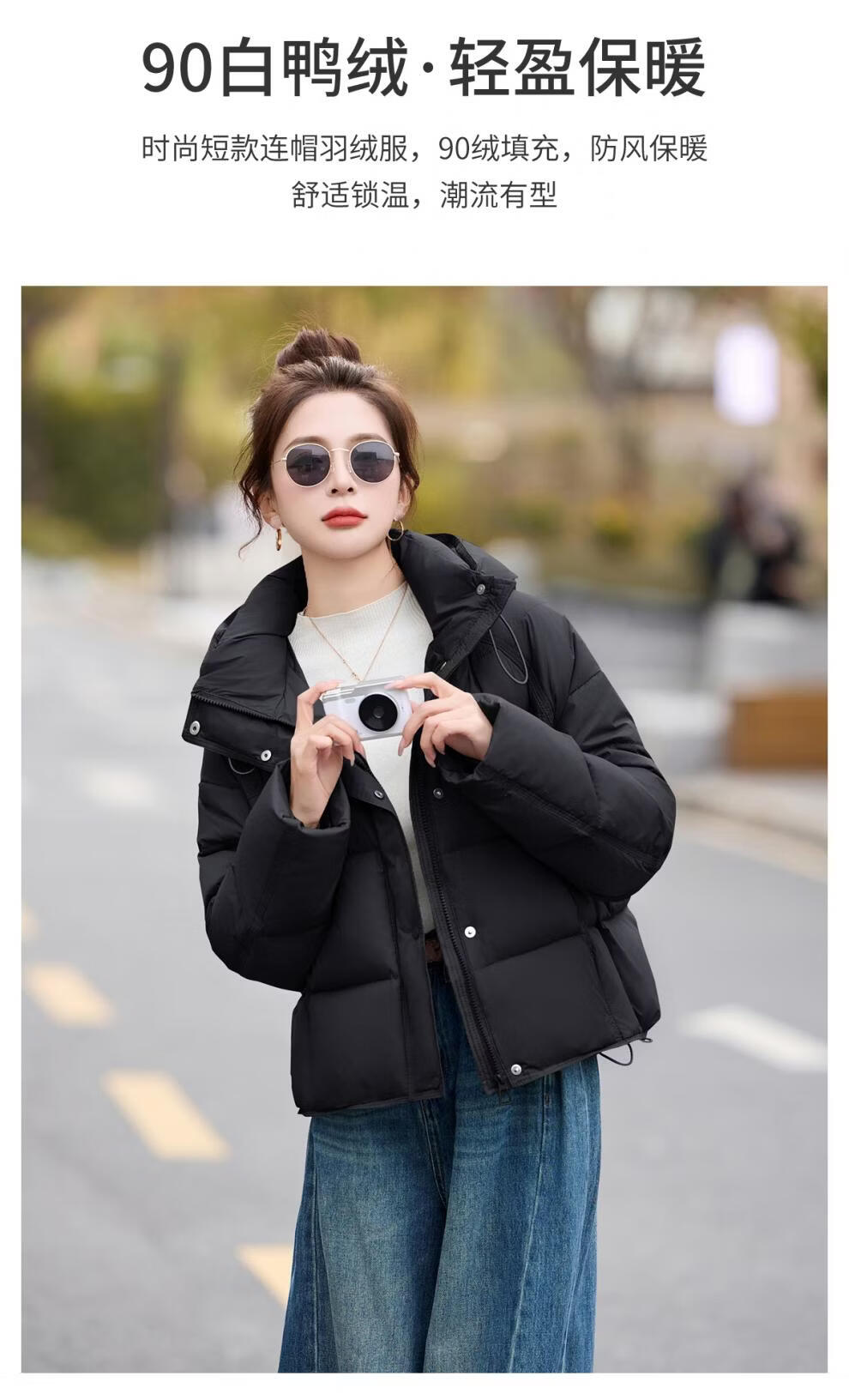 Woodpecker hooded short down jacket for women winter 2025 new style small high-end fashion style thickened white duck down jacket light gray thin S