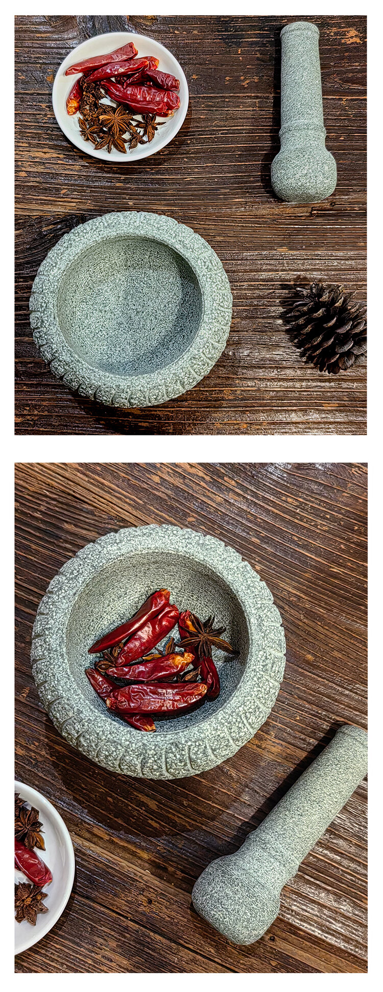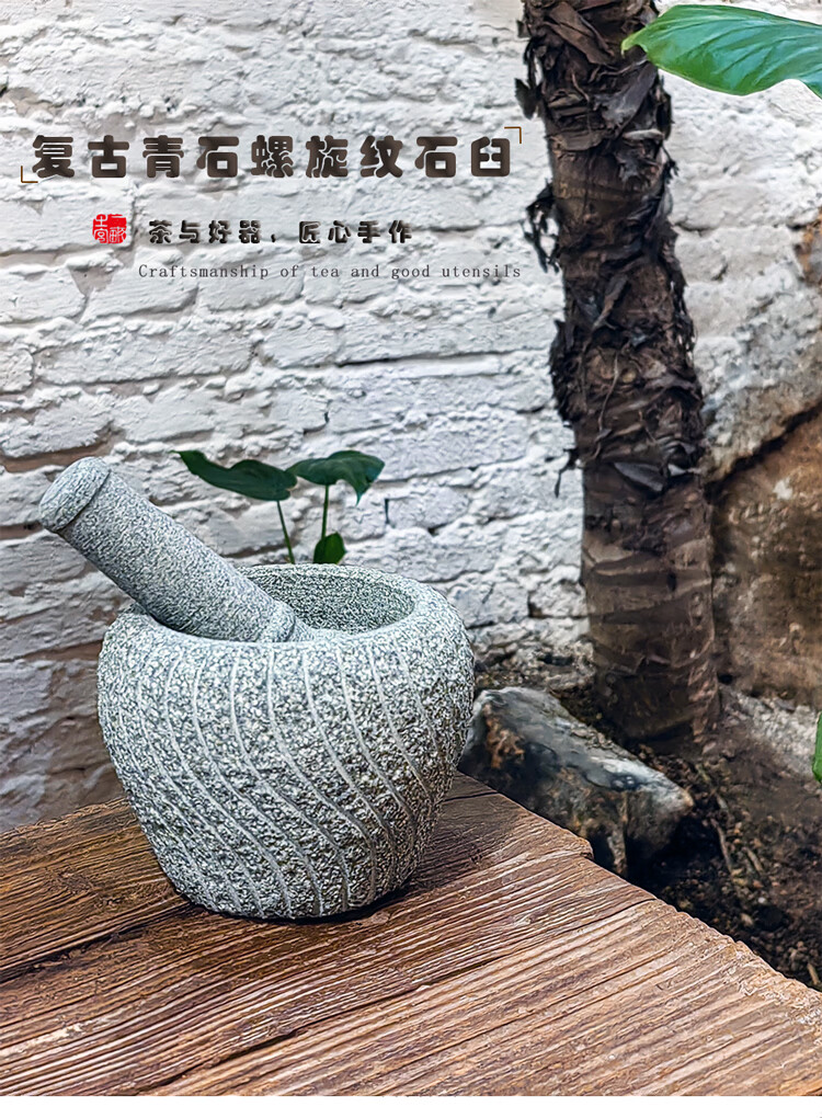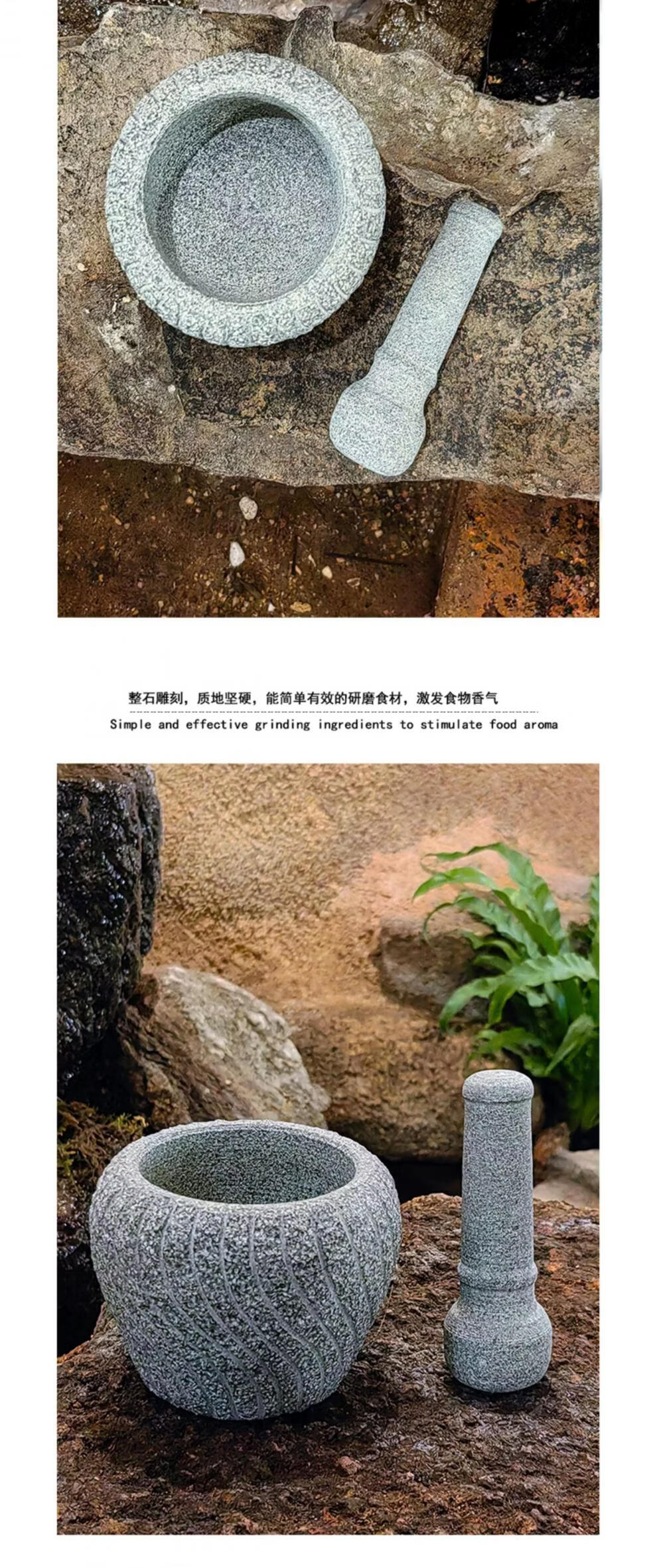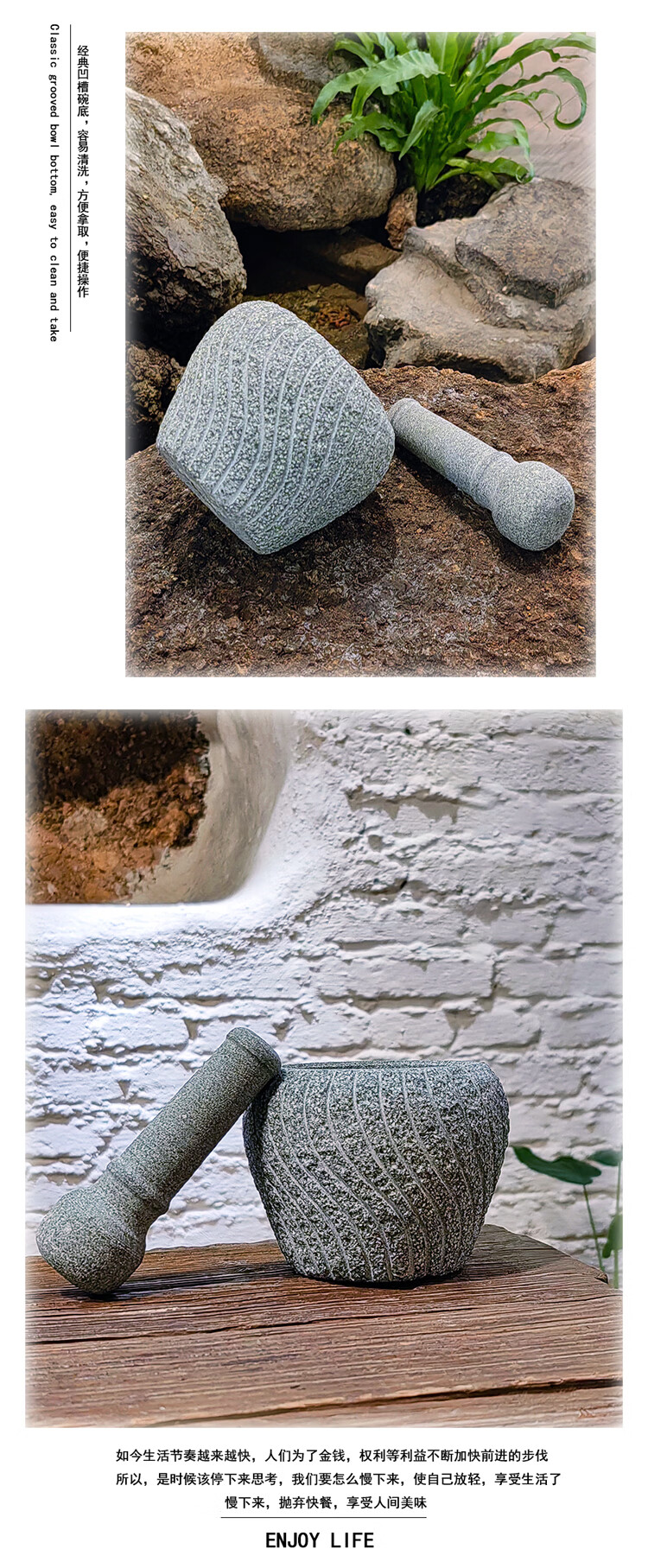 MPPMCK black gold stone mortar garlic pounder medicine jar retro bluestone stone cup household food supplement grinder bowl old-fashioned garlic press outer diameter 16cm medium size