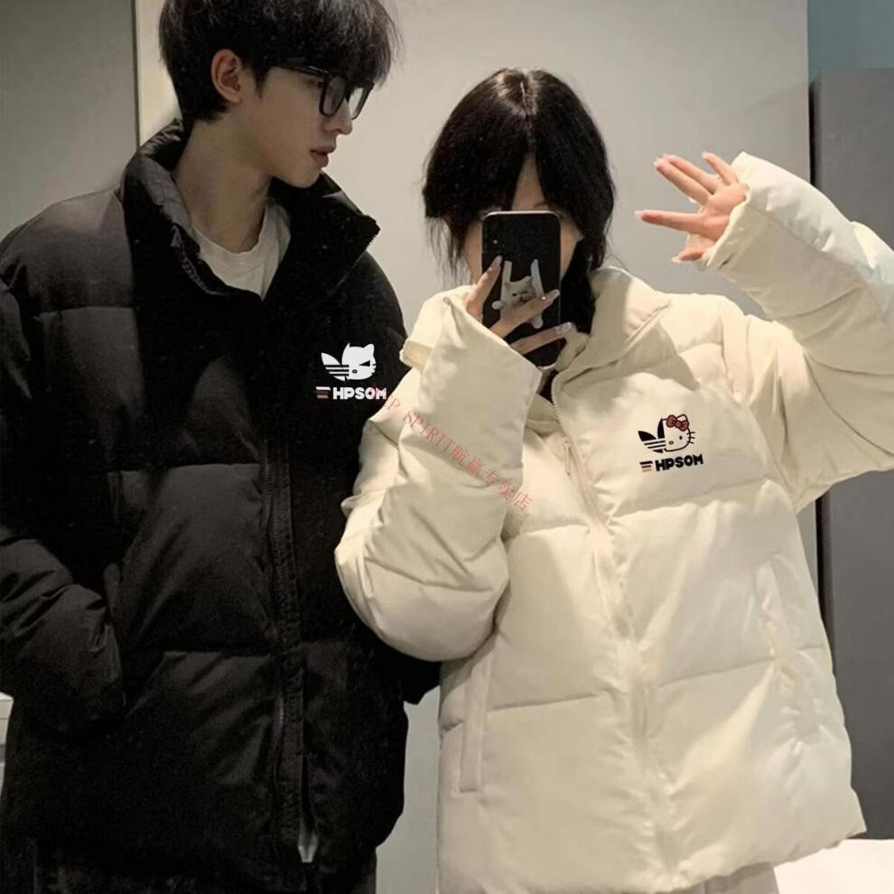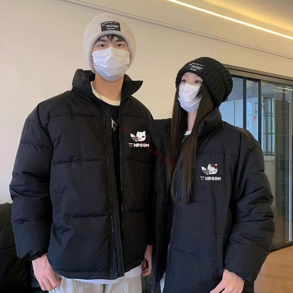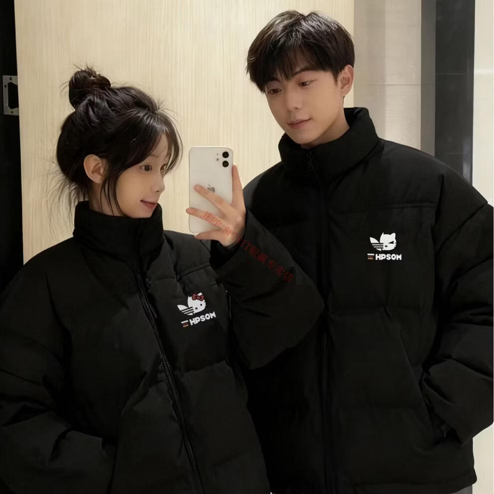 JEEP SPIRIT Autumn and Winter Couple's Cotton Clothes 2026 New Winter American Style Niche Trendy Brand Thickened Down Jacket Men's Black + Women's Black M Men's XL + Women