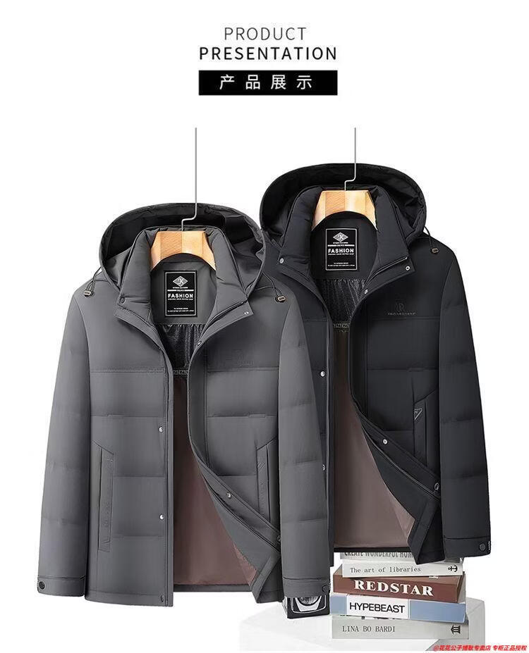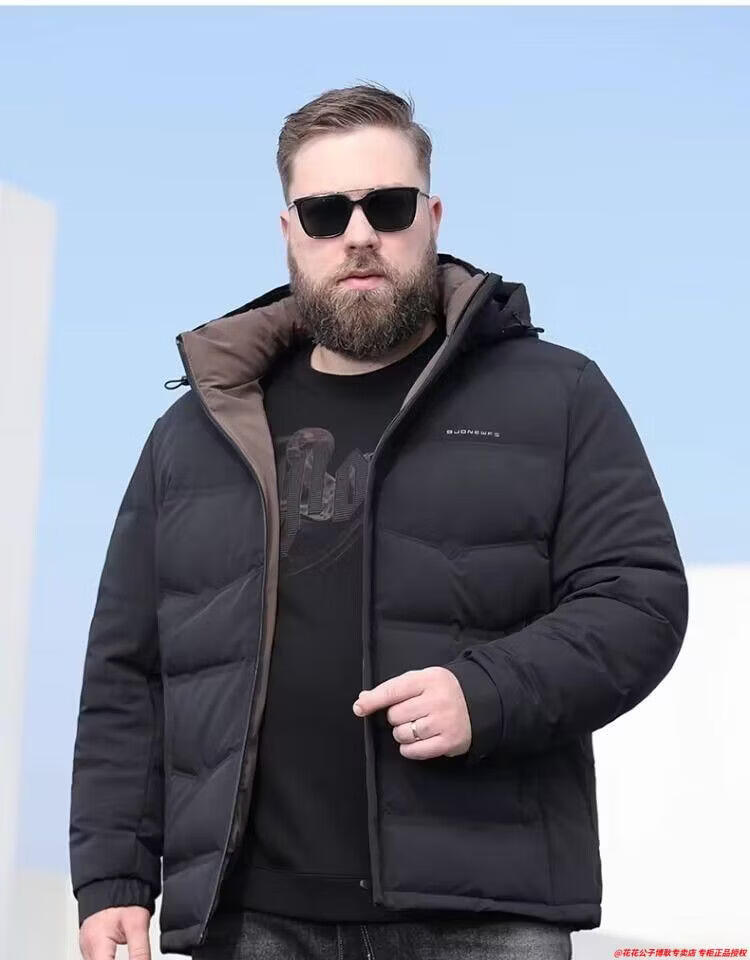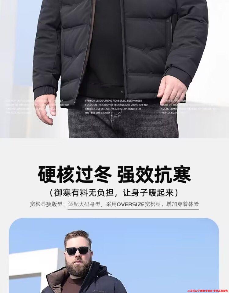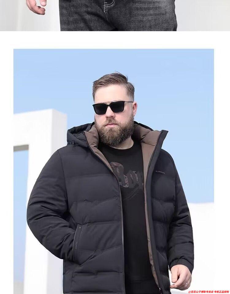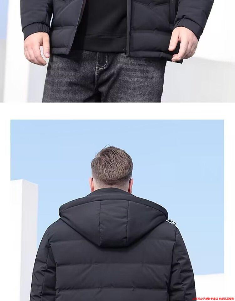 Playboy Plus Size Men's Down Jacket Fat Business Casual Hooded Winter Thickened Men's Dad Down Jacket Black Zj Hat Detachable L 7x Wear 240-260Jin Jin is equal to 0.5 kg