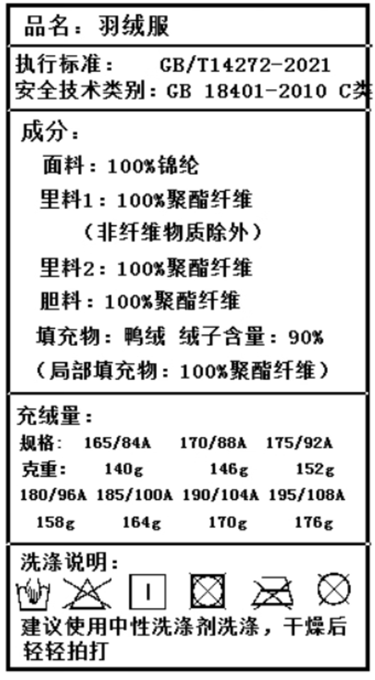 China (cm) 165 / 88-90 170 / 96-98 175 / 108-110 180 / 118-122 185 / 126-130