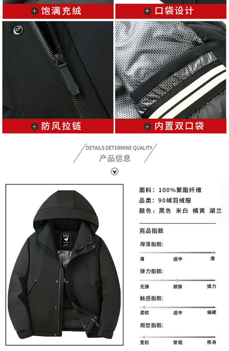 Snow Flying (SNOWFLYING) high-end brand down jacket men's short sports coat winter new 90 white duck down thickened warm charge men black