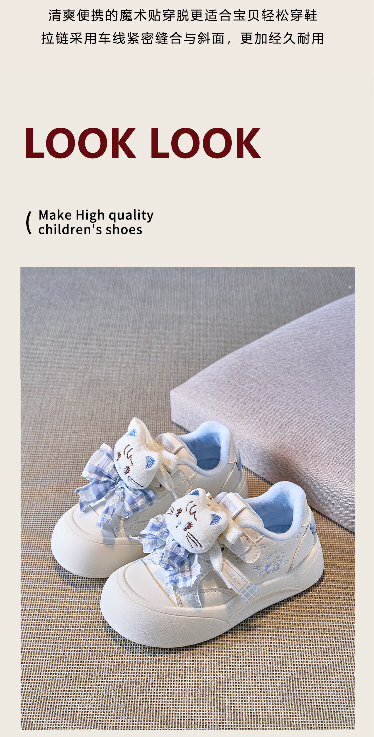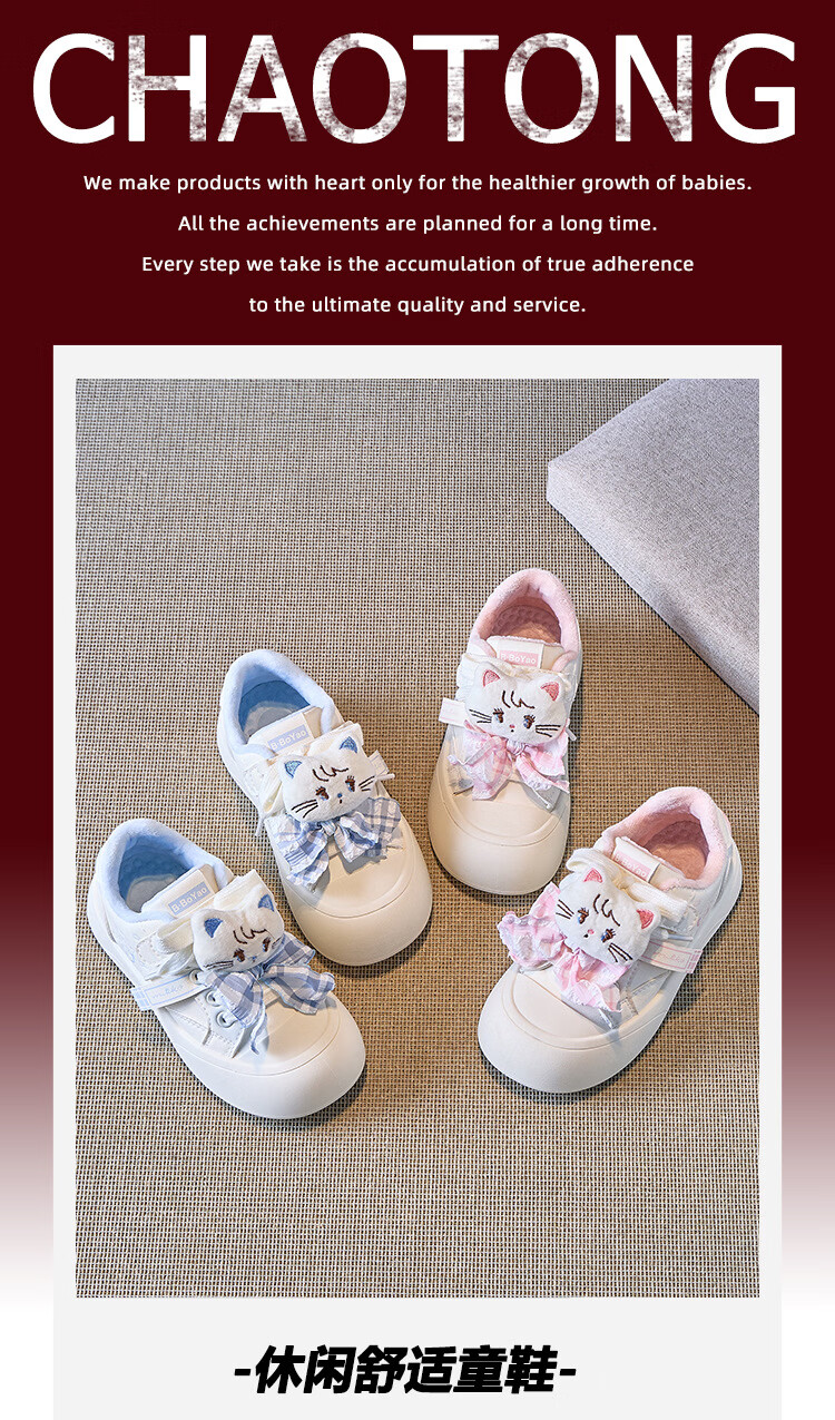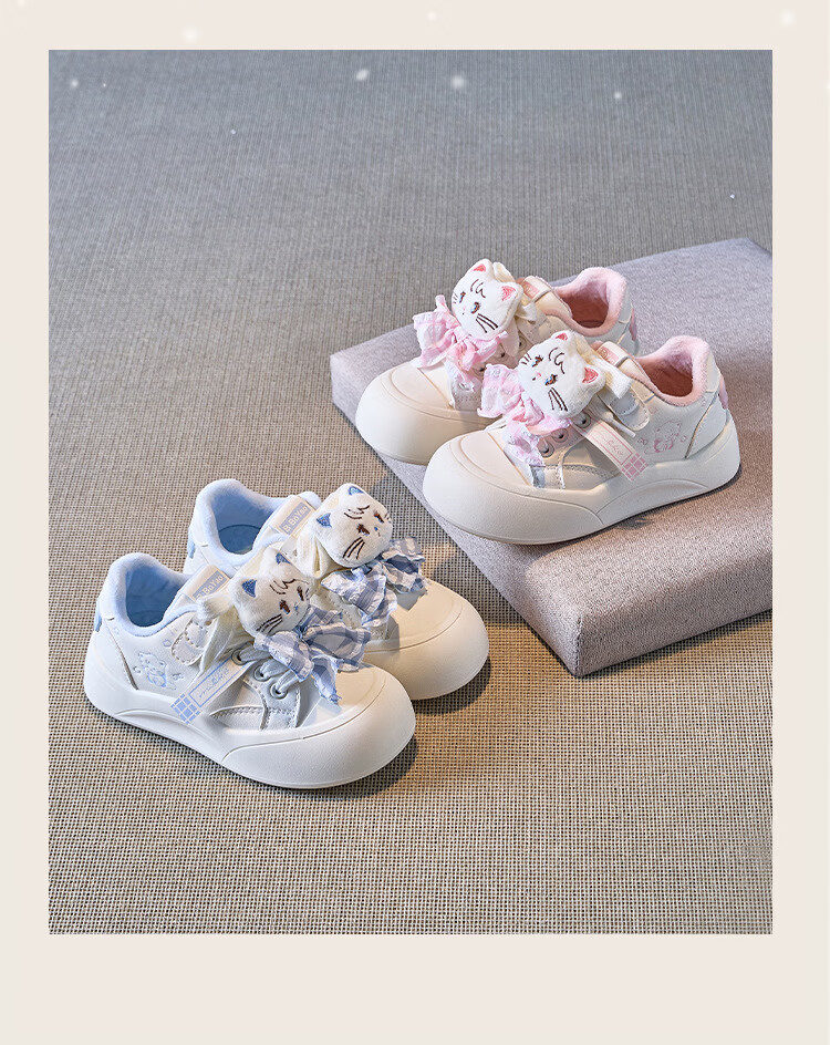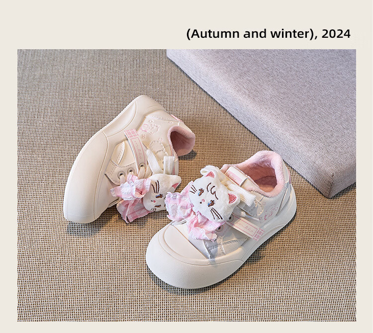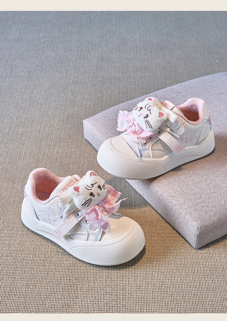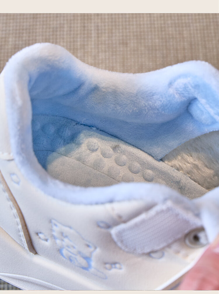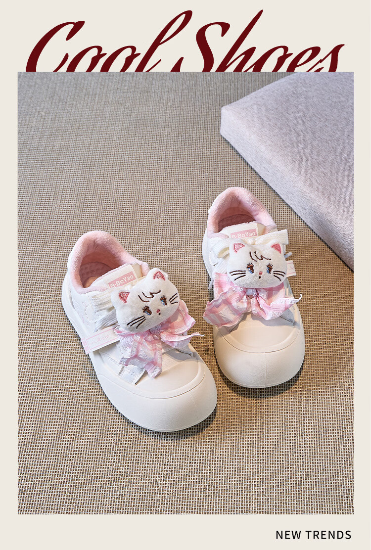 ABJA non-slip girls' velvet warm cotton shoes 2025 winter new cartoon cat bow soft bottom bread shoes pink 32
