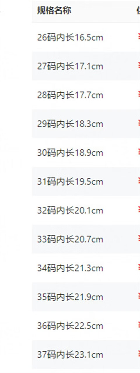 Length (cm) 22.8 23.1 23.5 24.1 24.5 25.1 25.7 26 26.7 27.3 27.9 28.6 29.2