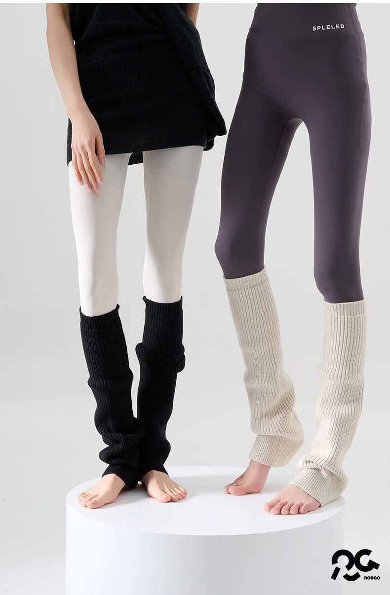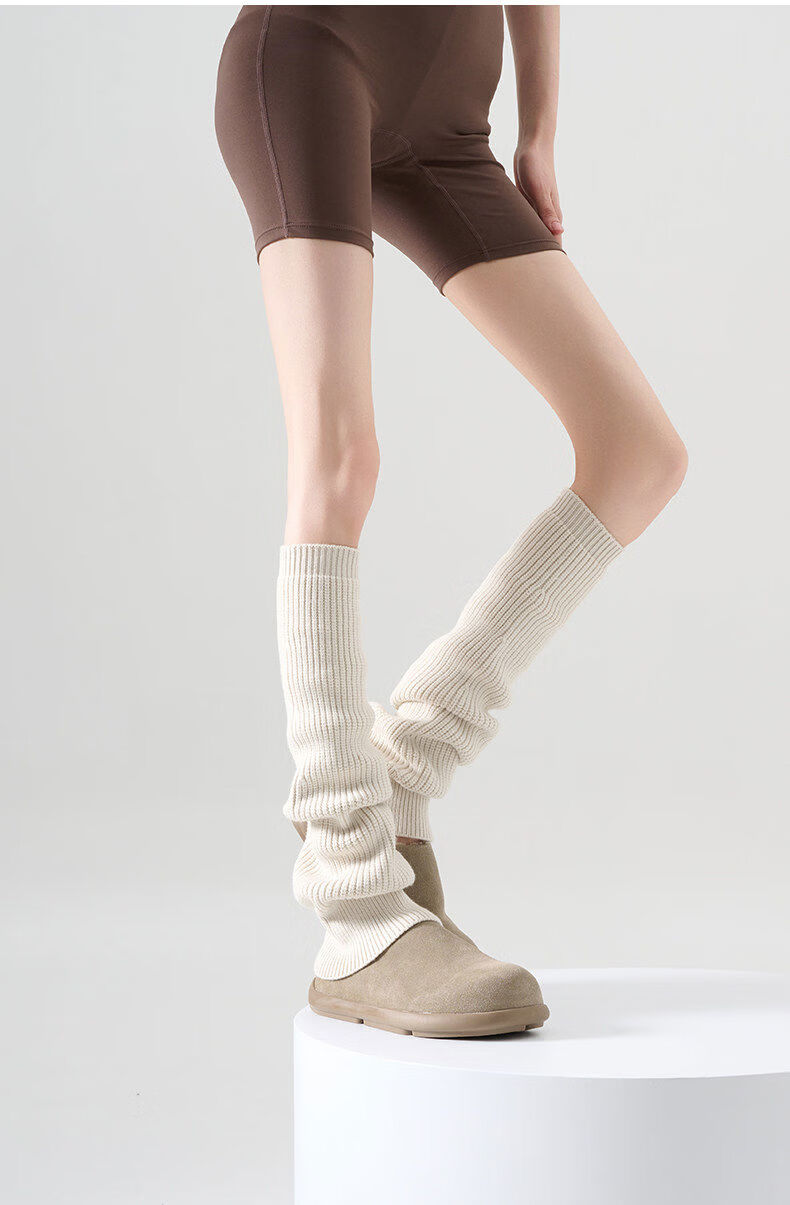 LuluRougo Knitted Socks Covers Pile Socks Women's Autumn and Winter Shark Pants Thickened Flared Leg Covers Bone White