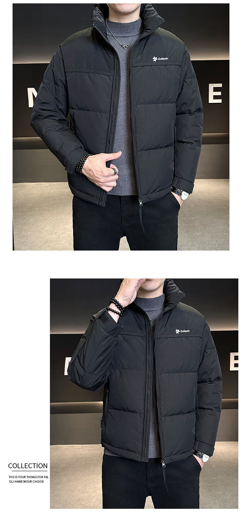 Snow Flying (SNOWFLYING) high-end men's stand-collar down jacket winter new style high-end versatile warm down top casual trendy jacket black 2XL 140-160Jin Jin equals 0.5 kg