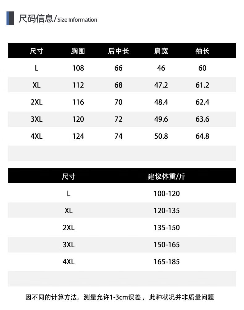 China (cm) 165 / 88-90 170 / 96-98 175 / 108-110 180 / 118-122 185 / 126-130