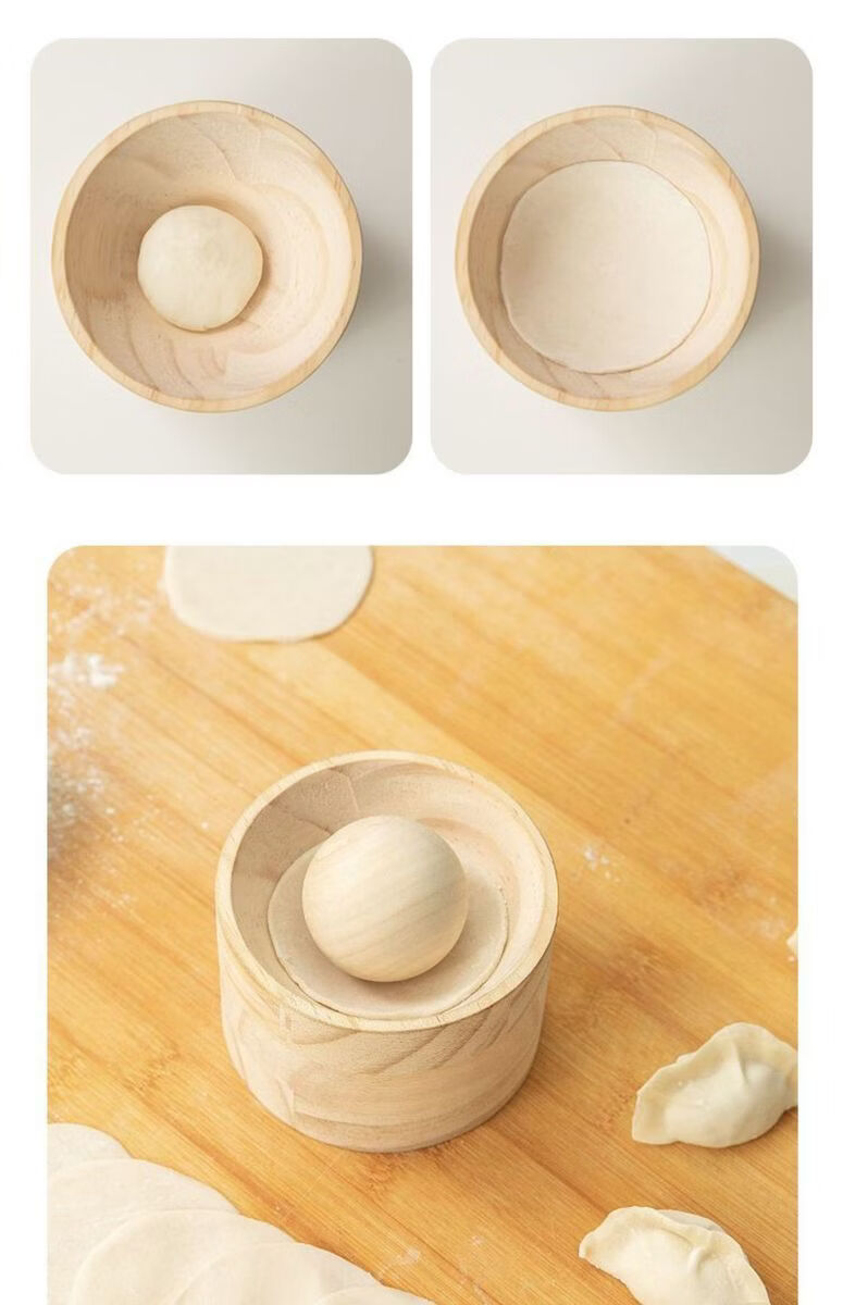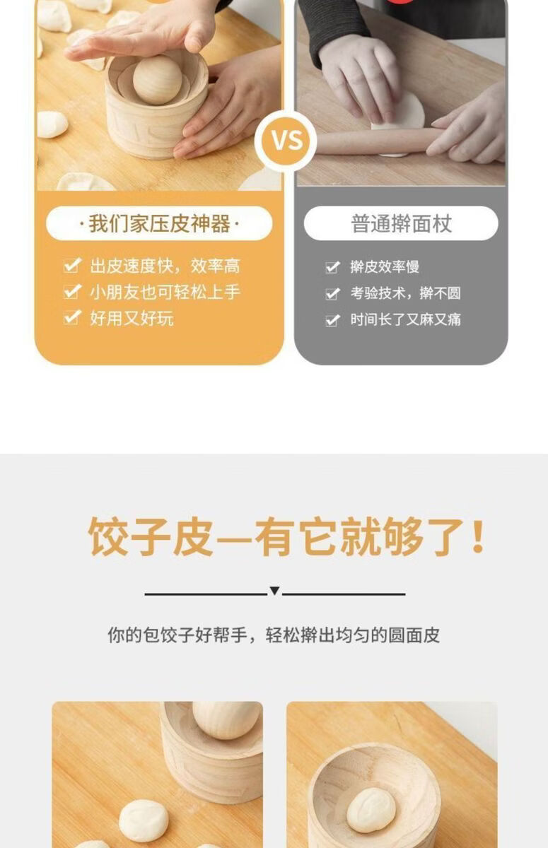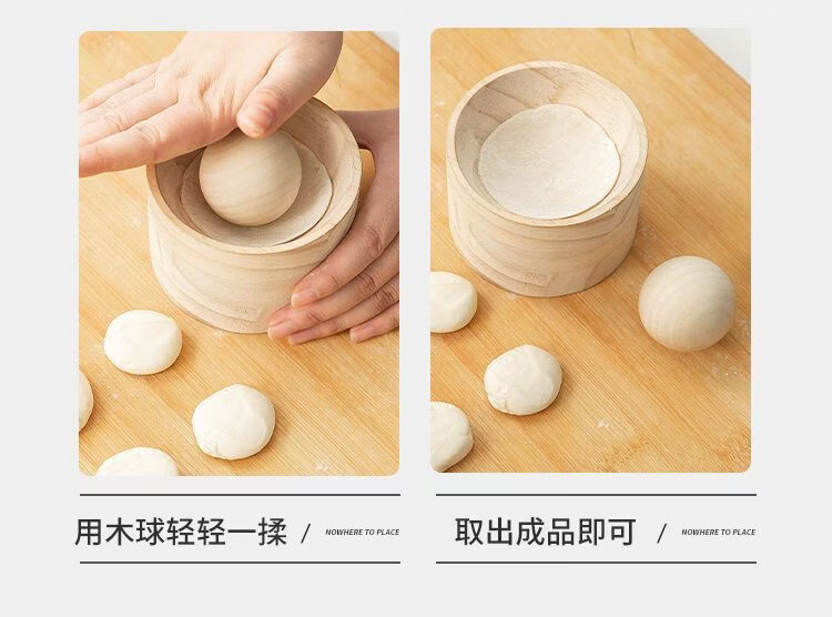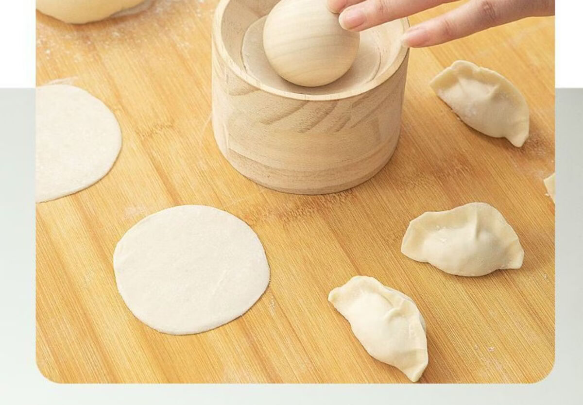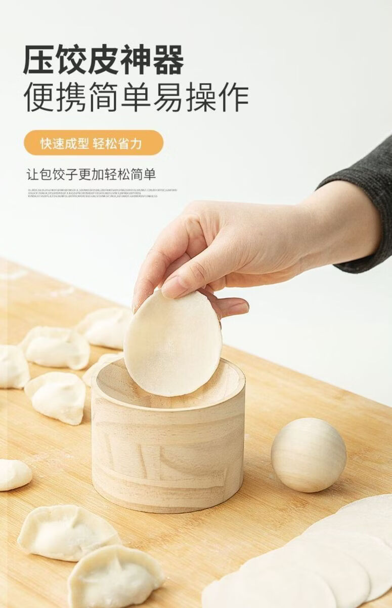 Yong Huan's new wooden round dumpling maker, household dumpling wrapper artifact, water-wrapped non-stick dumpling wrapper kitchen tool, dumpling wrapper press artifact, 1 pack, ball base, selected solid wood